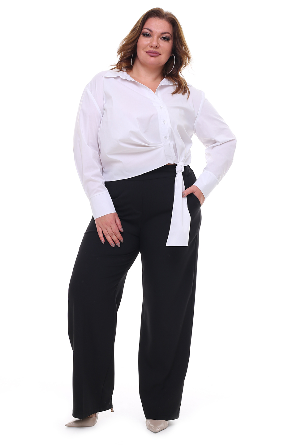 Брюки классического кроя отлично сидят за счет комфортной резинки на поясе по спинке. по бокам практичные карманы. модель привлекает внимание широким клешем книзу. брюки прекрасно подойдут для комбинирования с водолазками, свитерами, блузками, рубашками и жакетами. эти модные брюки станут идеальным вариантом для создания стильного образа.