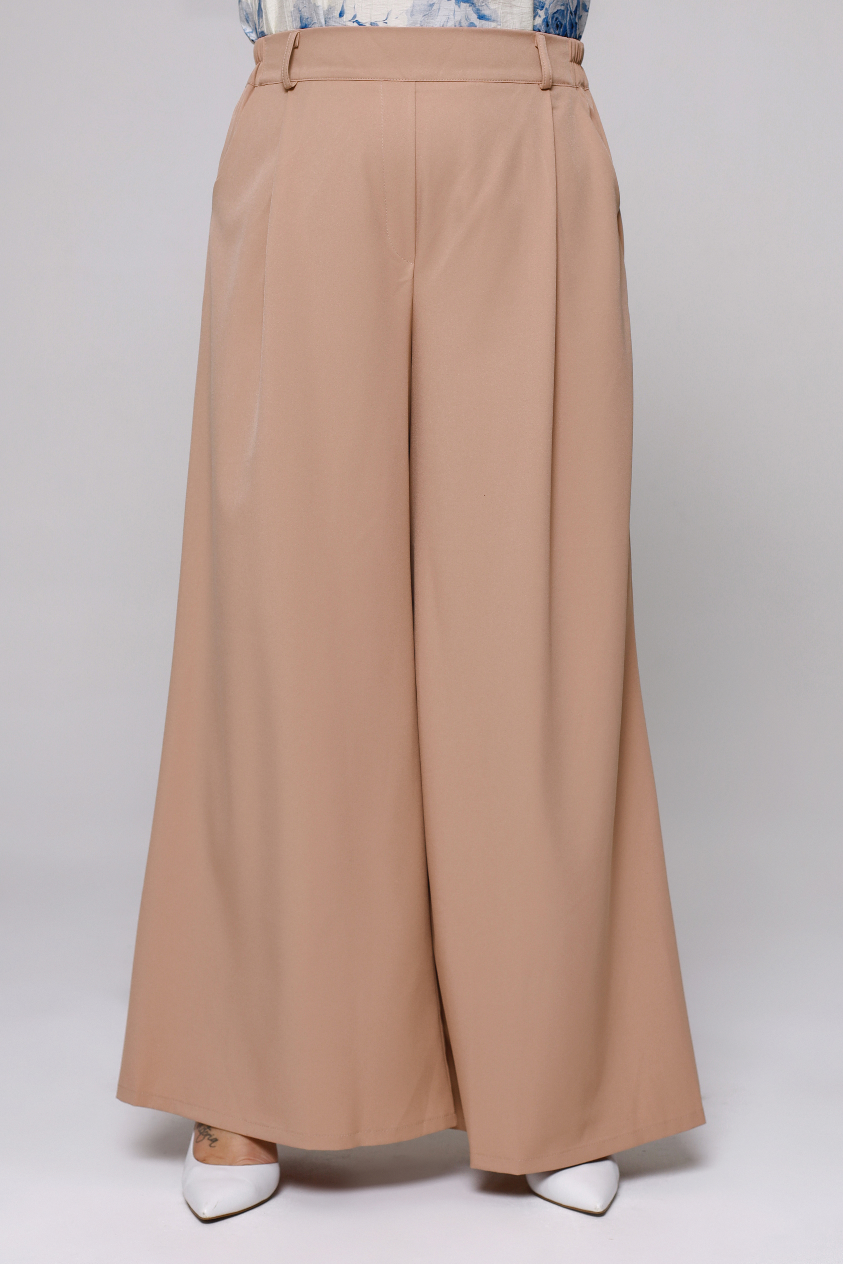 Брюки палаццо широкие с поясом капучино