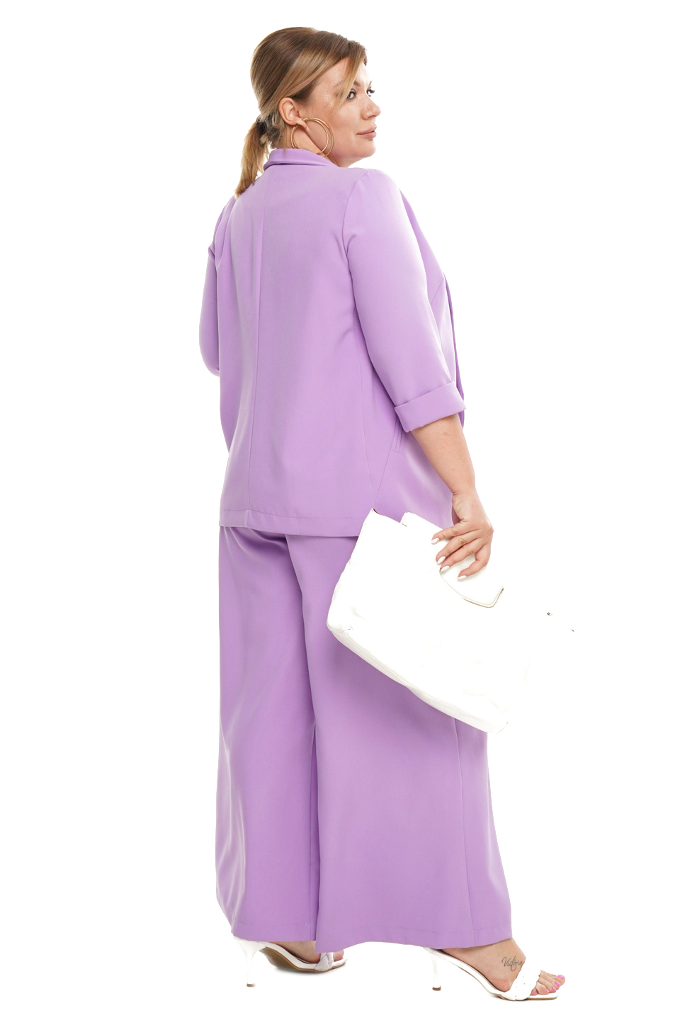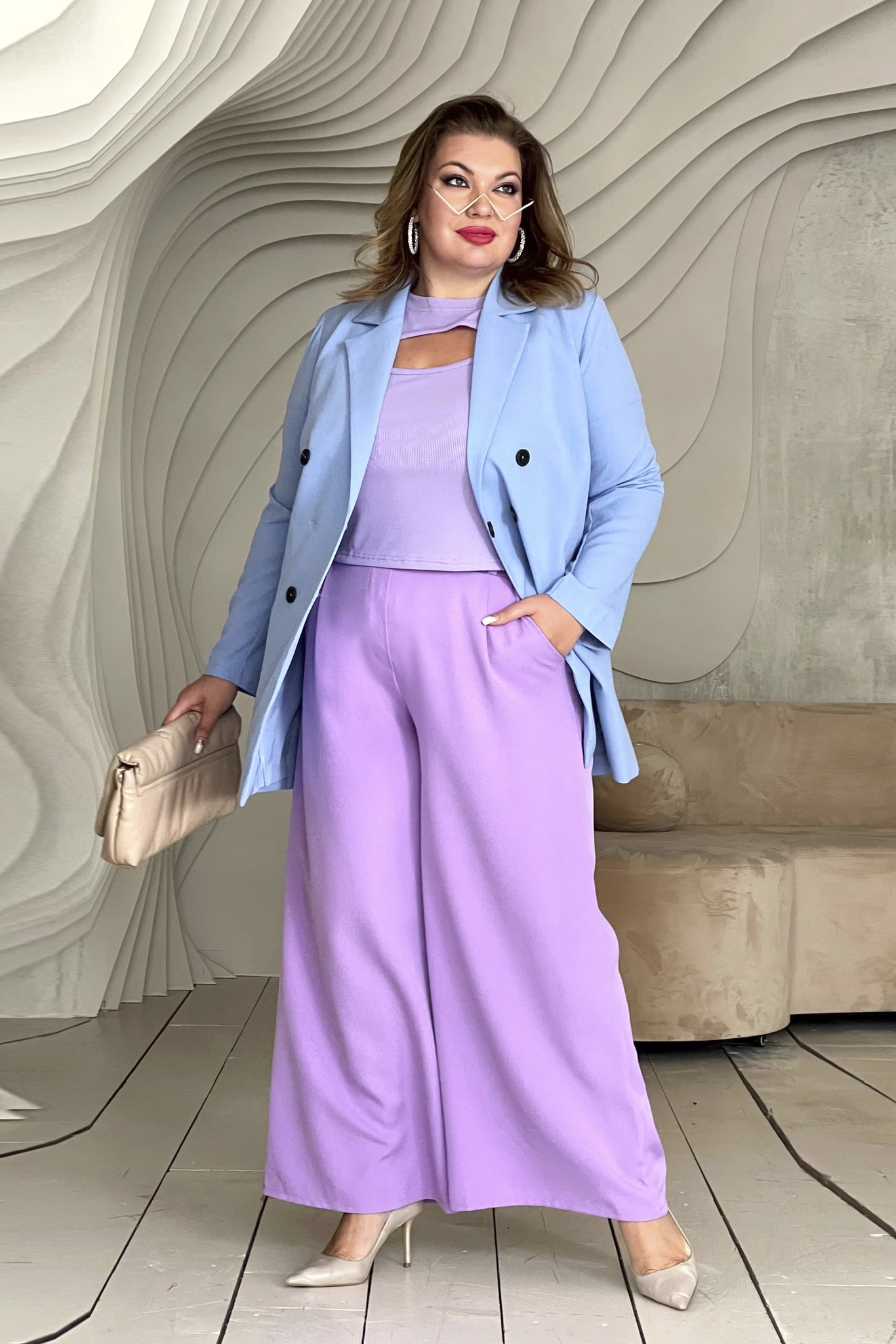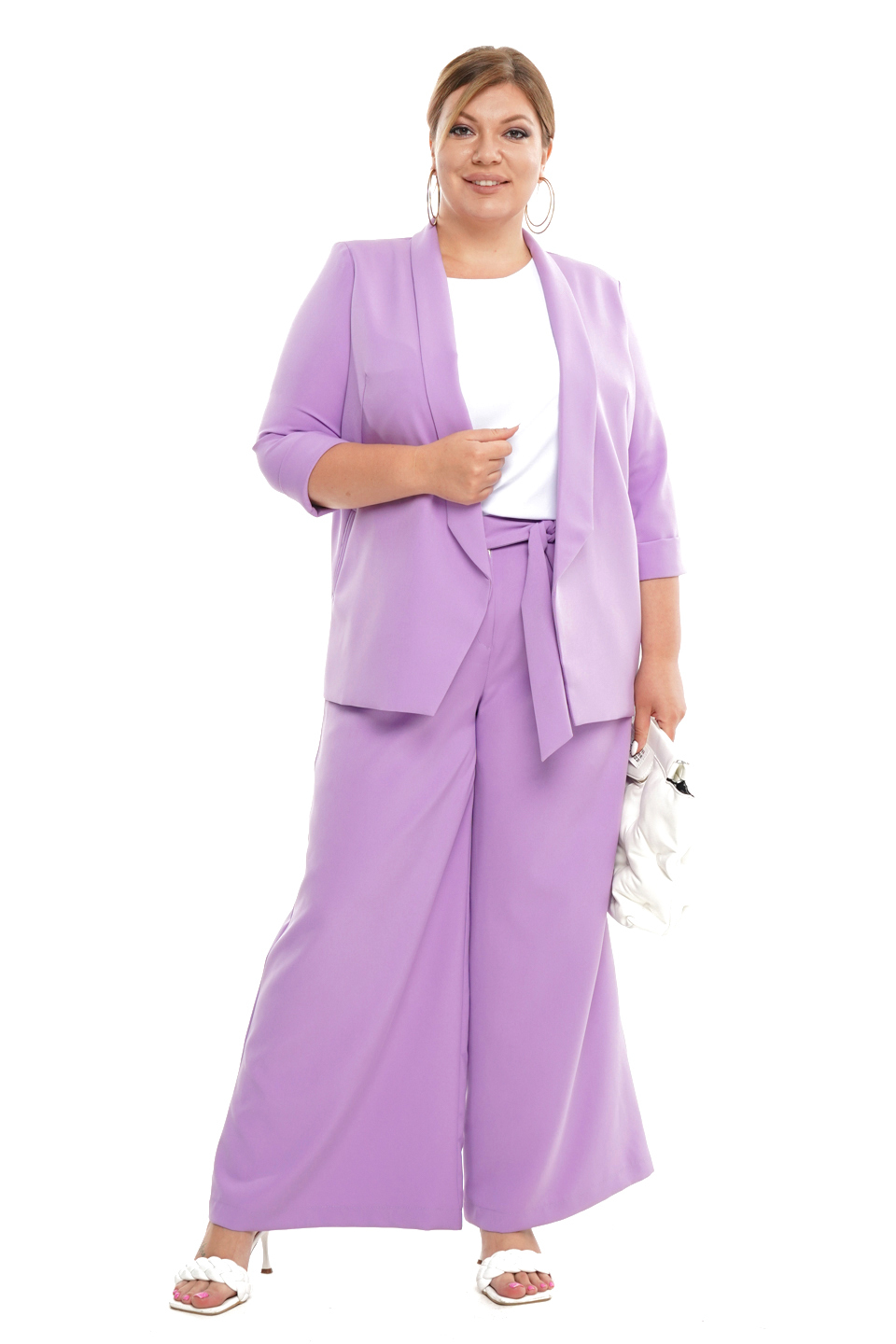 Брюки палаццо широкие с поясом лаванда.
