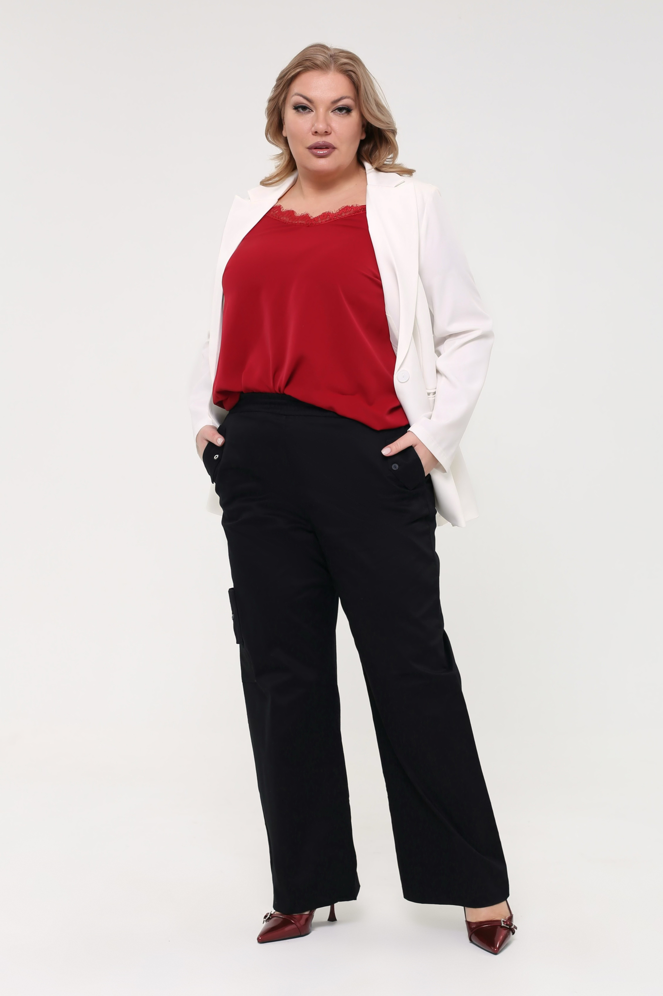 Комфортные брюки-карго свободного силуэта выполнены из мягкого материала. брюки отлично сидят за счет эластичной резинки на поясе. модель с комфортной высотой линии талии не сковывает движений. расклешенные книзу брючины визуально стройнят и зрительно вытягивают силуэт. боковые карманы, оформленные клапанами, и боковой карман на брючине сбоку добавляют практичности. брюки прекрасно подойдут для комбинирования с водолазками, свитерами, блузками и рубашками. эти модные брюки станут идеальным вариантом для создания стильного образа.