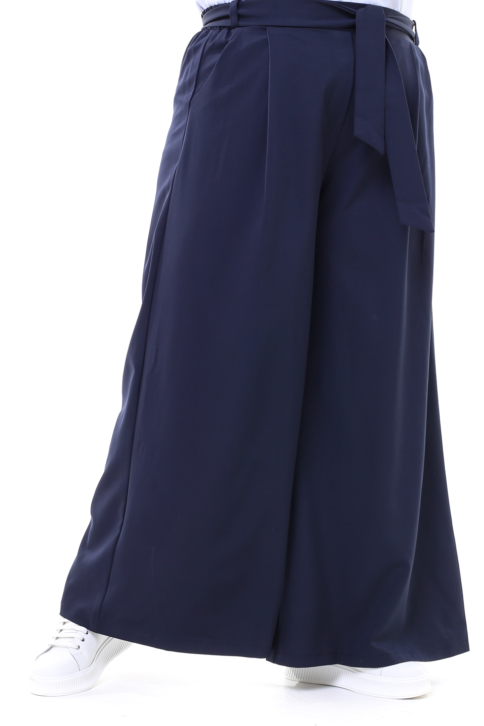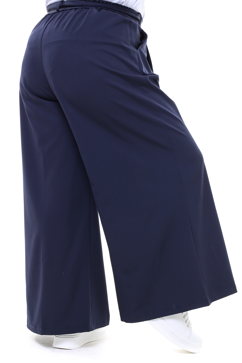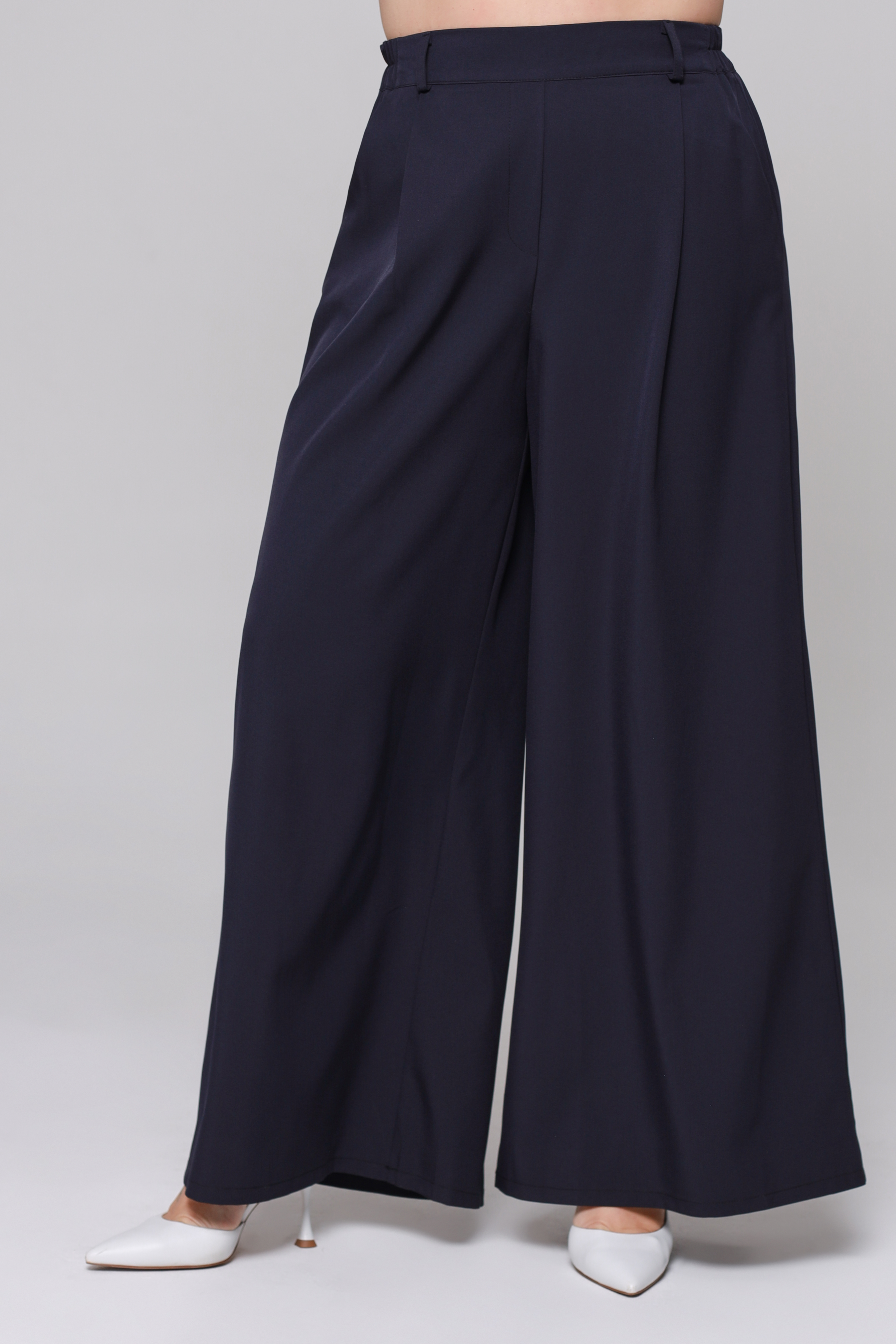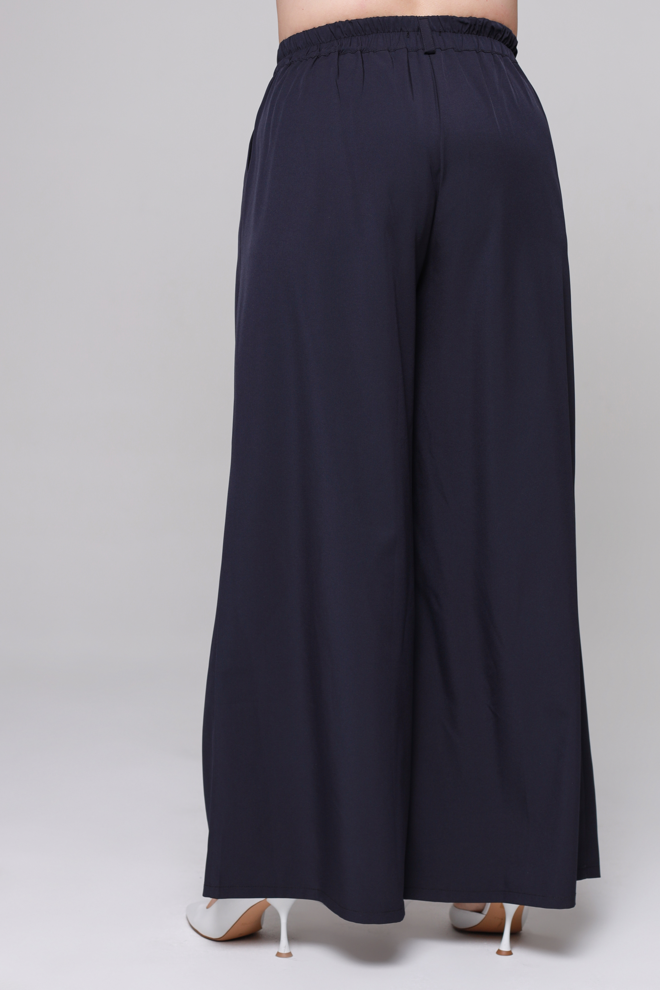 Брюки палаццо широкие с поясом темно-синие
