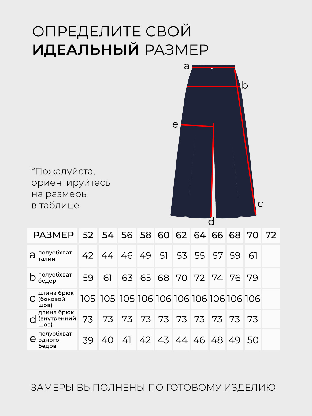 Просим обратить внимание, что в таблице приведены замеры фигуры, а не изделия.