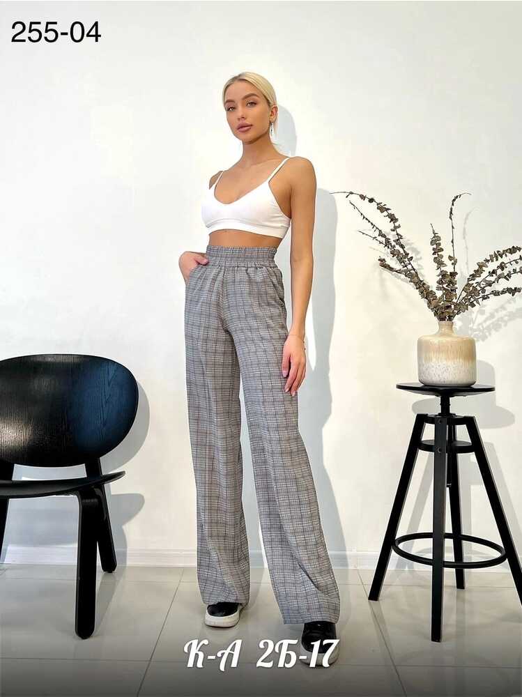 Женские летние брюки палаццо в клетку ткань: ниагра