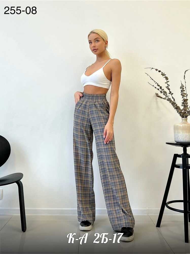 Женские летние брюки палаццо в клетку ткань: ниагра