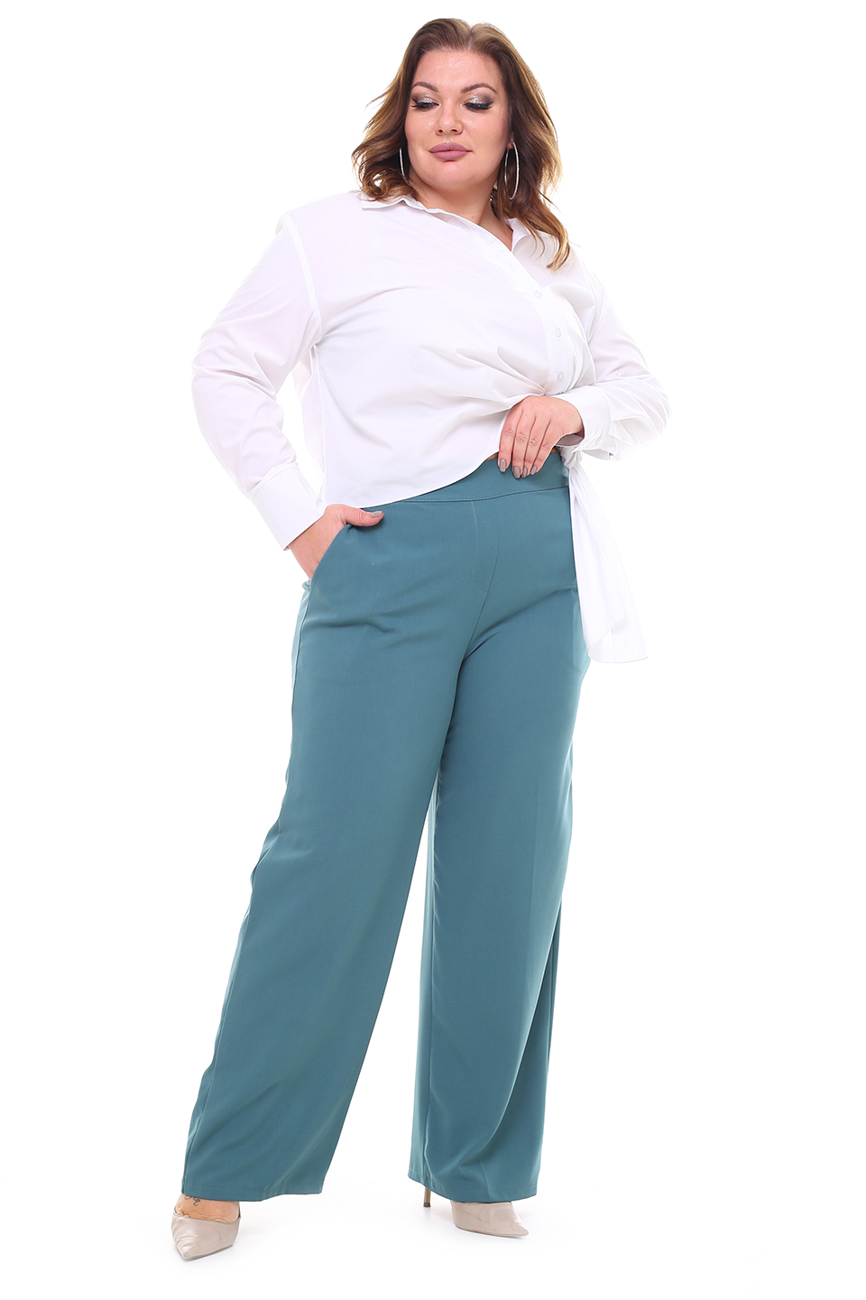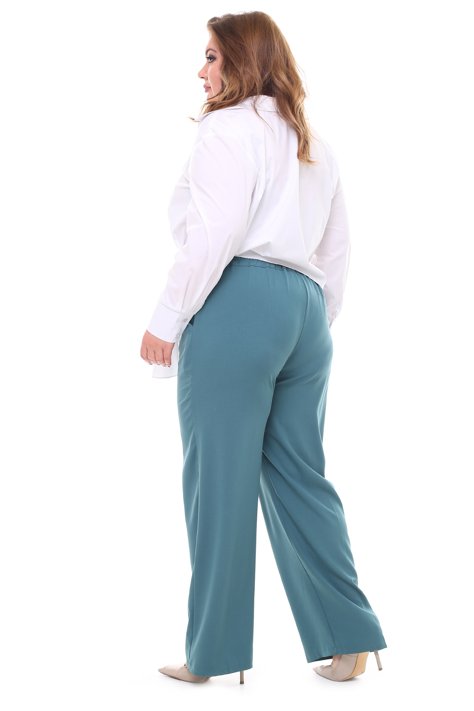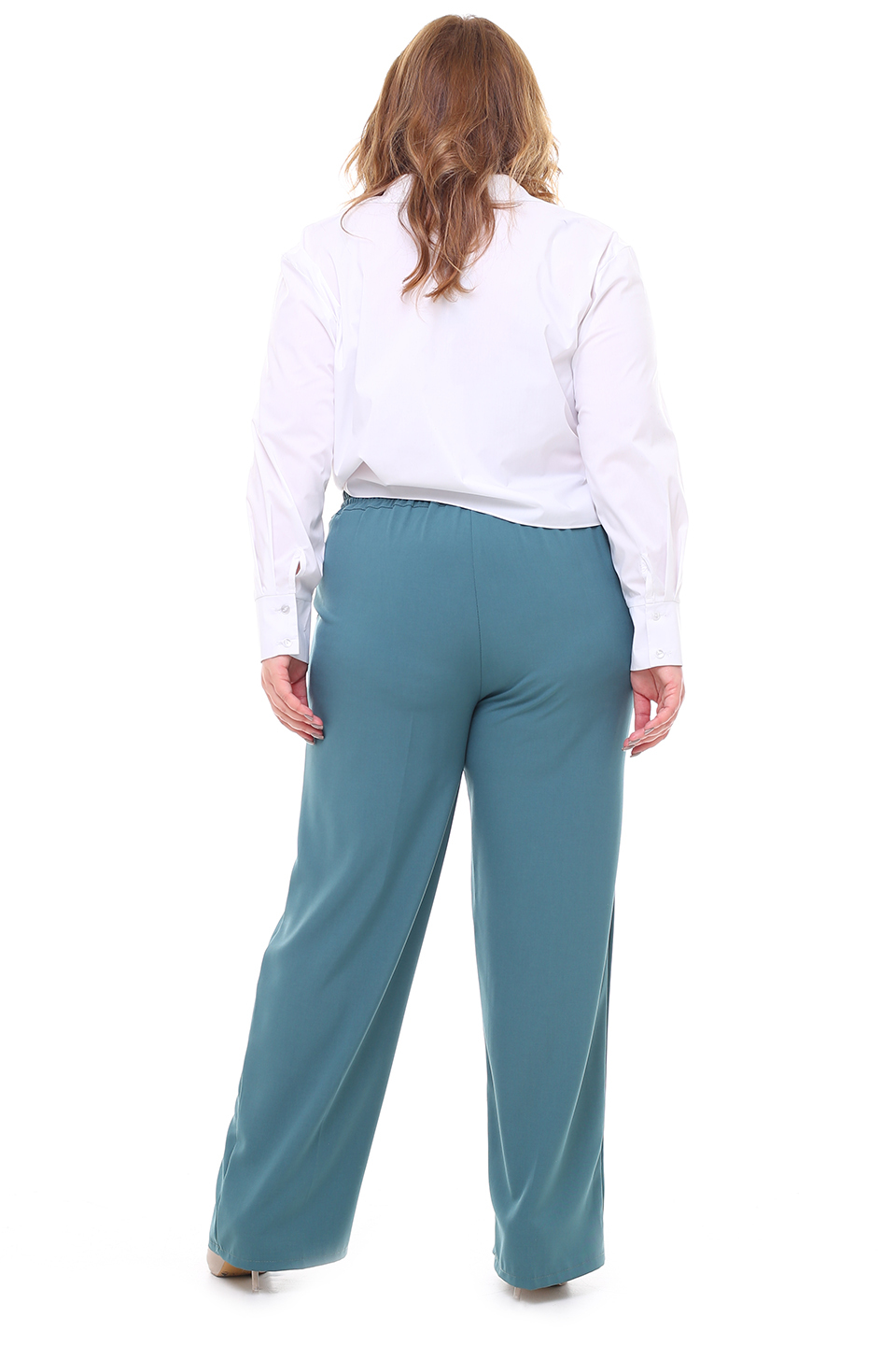 Брюки классического кроя отлично сидят за счет комфортной резинки на поясе по спинке. по бокам практичные карманы. модель привлекает внимание широким клешем книзу. брюки прекрасно подойдут для комбинирования с водолазками, свитерами, блузками, рубашками и жакетами. эти модные брюки станут идеальным вариантом для создания стильного образа. длина изделия 50 размера по спинке - 94 см. в каждом следующем размере длина увеличивается.