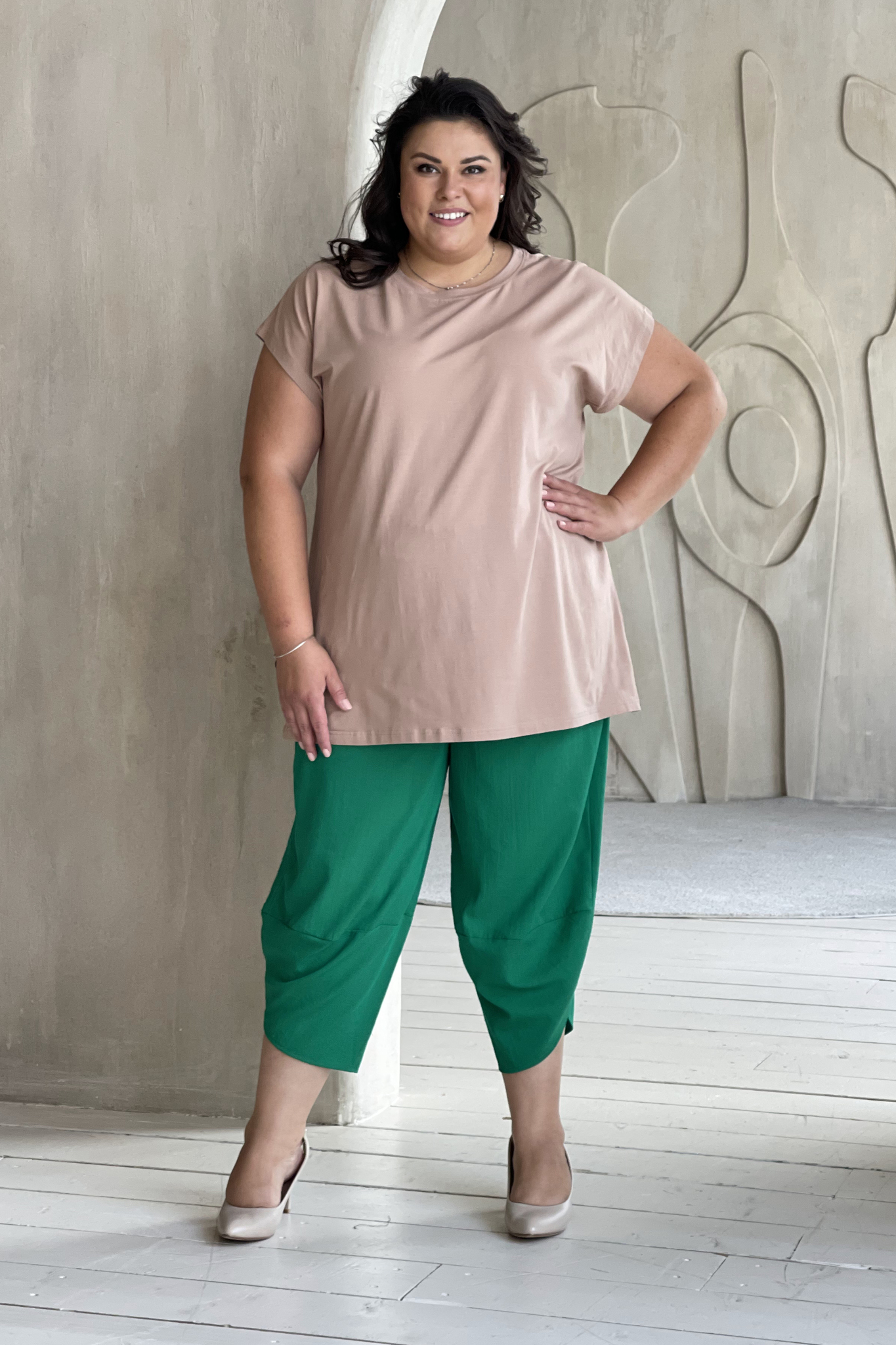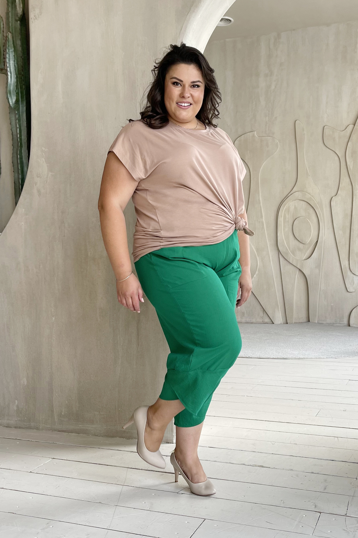 Элегантные брюки-султанка из мягкой струящейся ткани с крэш эффектом. модель отлично сидит за счет высокой посадки и комфортной резинки на поясе. накладные карманы по бокам добавляют практичности и функциональности. модель с комфортной посадкой не сковывает движений. зауженные книзу брючины, оформленные по бокам внахлест, визуально стройнят и зрительно вытягивают ноги. комфортная модель - отличная база для создания разнообразных образов. их могут смело носить как юные, спортивные барышни, так и изысканные дамы в возрасте. правильно подобрав аксессуары, можно создавать смелые, утонченно женственные, строгие, деловые образы.