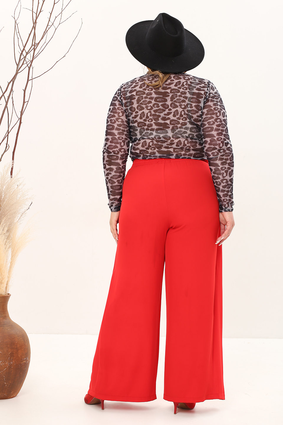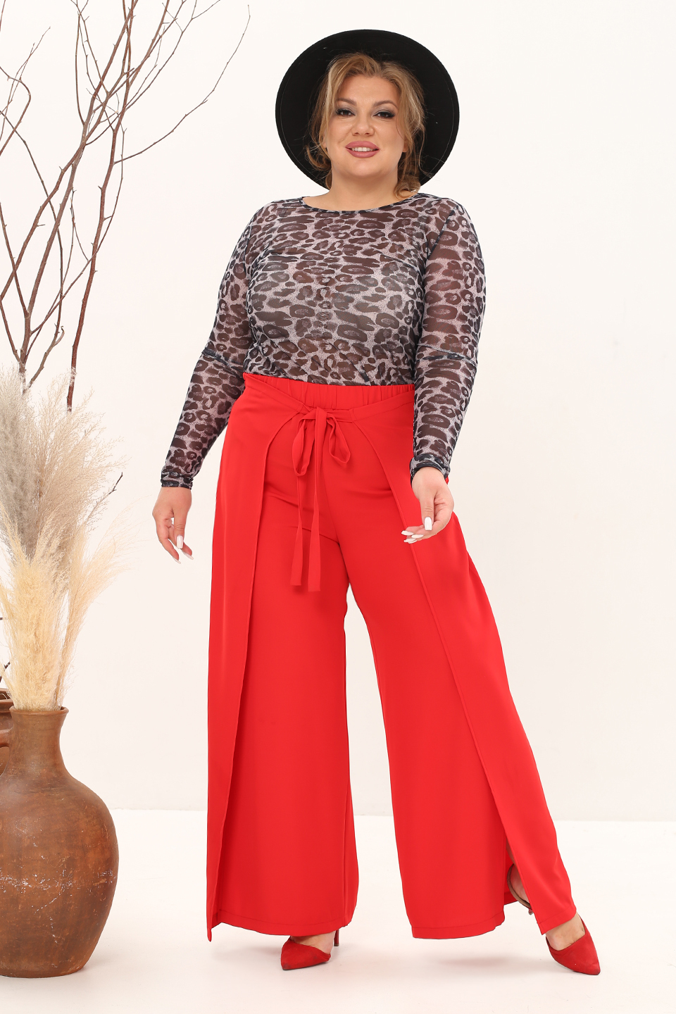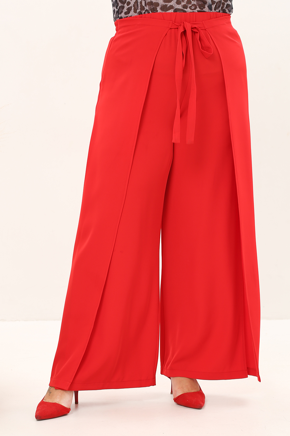 Брюки на запах с завязкой спереди красные