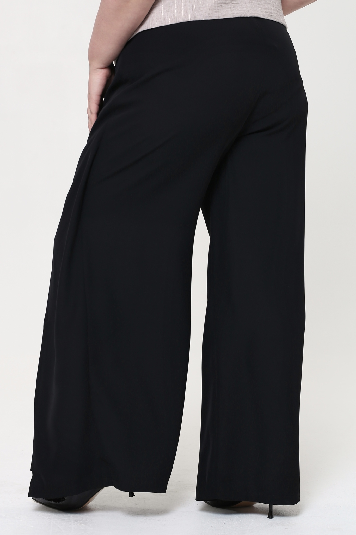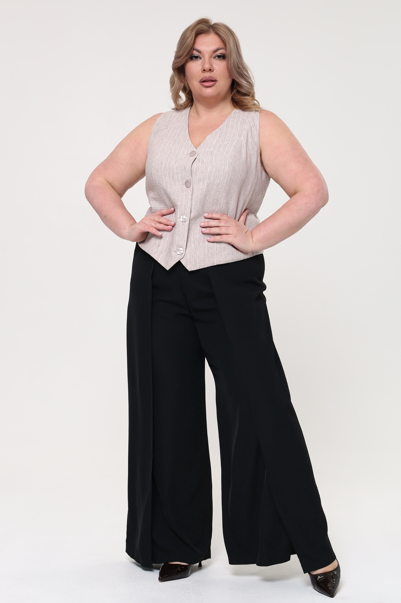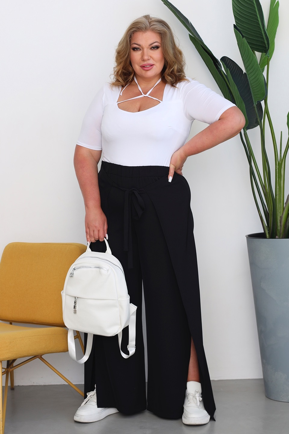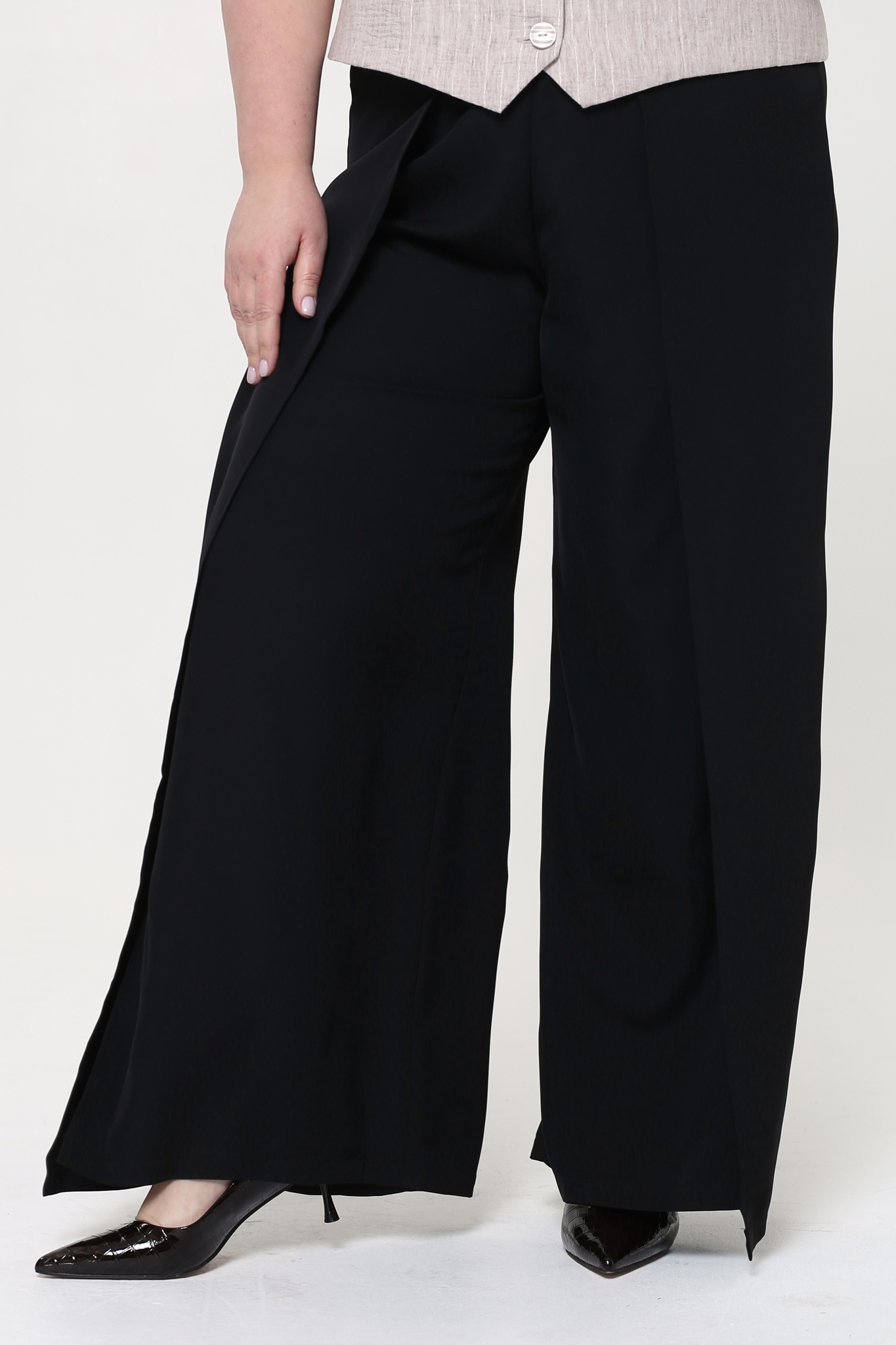 Элегантные брюки из мягкого струящегося материала. высокая посадка и комфортная резинка на поясе обеспечивают оптимальную посадку по фигуре. оригинальный асимметричный запах по бокам собирается спереди с помощью завязки. небольшие разрезы спереди добавляют женственности и кокетства. брюки подчеркивают женственные формы и скрывают недостатки фигуры. модель прекрасно подойдёт для комбинирования с блузками, рубашками, топами и жакетами. эти модные брюки станут идеальным вариантом для создания стильного образа.