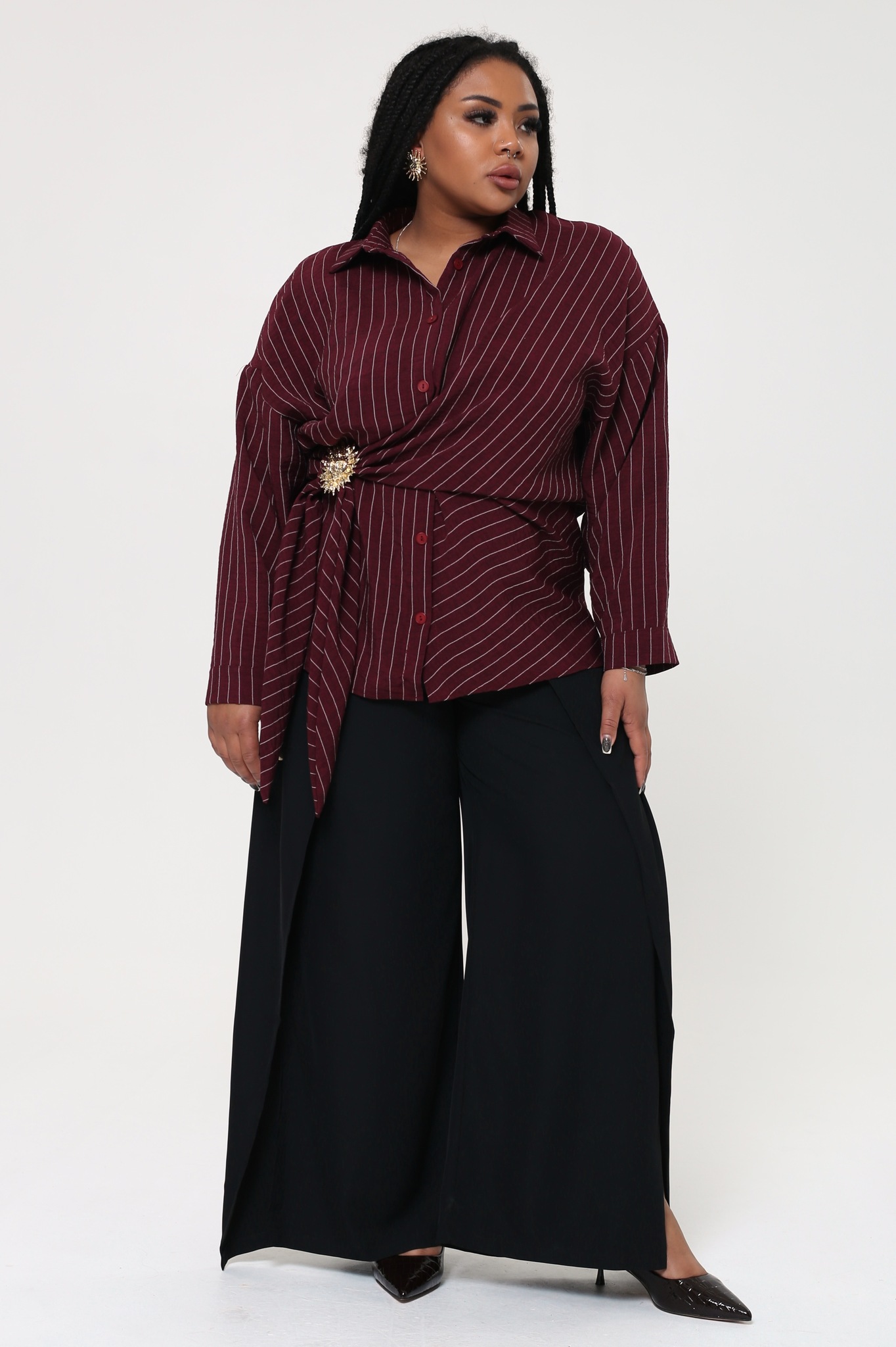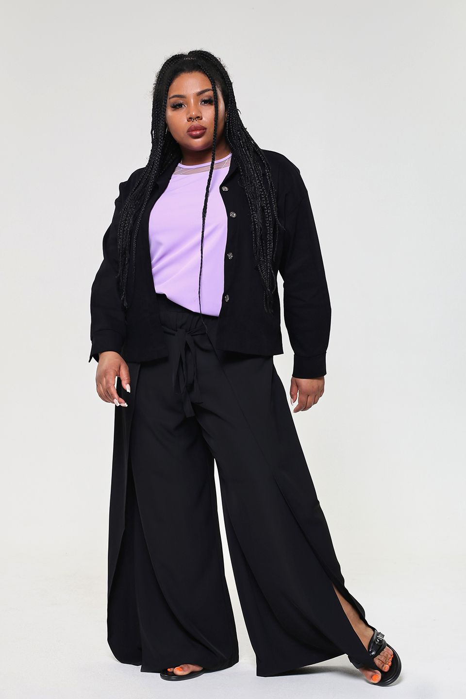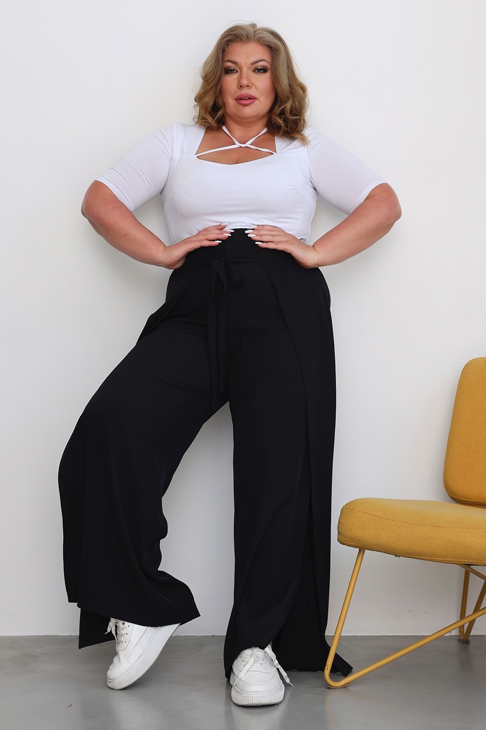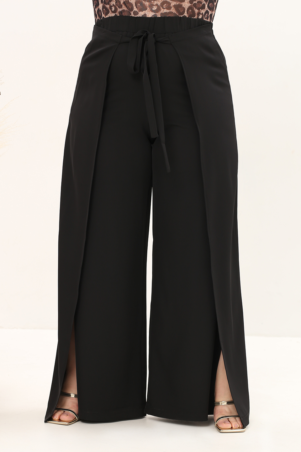 Элегантные брюки из мягкого струящегося материала. высокая посадка и комфортная резинка на поясе обеспечивают оптимальную посадку по фигуре. оригинальный асимметричный запах по бокам собирается спереди с помощью завязки. небольшие разрезы спереди добавляют женственности и кокетства. брюки подчеркивают женственные формы и скрывают недостатки фигуры. модель прекрасно подойдёт для комбинирования с блузками, рубашками, топами и жакетами. эти модные брюки станут идеальным вариантом для создания стильного образа.