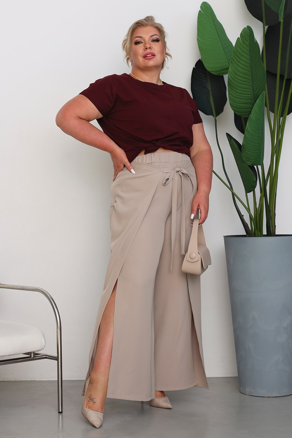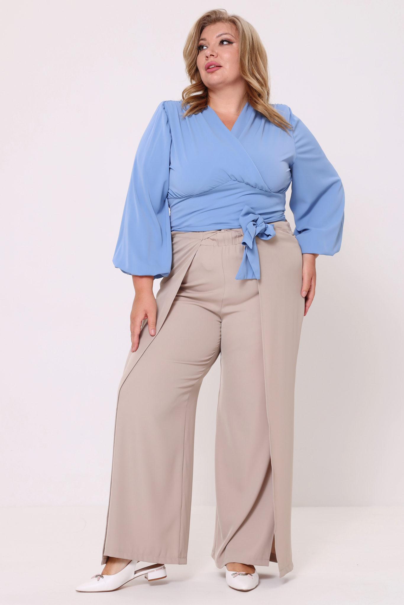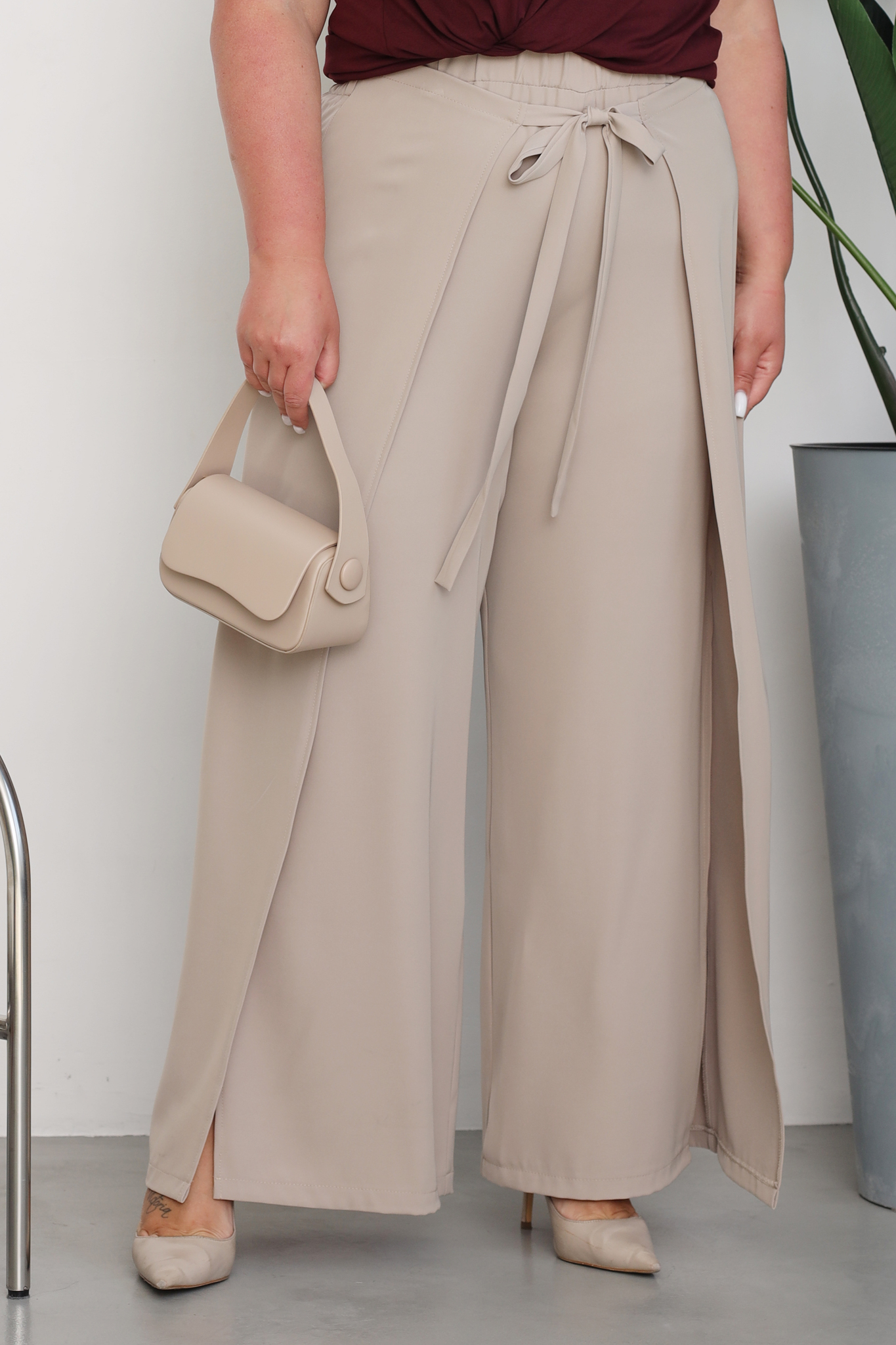 Брюки на запах с завязкой спереди капучино