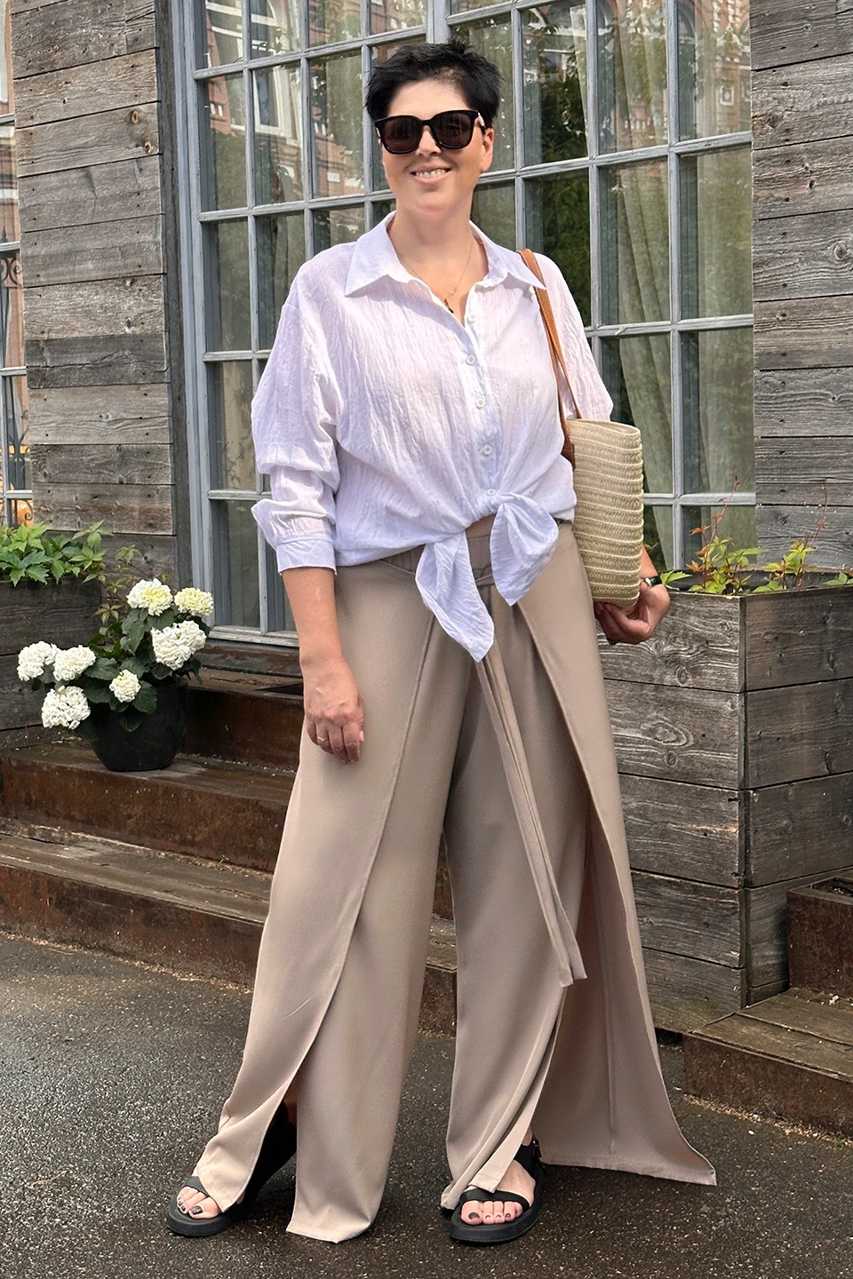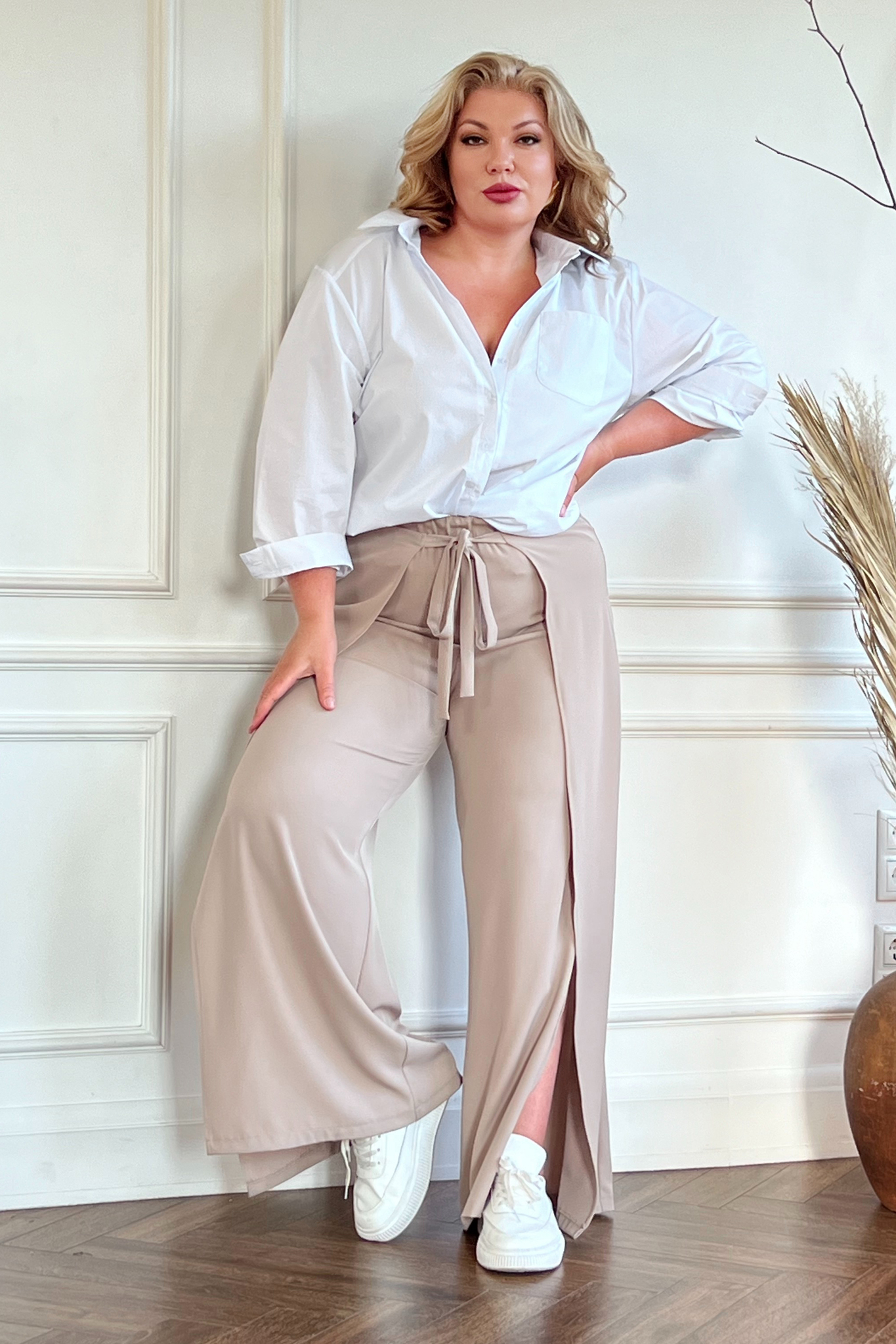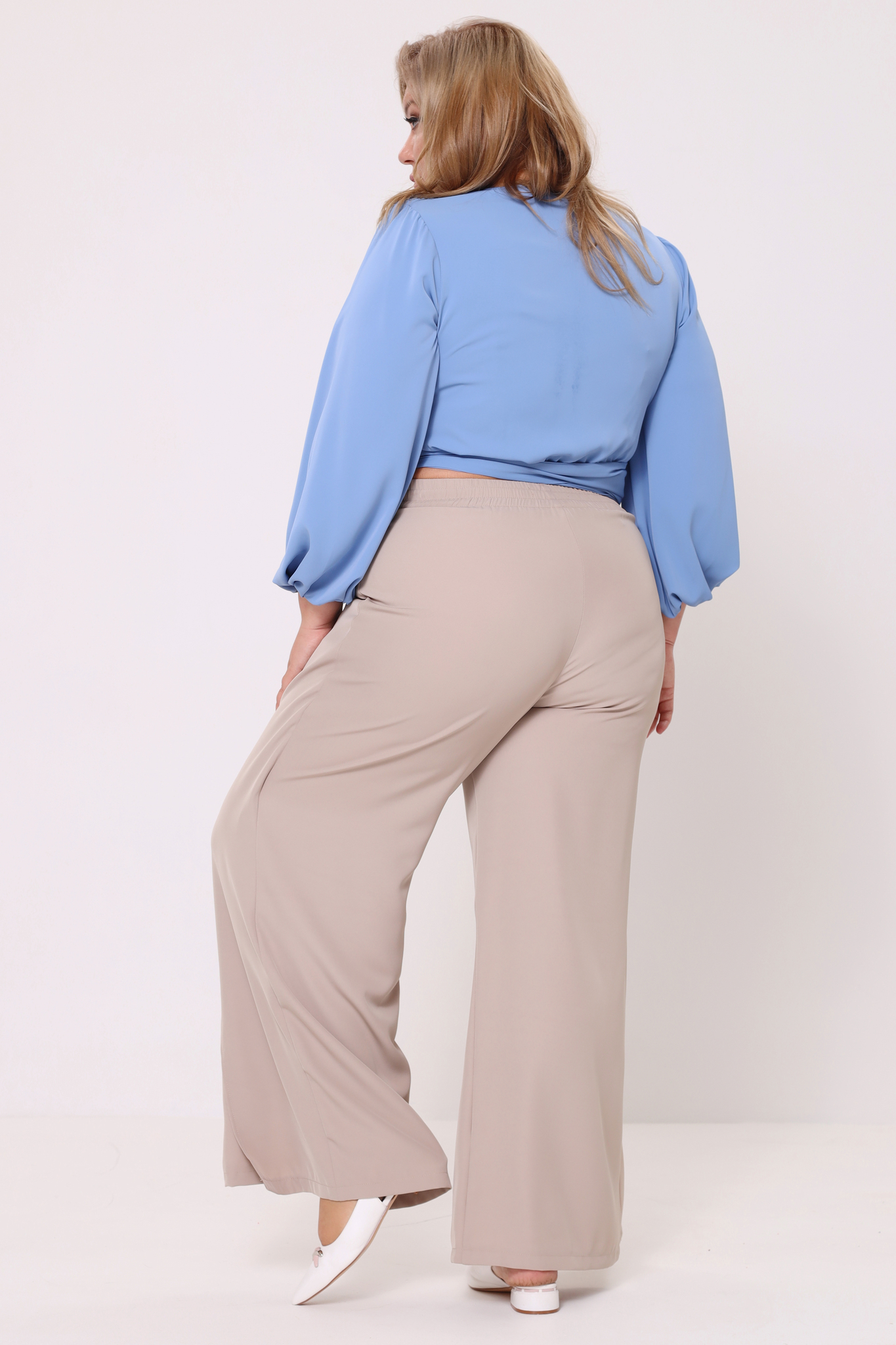 Брюки на запах с завязкой спереди капучино
