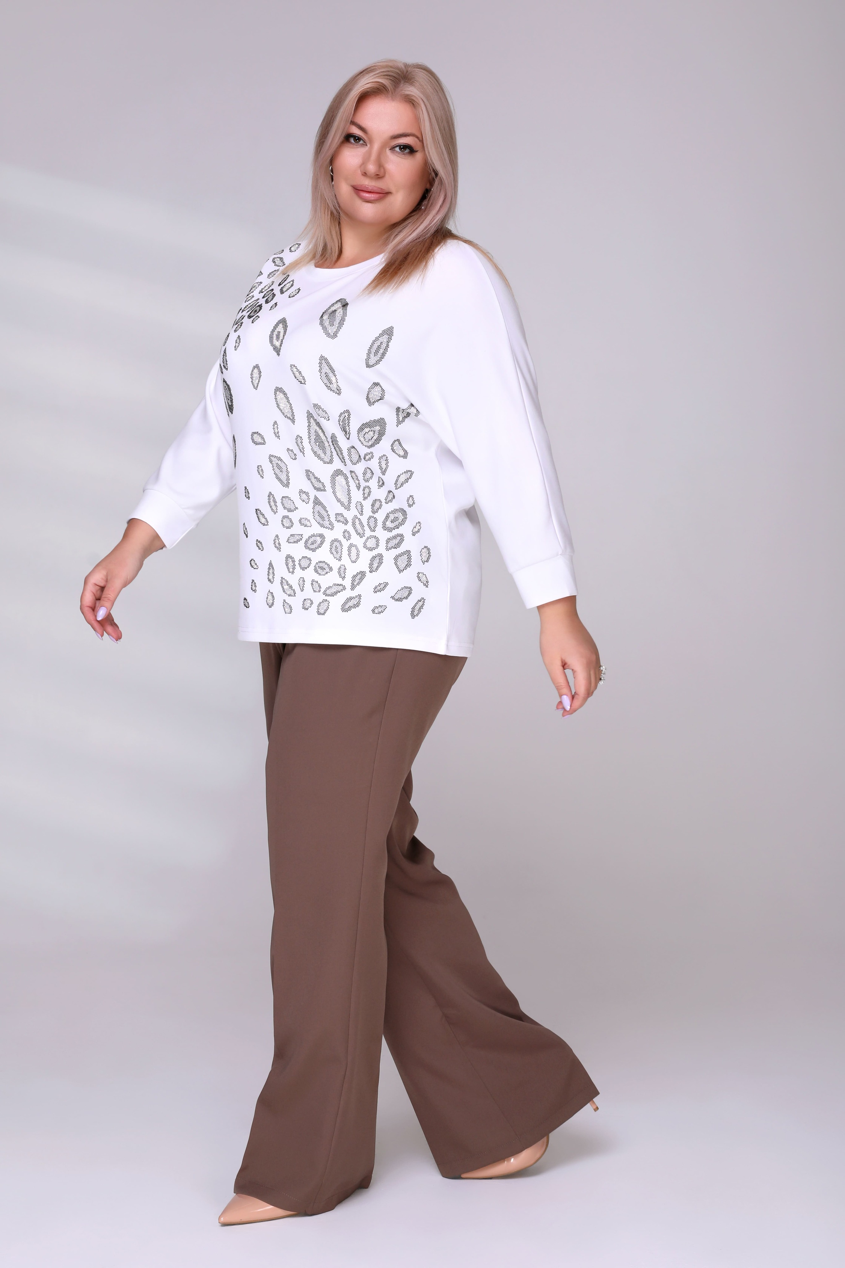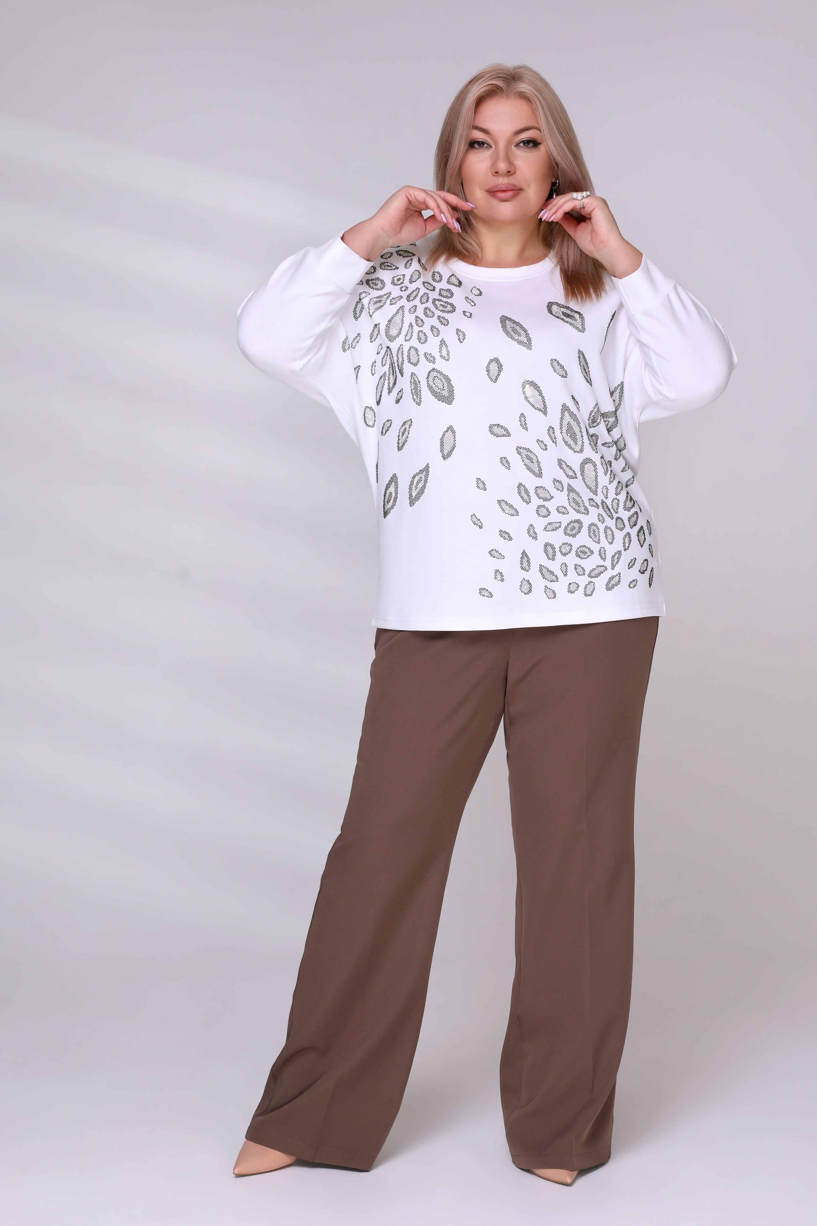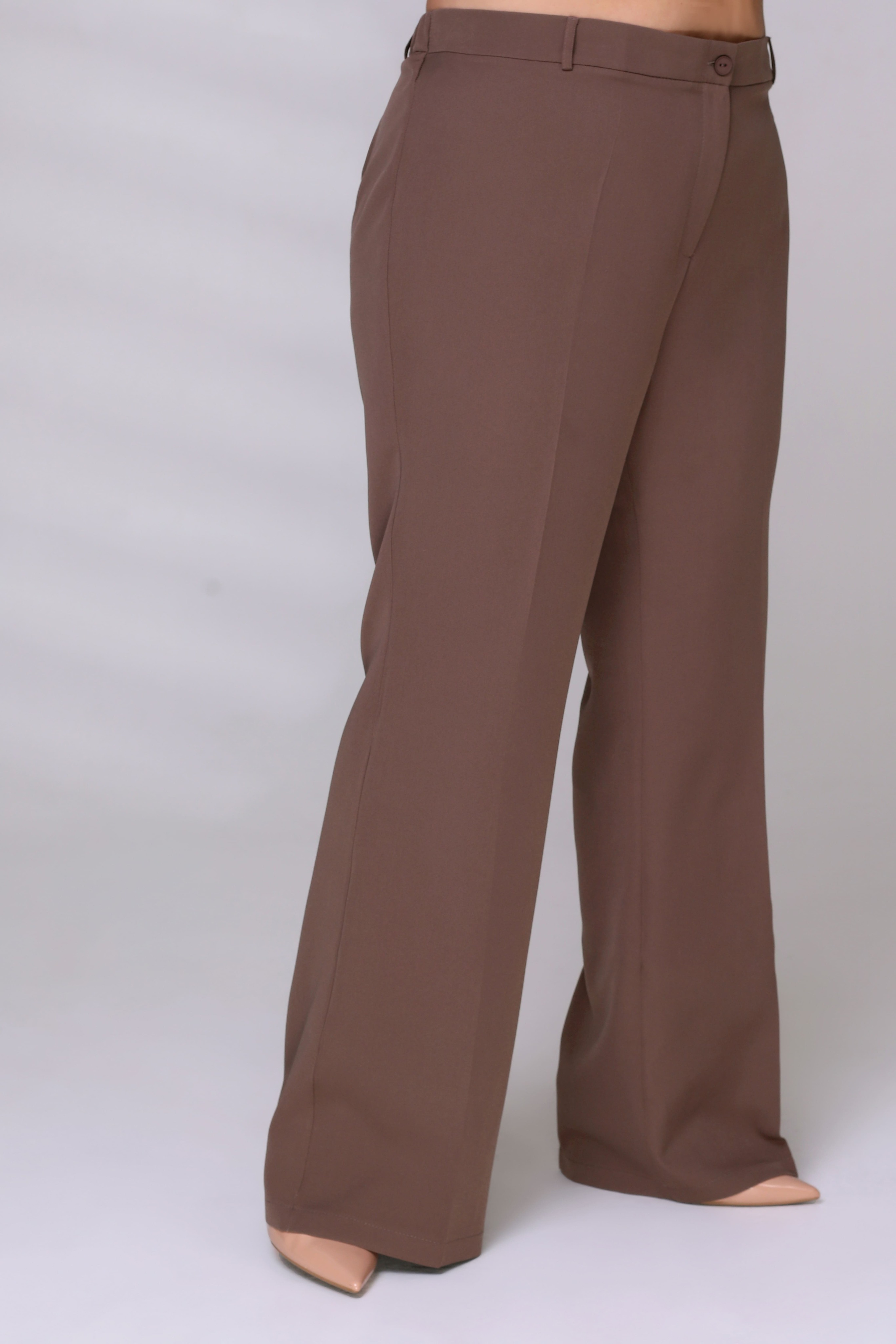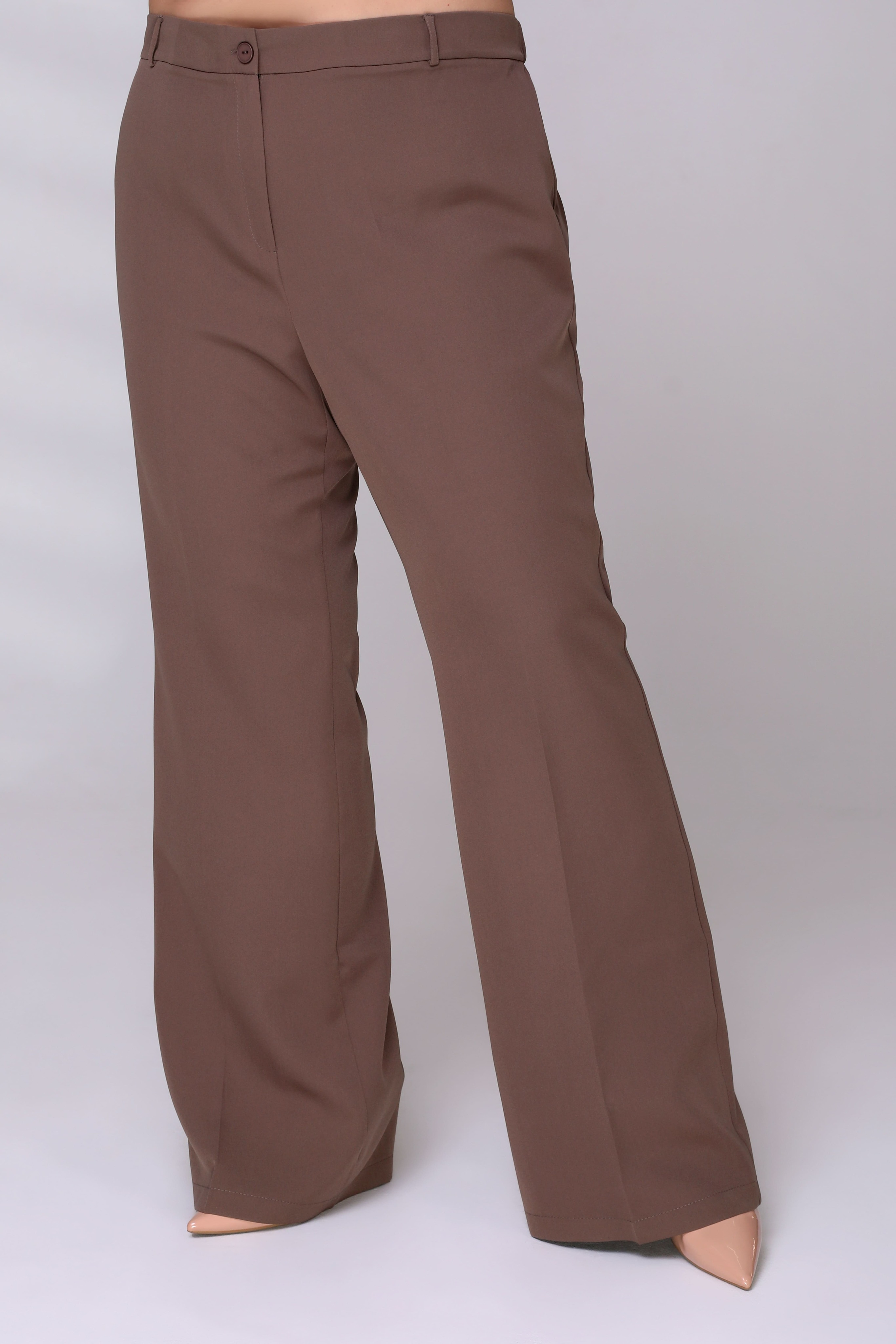 Брюки классического кроя отлично сидят за счет притачного пояса со шлевками. модель привлекает внимание широким клешем книзу. брюки застёгиваются спереди на скрытую молнию и пуговицу. модель прекрасно подойдёт для комбинирования с водолазками, свитерами, блузками и рубашками. эти модные брюки станут идеальным вариантом для создания стильного образа.