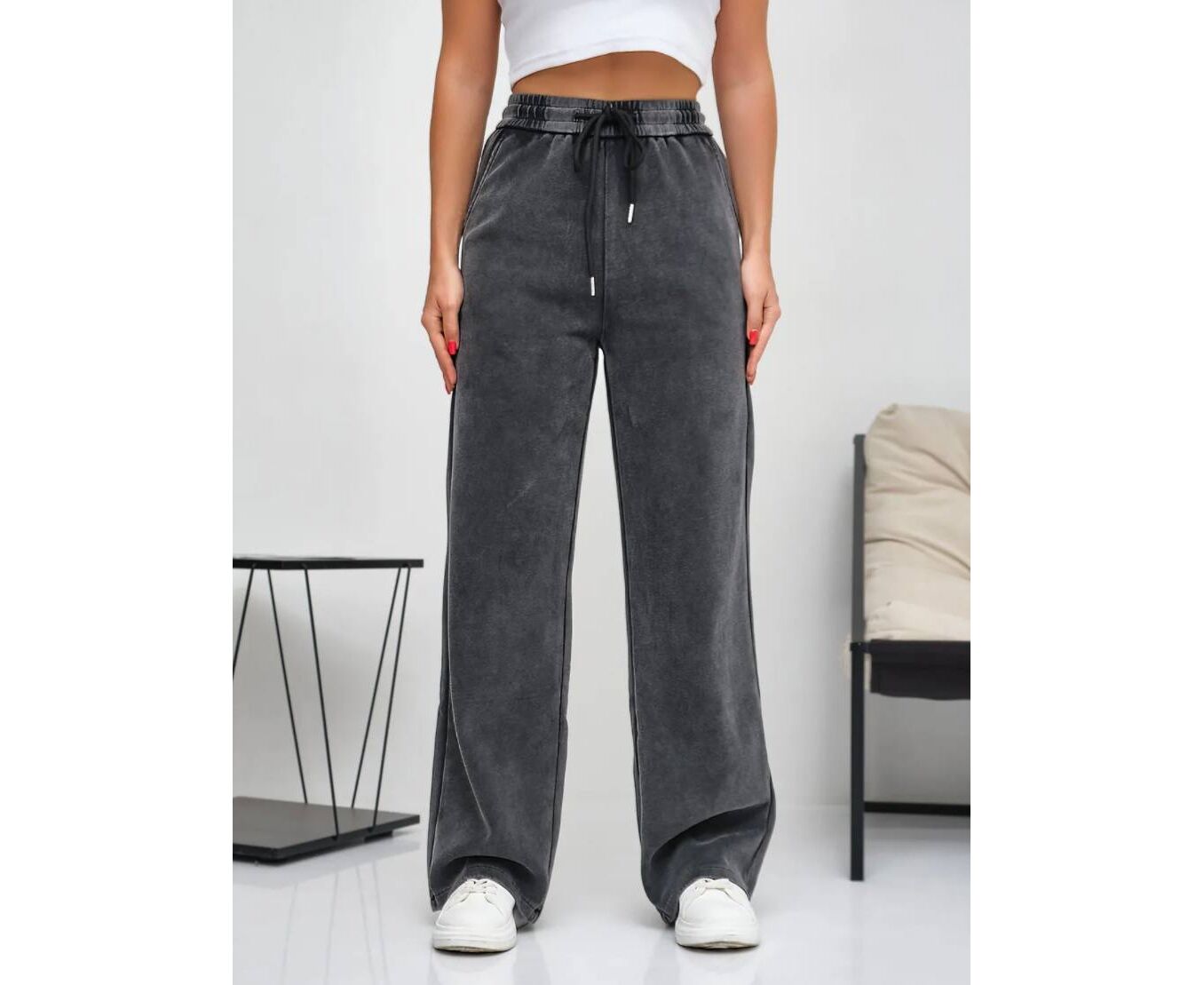 Брюки спортивные оверсайз посадки с эффектом варки.