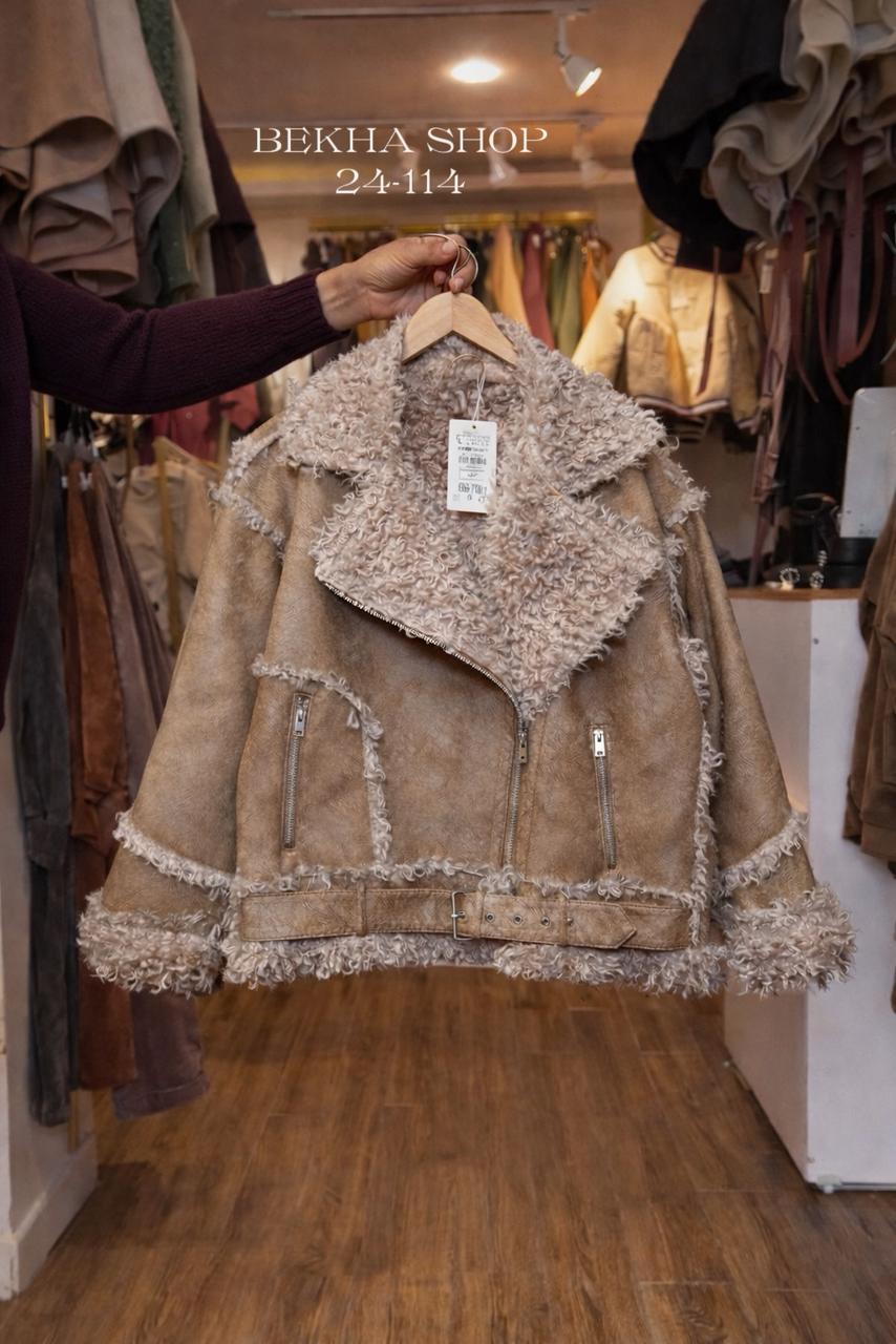 укороченная дублёнка с мехом Тёплая и стильная: косая молния, пояс и карманы на замках Размер: s (42-44) m (46-48) l (50-52)