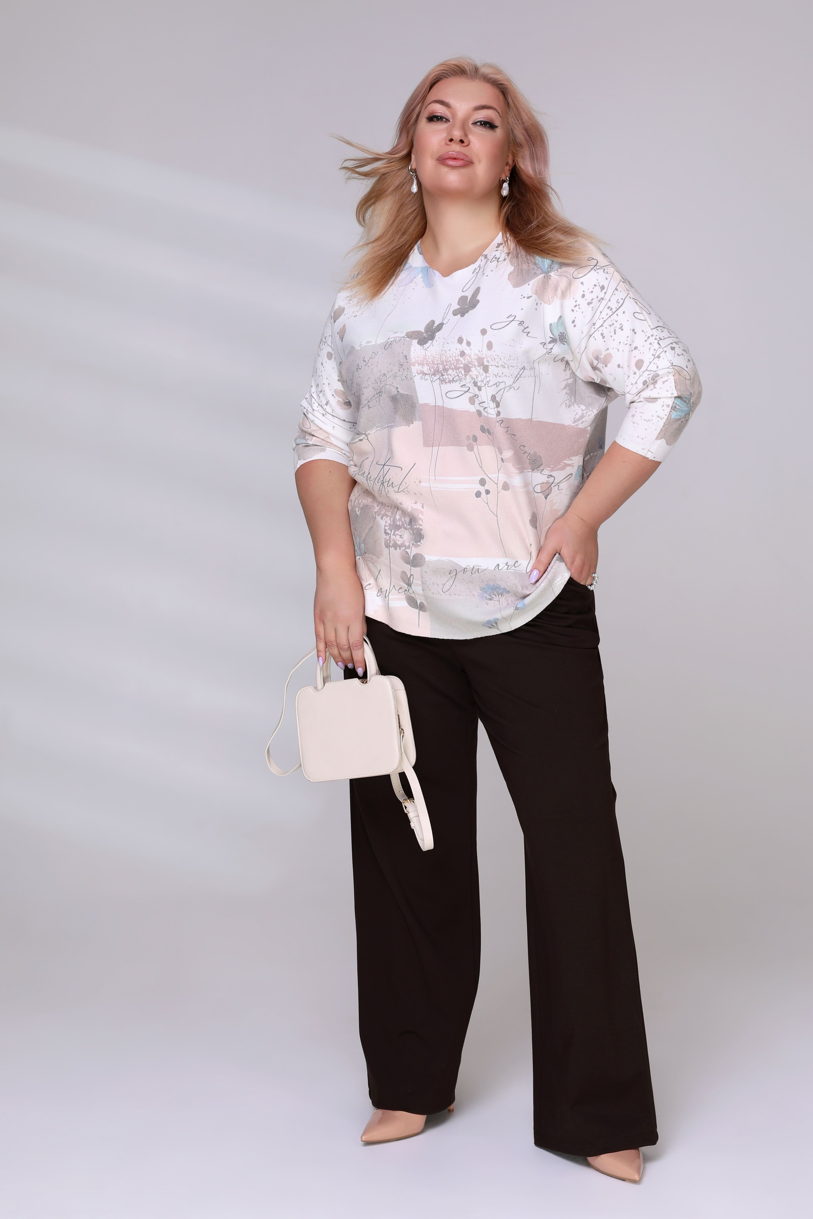 Джемпер с абстрактным рисунком "цветы" пудрово-белый