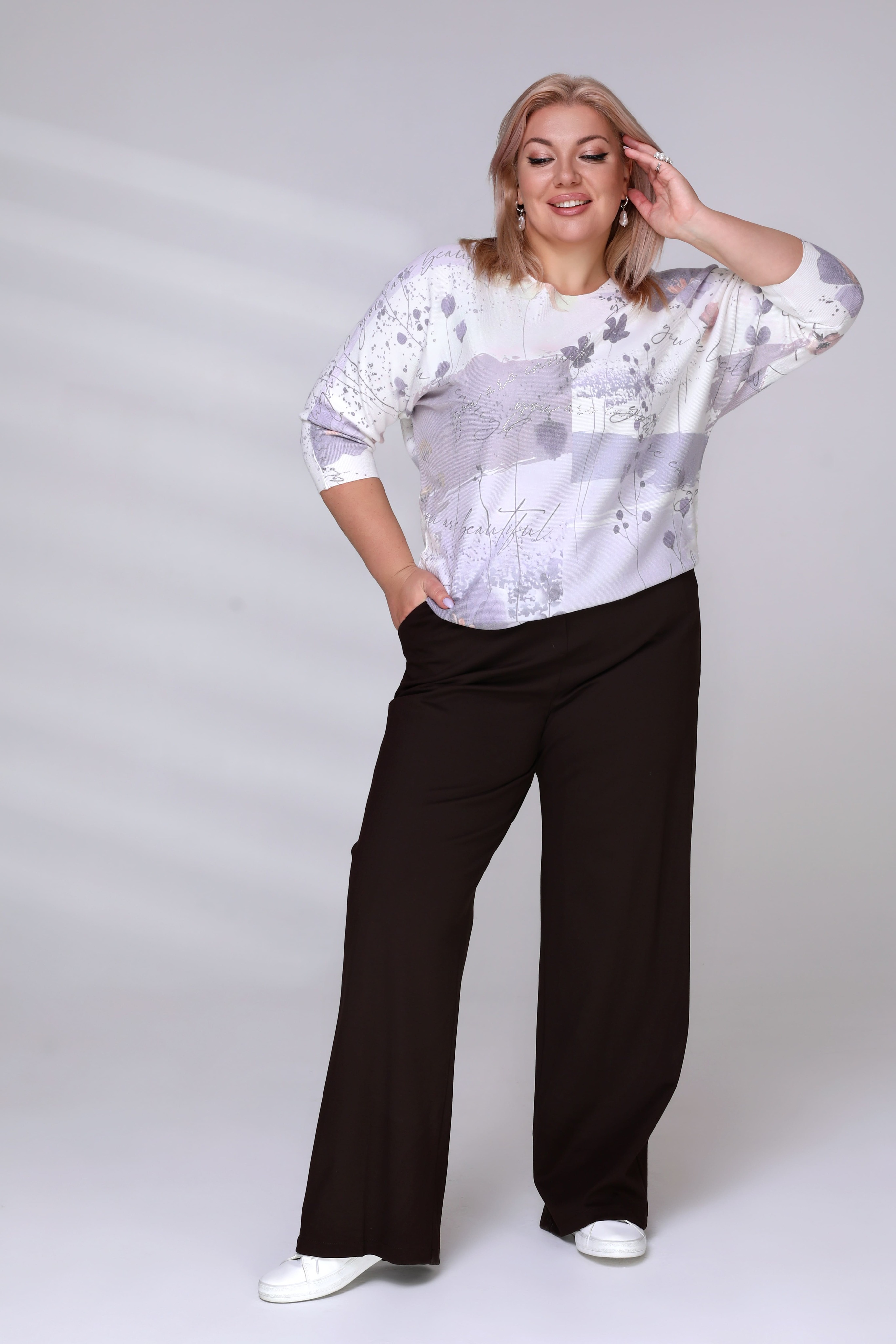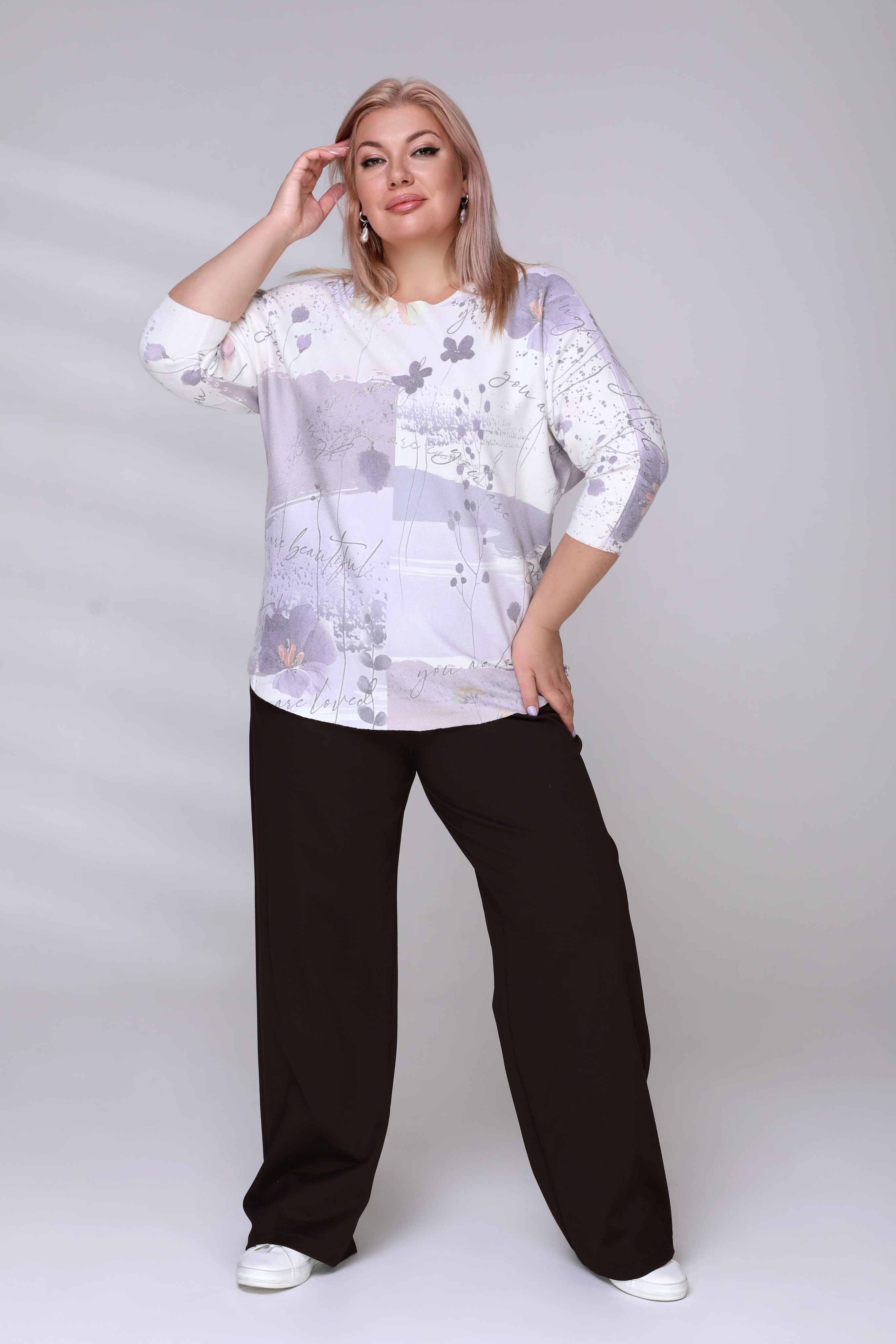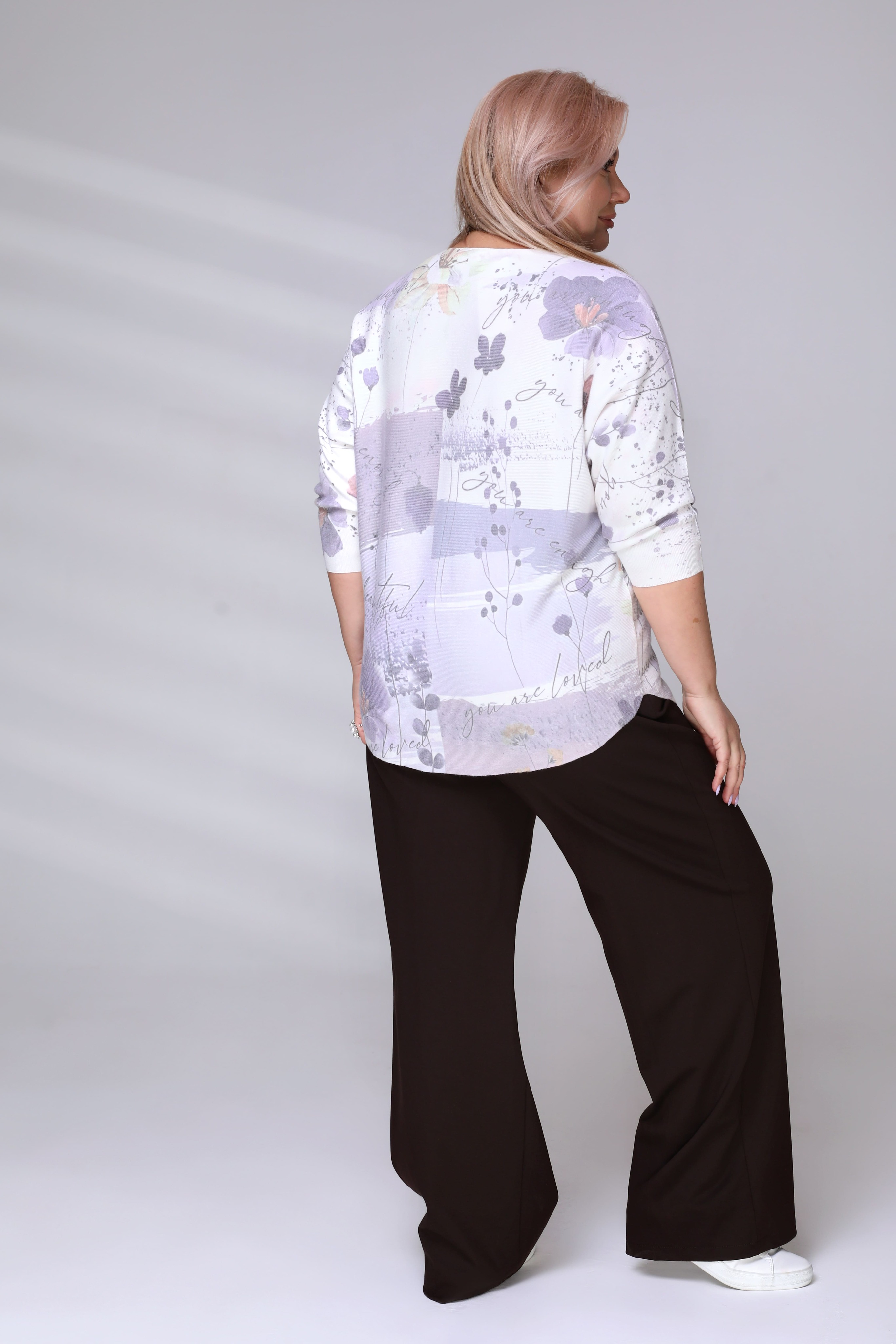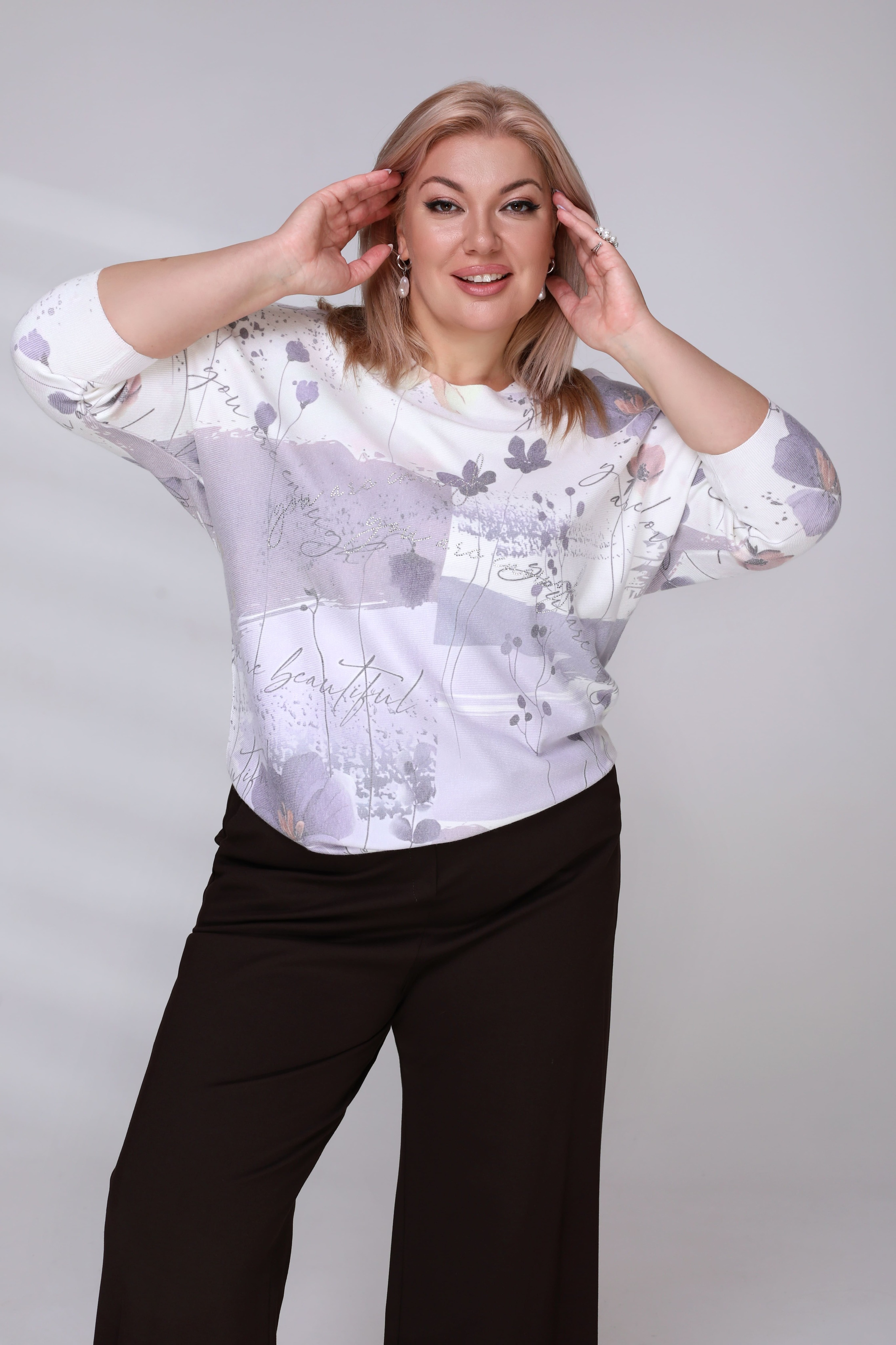 Джемпер с абстрактным рисунком "цветы" фиолетово-белый
