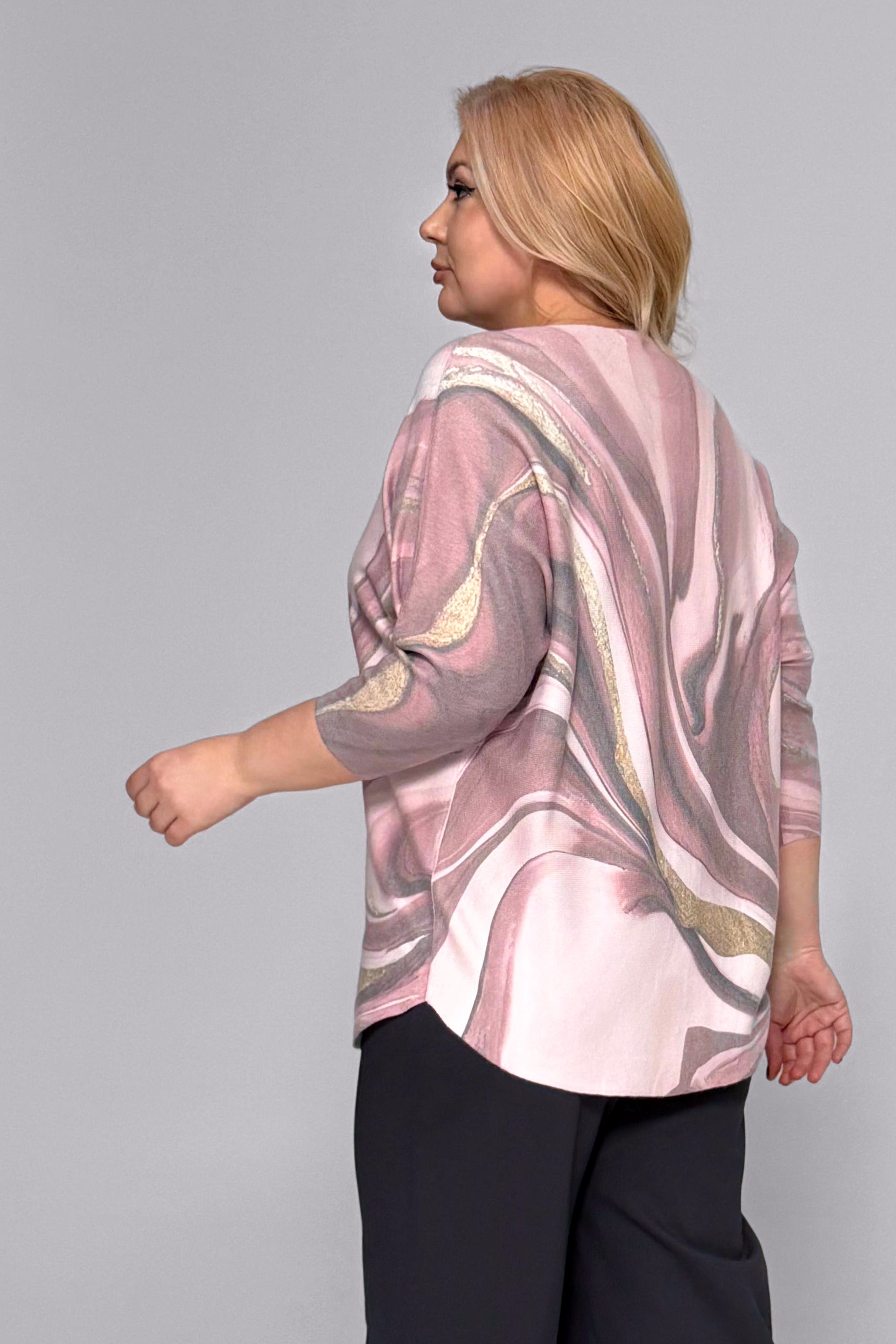 Джемпер прямого кроя из мягкого трикотажа с добавлением нитей кашемира согреет вас в холодную погоду. имеет круглый вырез и приспущенные рукава длиной 3/4. закругленные бока способствуют оптимальной посадке по фигуре. оригинальный принт добавляет динамичности и освежает образ. такая универсальная модель подходит ко всему, а приятный на ощупь материал - обеспечивает комфорт и уют на весь день. модель отлично сочетается с брюками и юбками.