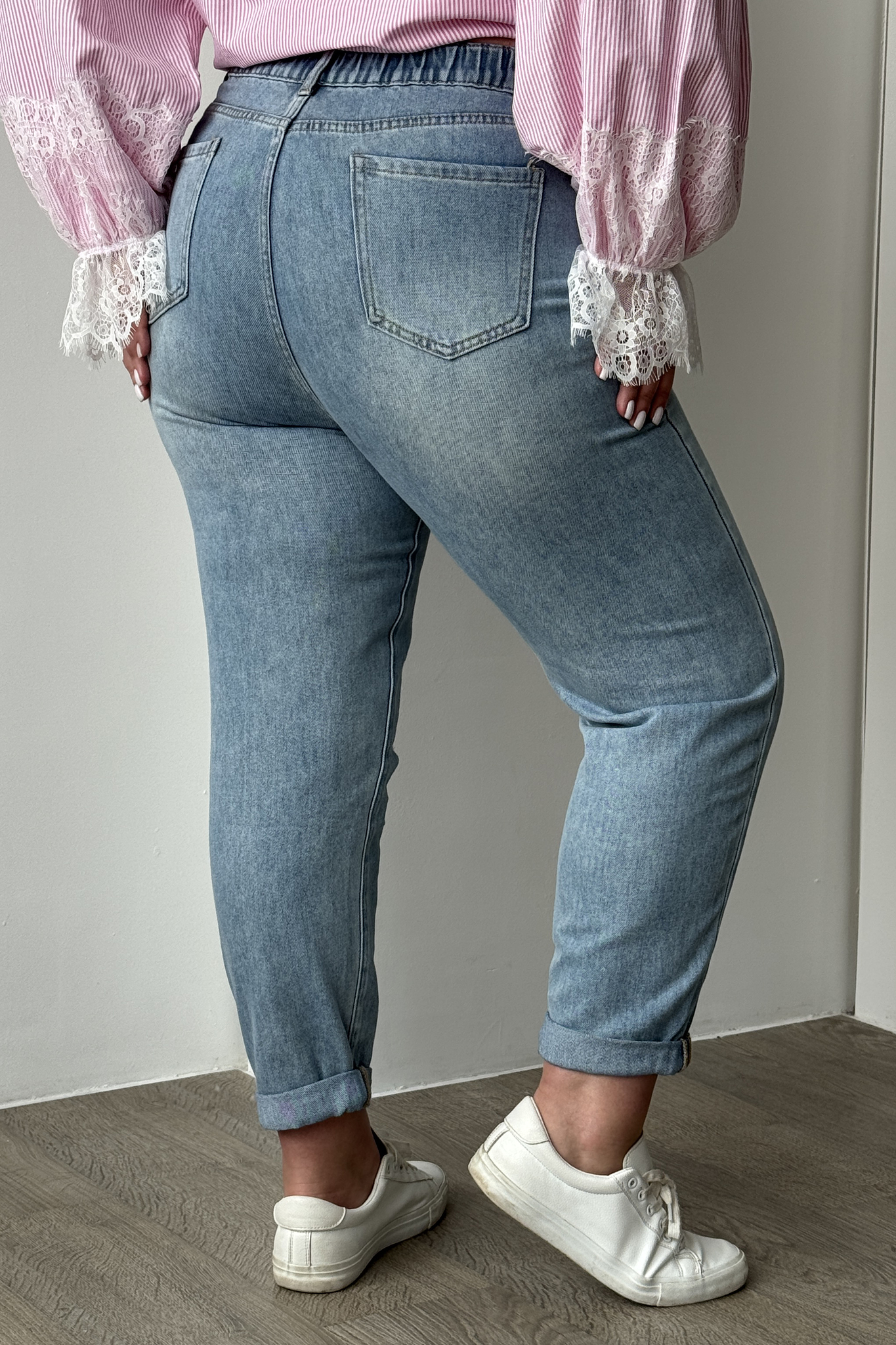 Элегантные брюки из мягкой джинсовой ткани с добавлением стрейча. модель отлично сидит за счет притачного пояса и кокетки по спинке. боковые карманы с отрезным бочком и задние накладные карманы добавляют модели практичности и функциональности. модель с комфортной посадкой не сковывает движений. зауженные книзу брючины визуально стройнят и зрительно вытягивают силуэт. рванный эффект на брючинах добавляет модели оригинальности. модель застегивается спереди на пуговицу и скрытую молнию. комфортные джинсы - отличная база для создания разнообразных образов. их могут смело носить как юные, спортивные барышни, так и изысканные дамы в возрасте. правильно подобрав аксессуары, можно создавать смелые, утонченно женственные, строгие, деловые образы. (во избежание окраски при первой носке, удалить с ткани новых джинсов излишки пигмента поможет легкая стирка с одним из закрепителей цвета (пищевой соды, уксуса, лимонной кислоты).