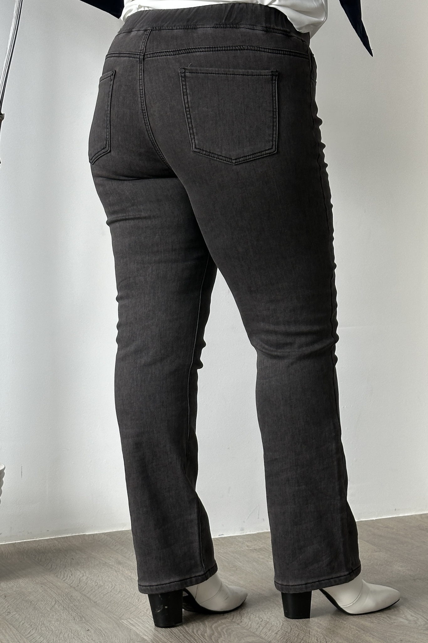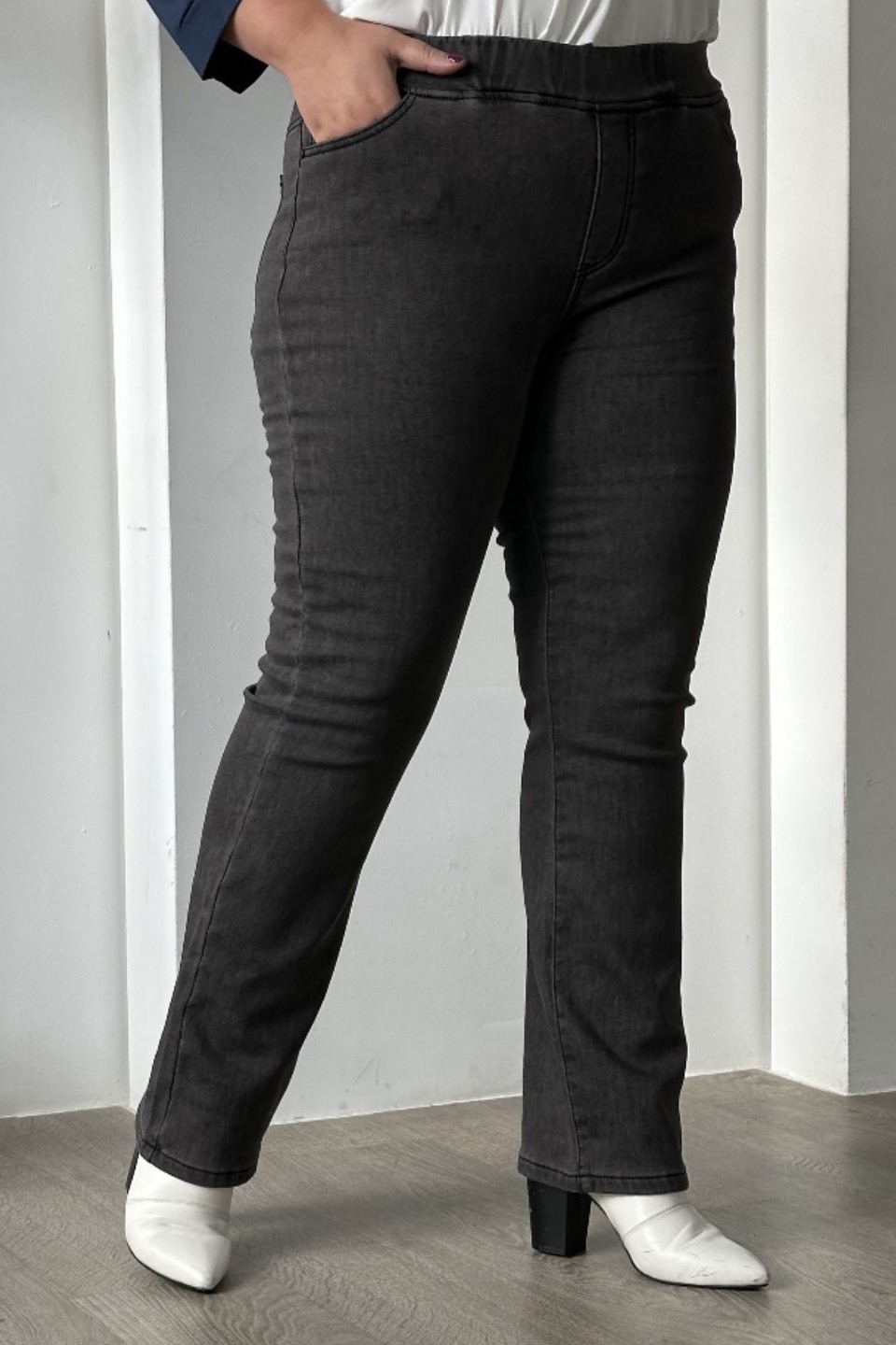 Элегантные брюки, выполненные из мягкого денима с добавлением эластана и тонкой байки, представляют собой уникальное сочетание стиля и комфорта.