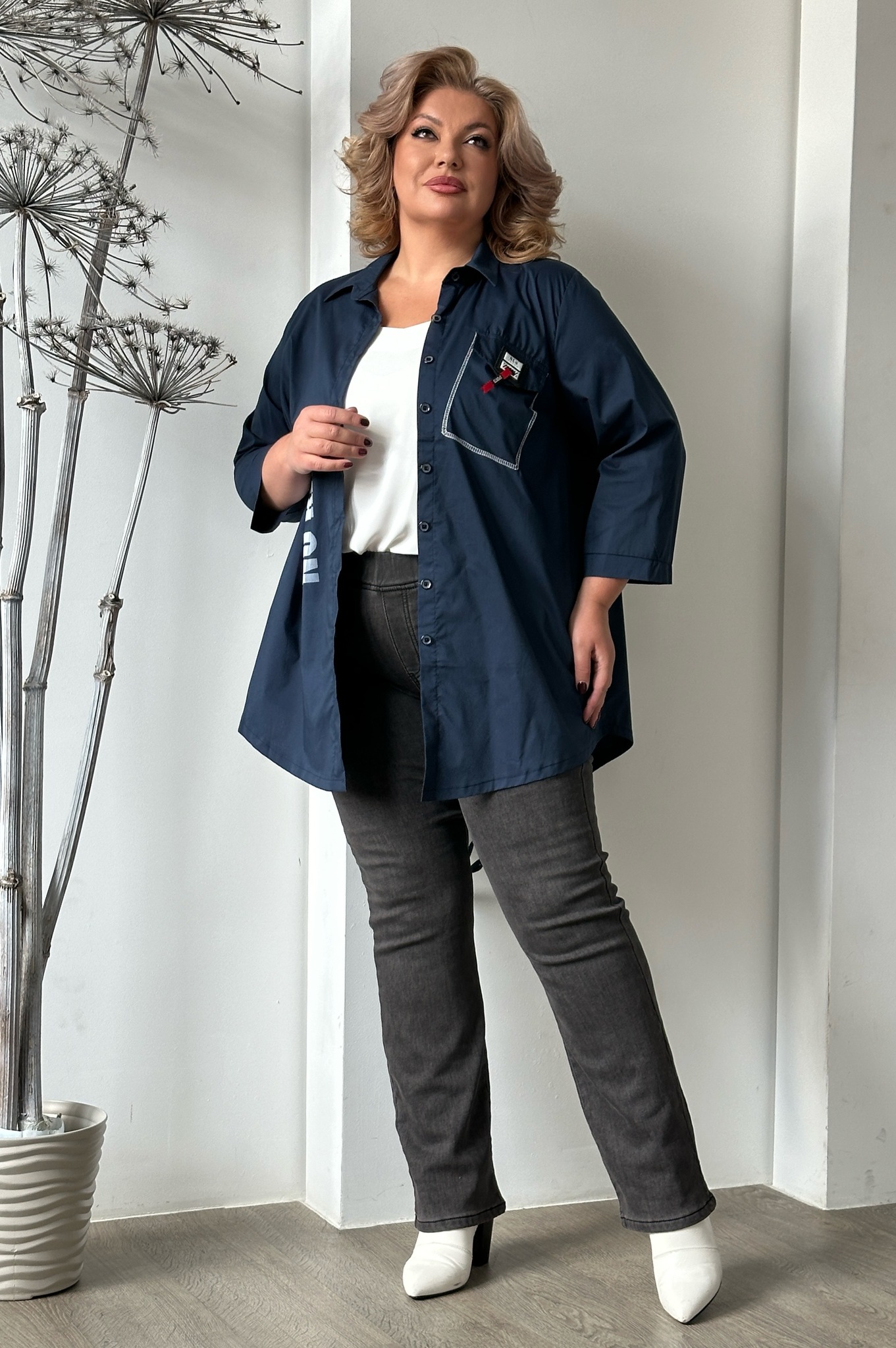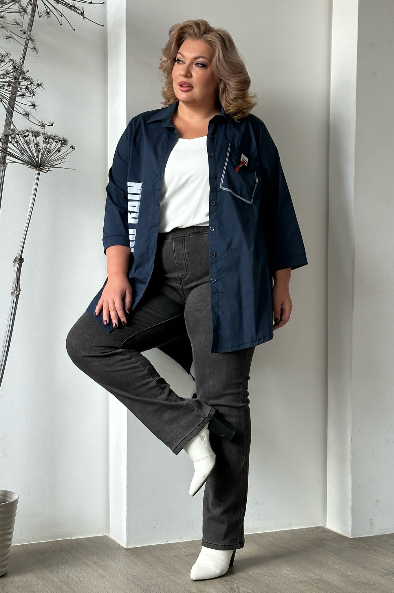 Высокая посадка обеспечивает свободу движений, что делает эти джинсы универсальными для любого образа — от активного и молодежного до элегантного и женственного. с помощью аксессуаров можно создавать разнообразные стили: от смелых и женственных до строгих и деловых.