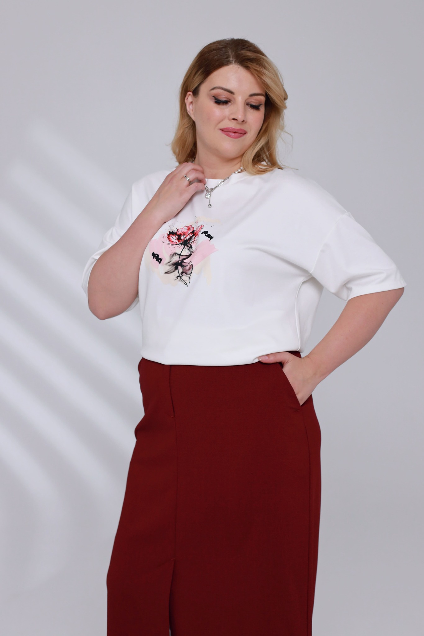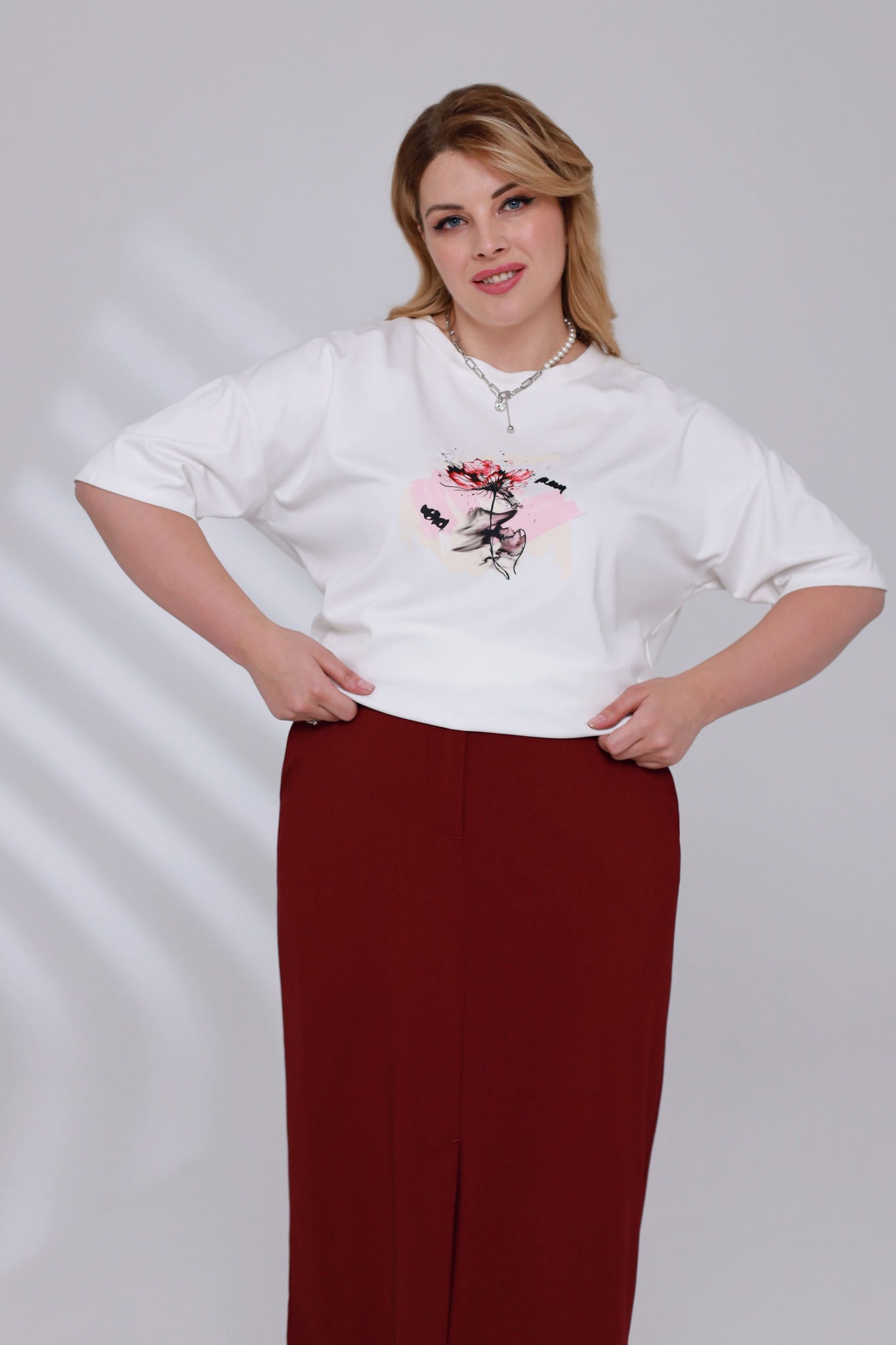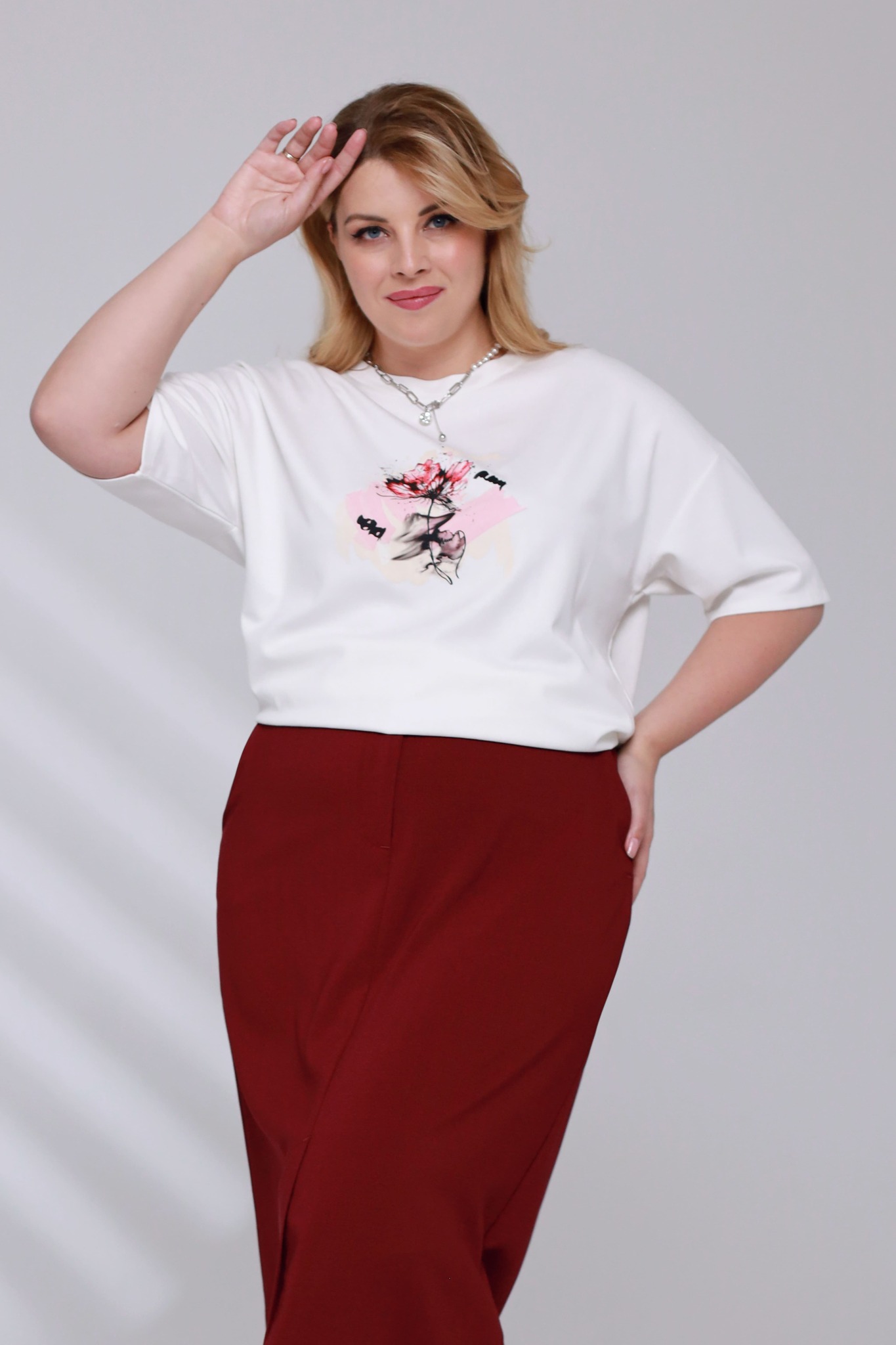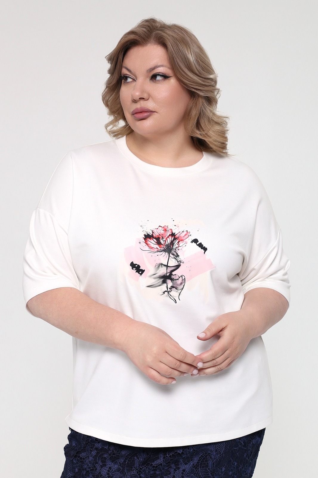 Футболка с рисунком на груди "цветы" белая