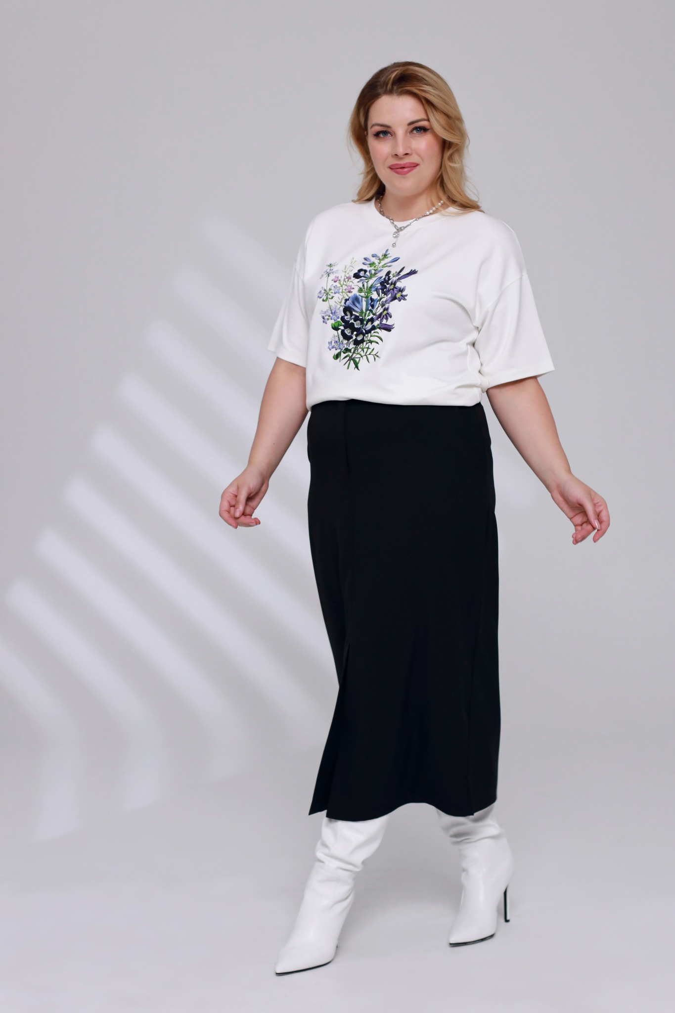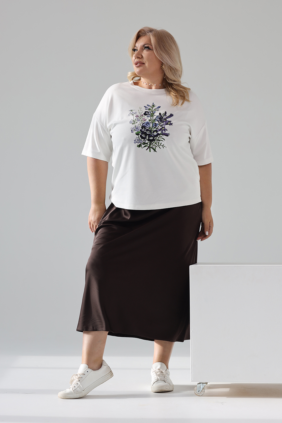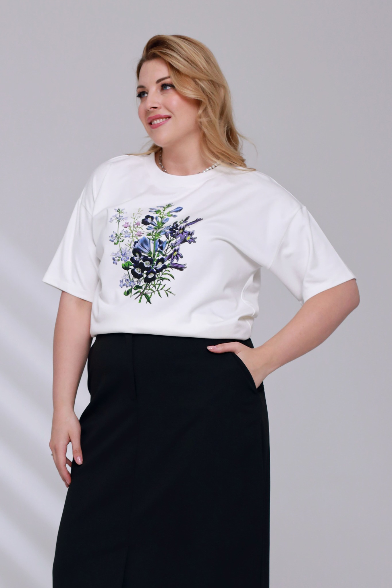 Футболка прямого кроя из мягкого трикотажа. модель имеет круглый вырез с узким кантом и короткие приспущенные рукава. свободный силуэт искусно обыгрывает фигуру и не сковывает движений. актуальная шелкография на груди освежает образ и добавляет нарядности. модель легко сочетается с любым низом, поэтому скомбинировать чудесный и стильный образ с легинсами, брюками, шортами и джинсами не составит труда.