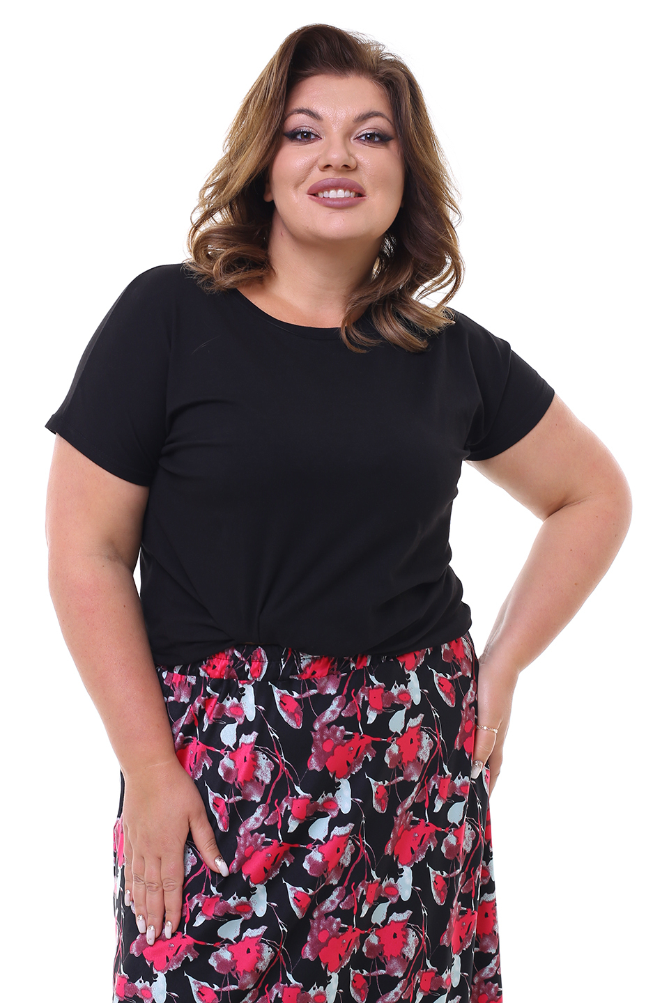 Футболка прямого кроя из мягкого трикотажа. модель имеет круглый вырез с узким кантом и короткие цельнокроеные рукава. свободный силуэт искусно обыгрывает фигуру и не сковывает движений. модель легко сочетается с любым низом, поэтому скомбинировать чудесный и стильный образ с легинсами, брюками, шортами и джинсами не составит труда.