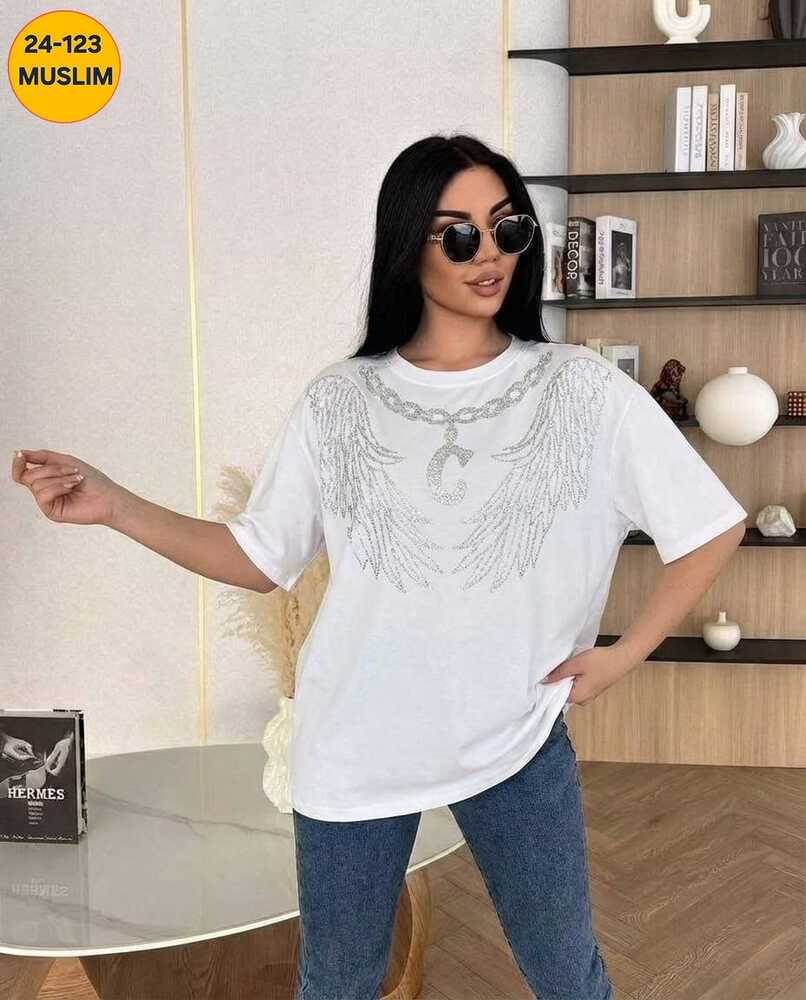 женская футболка со стразами ткань: хлопок фабричный китай. размер единый 48-54