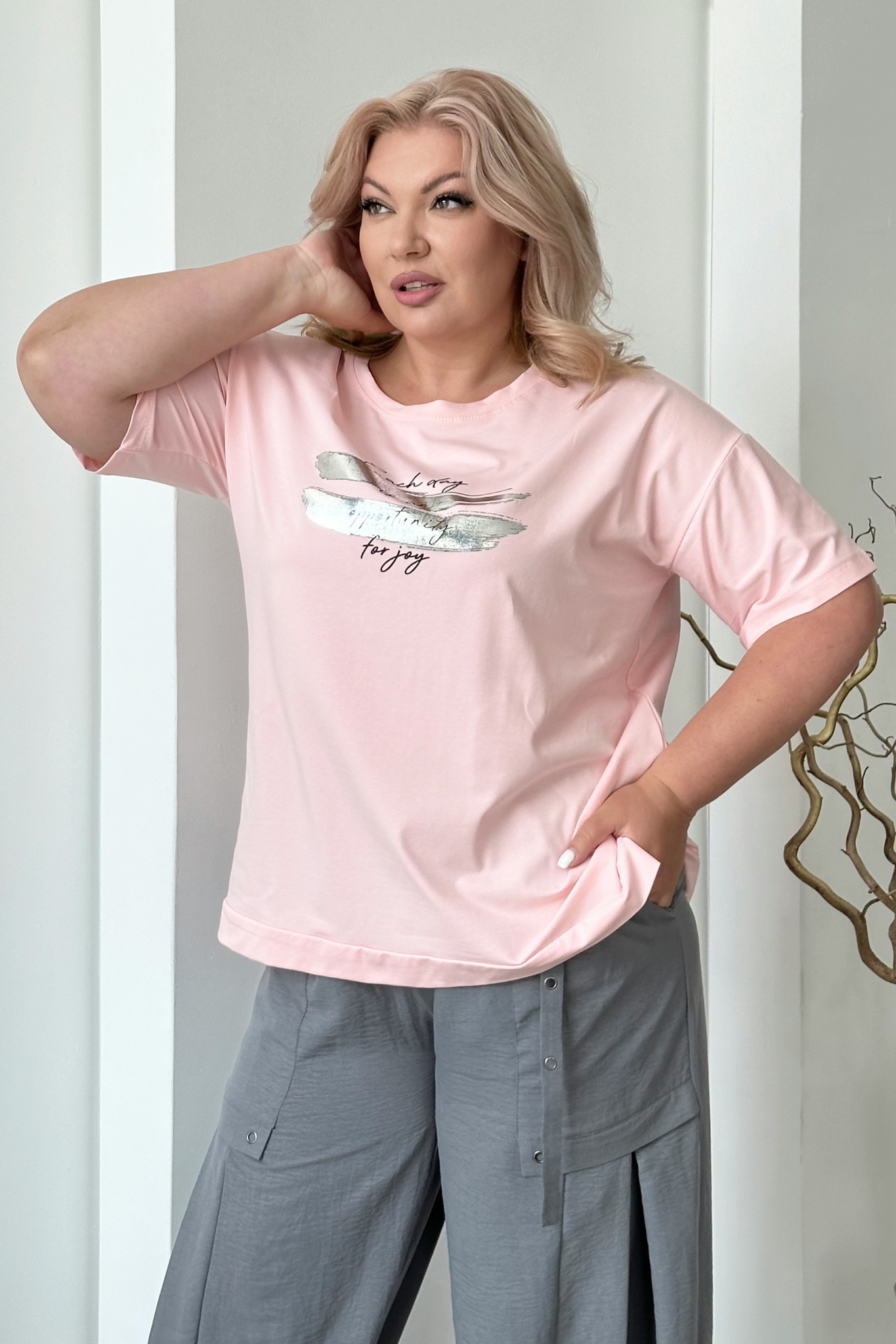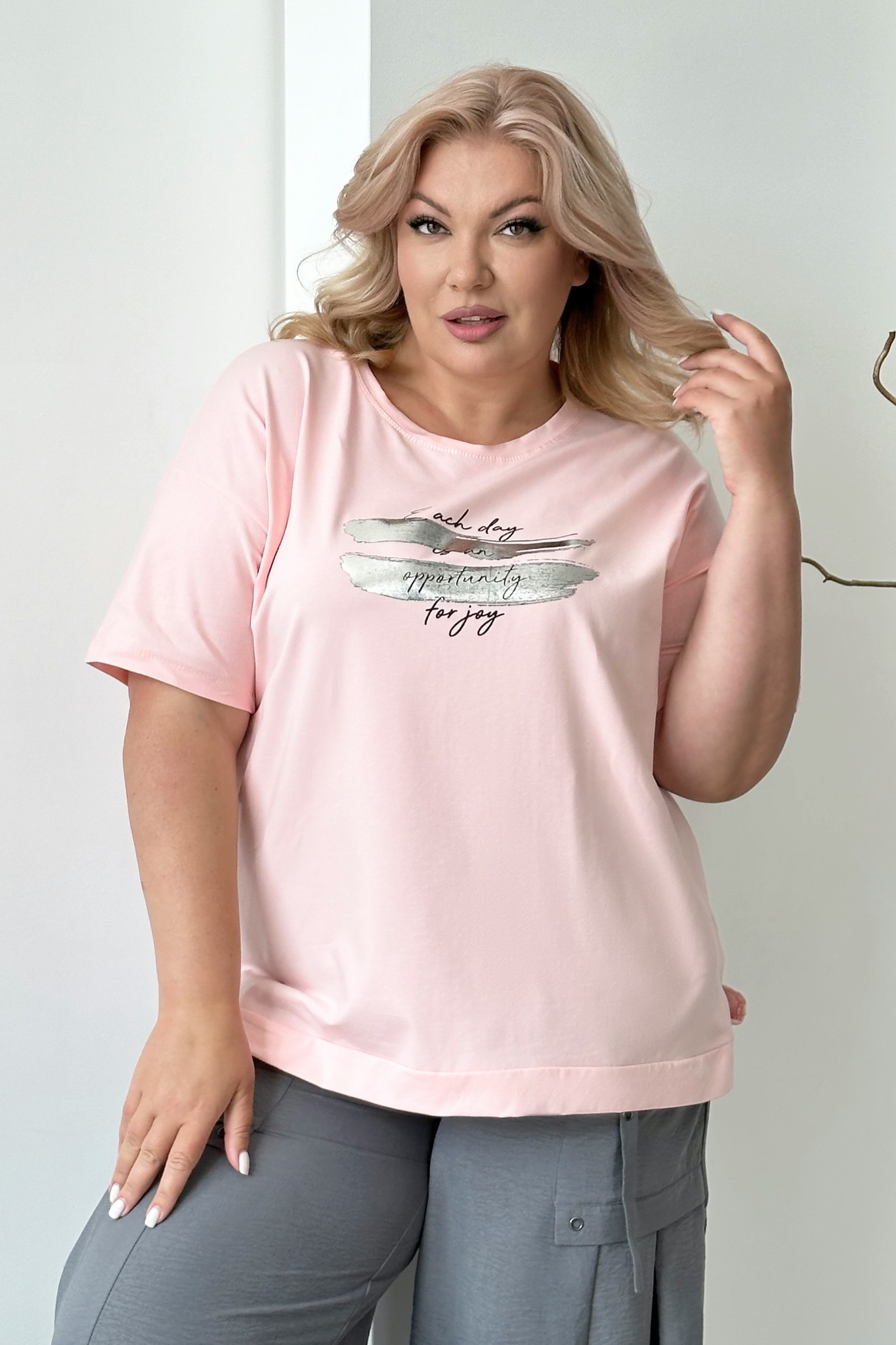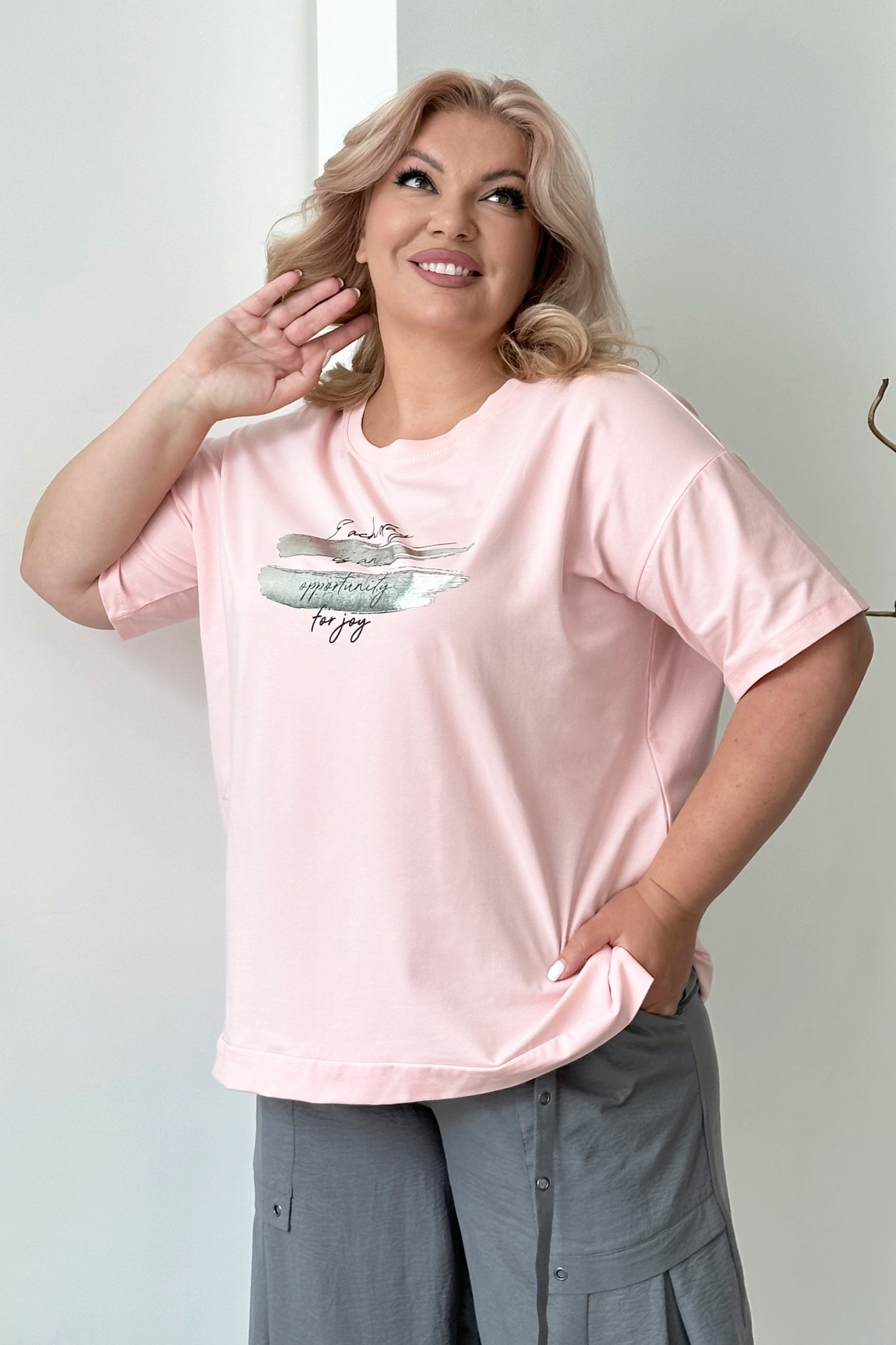 Футболка с серебристими разводами и надписью пудра