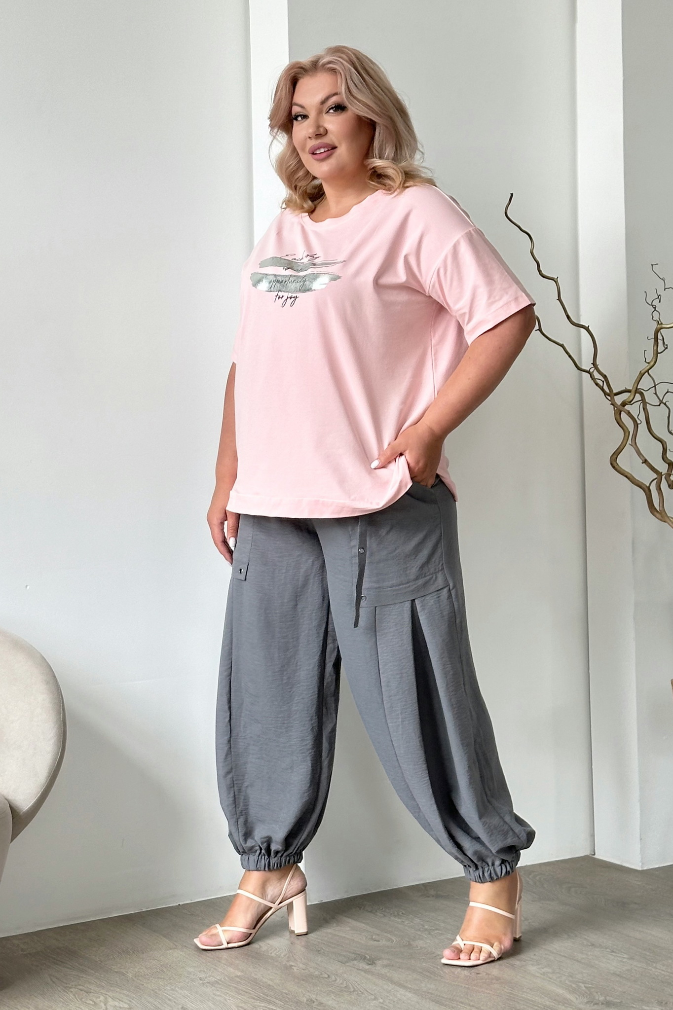 Футболка прямого кроя из мягкого трикотажа. модель имеет круглый вырез с узким кантом и короткие цельнокроеные рукава. свободный силуэт искусно обыгрывает фигуру и не сковывает движений. актуальная шелкография на груди освежает образ и добавляет нарядности. небольшие разрезы по бокам способствует оптимальной посадке по фигуре. модель легко сочетается с любым низом, поэтому скомбинировать чудесный и стильный образ с легинсами, брюками, шортами и джинсами не составит труда.