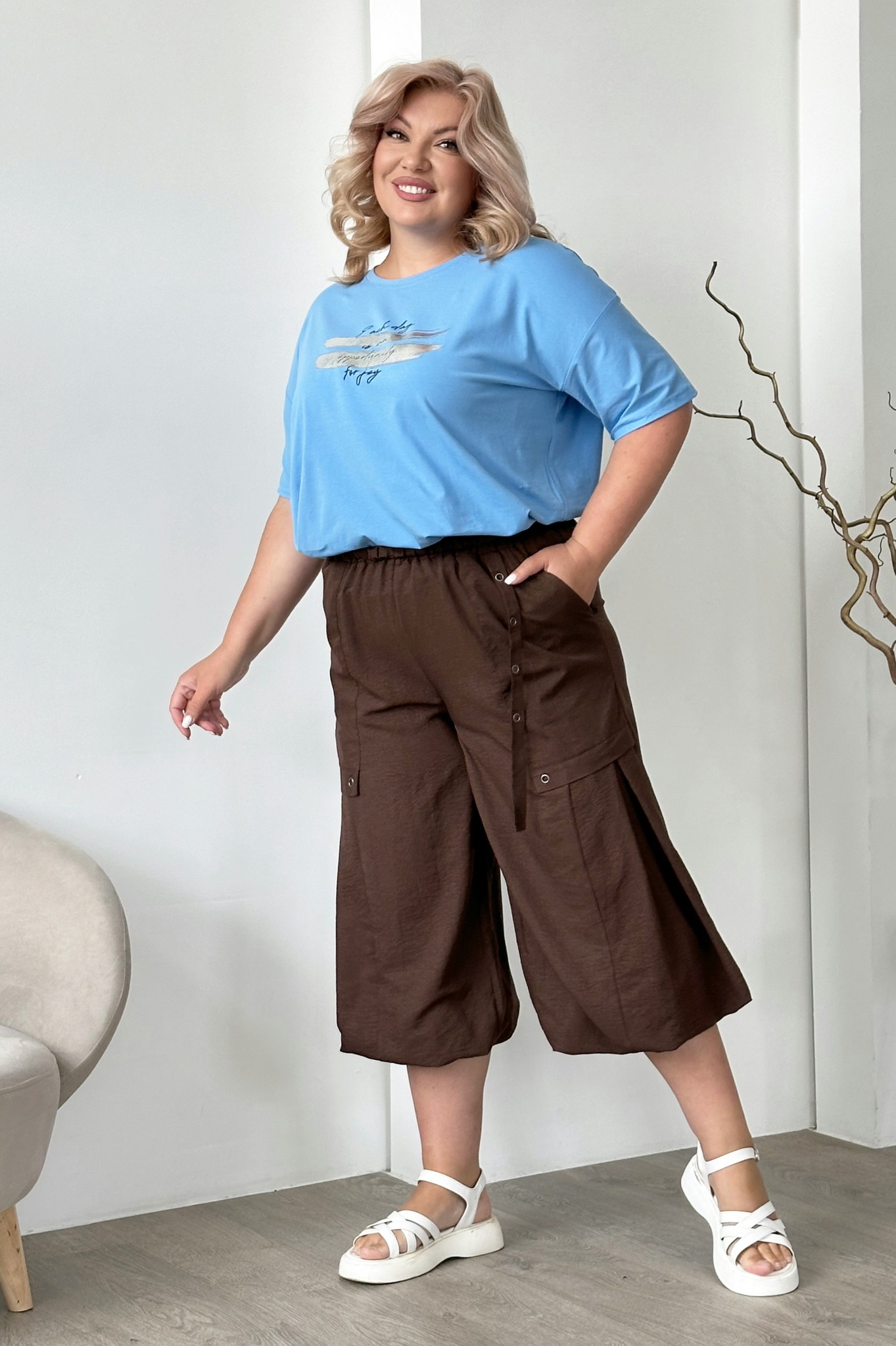 Футболка прямого кроя из мягкого трикотажа. модель имеет круглый вырез с узким кантом и короткие цельнокроеные рукава. свободный силуэт искусно обыгрывает фигуру и не сковывает движений. актуальная шелкография на груди освежает образ и добавляет нарядности. небольшие разрезы по бокам способствует оптимальной посадке по фигуре. модель легко сочетается с любым низом, поэтому скомбинировать чудесный и стильный образ с легинсами, брюками, шортами и джинсами не составит труда.