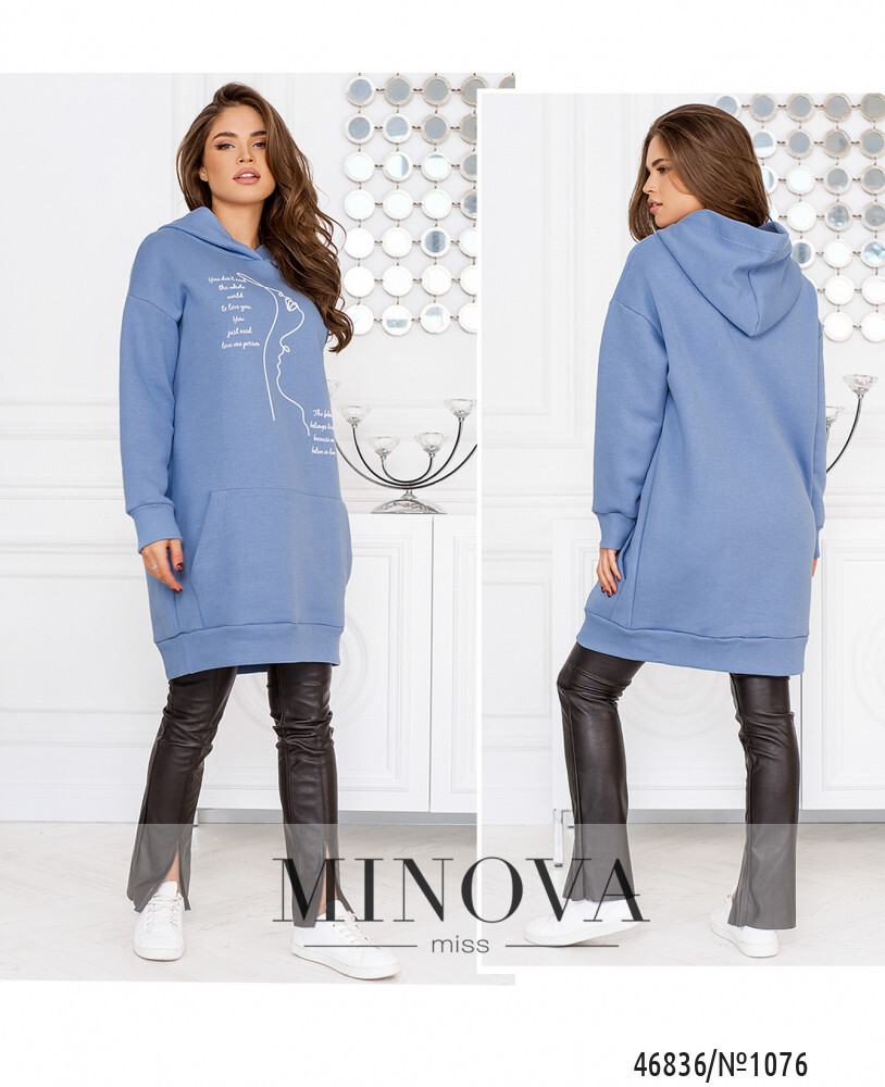 Стильная комфортная туника с принтом отличается универсальностью, а также удачно вписываются в любой стиль. модель свободного кроя дополнена длинными рукавами с приспущенной линией плеч и капюшоном.