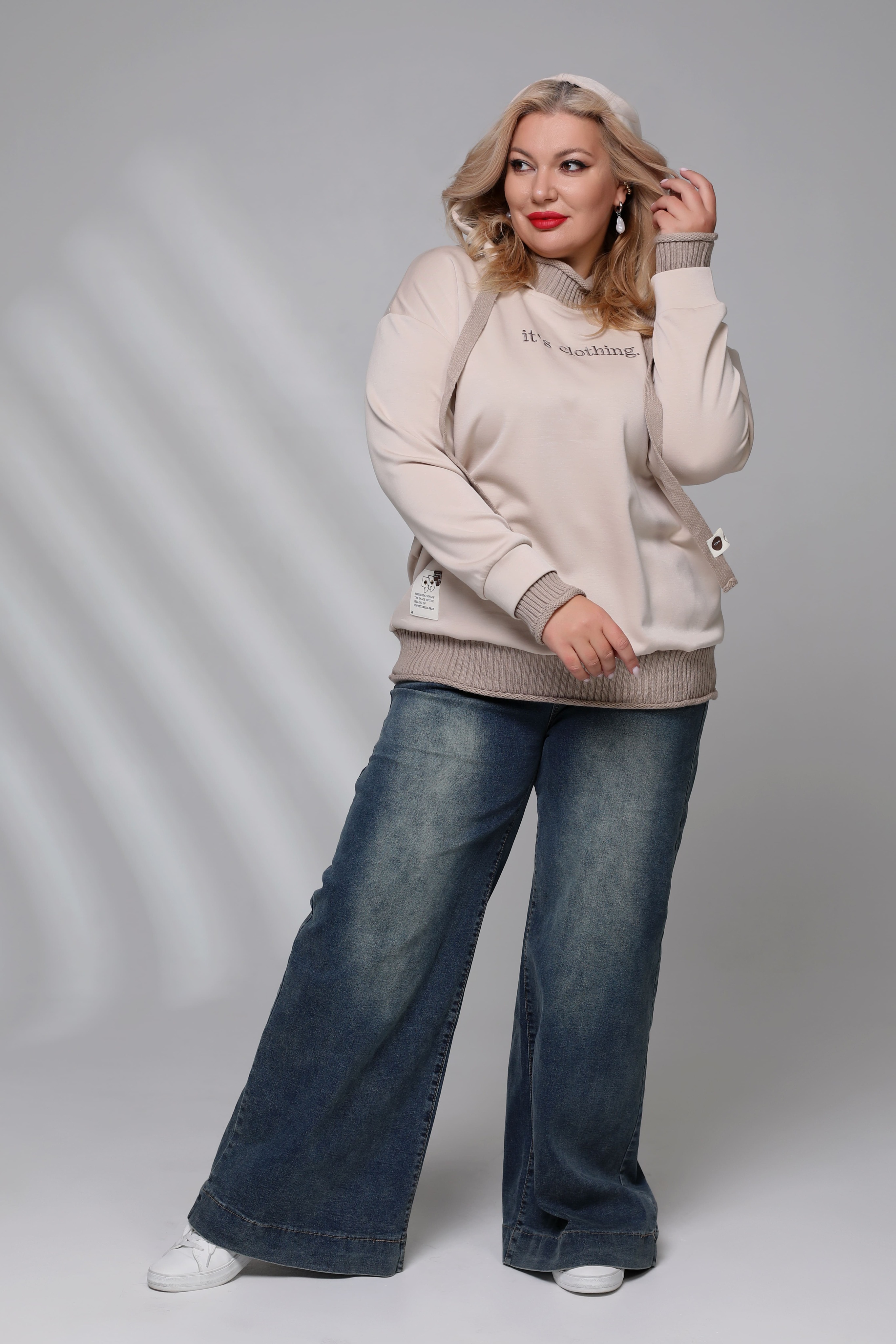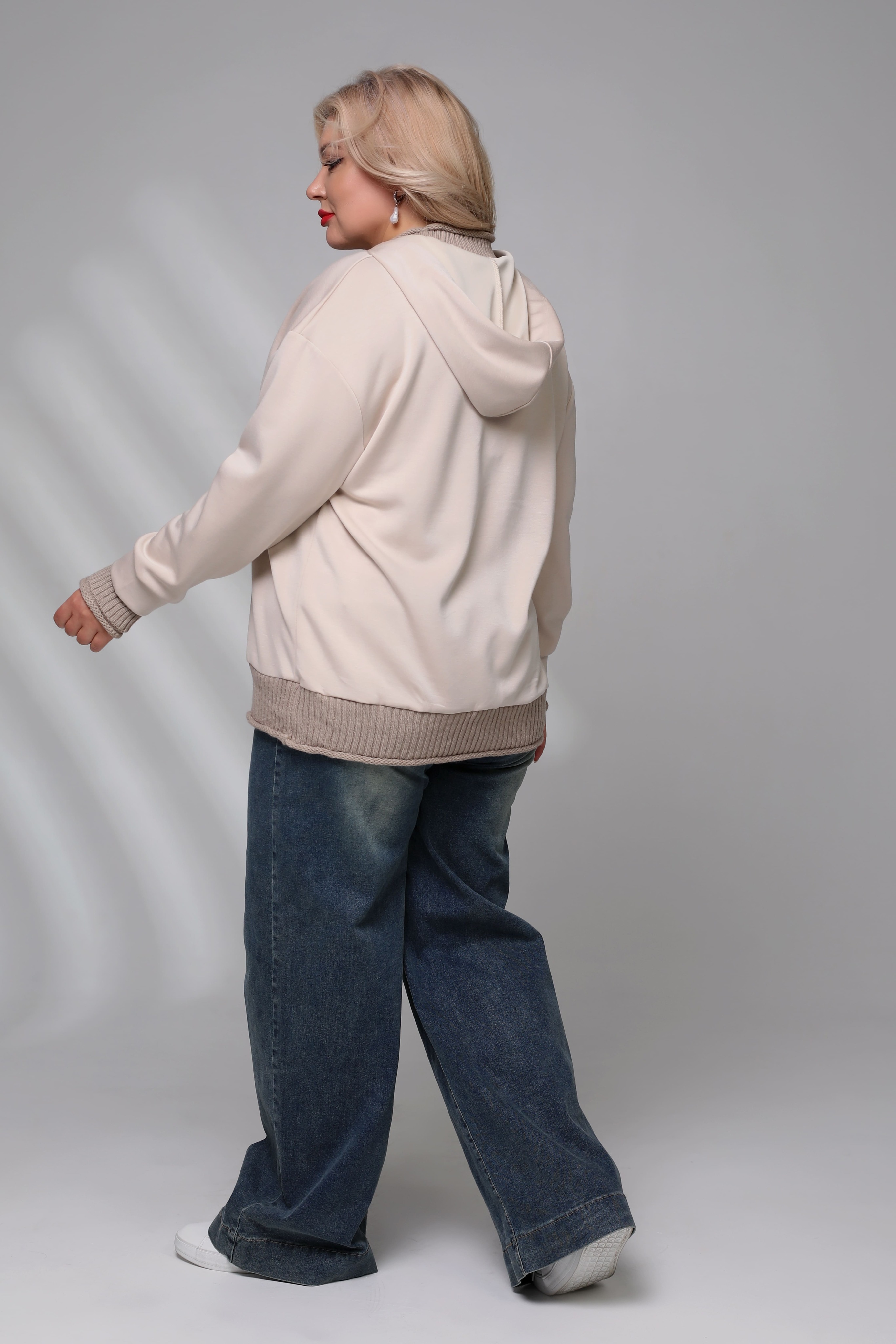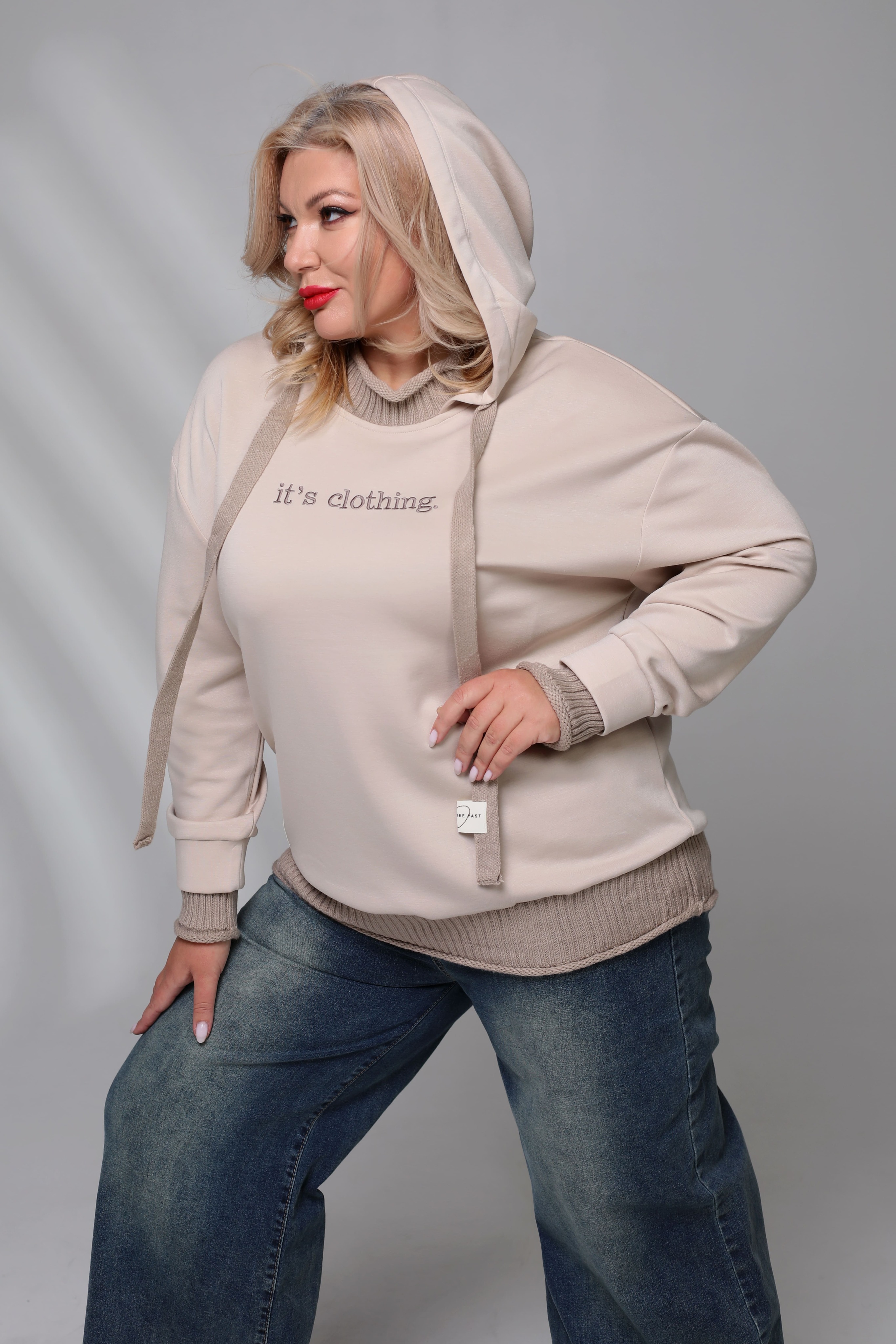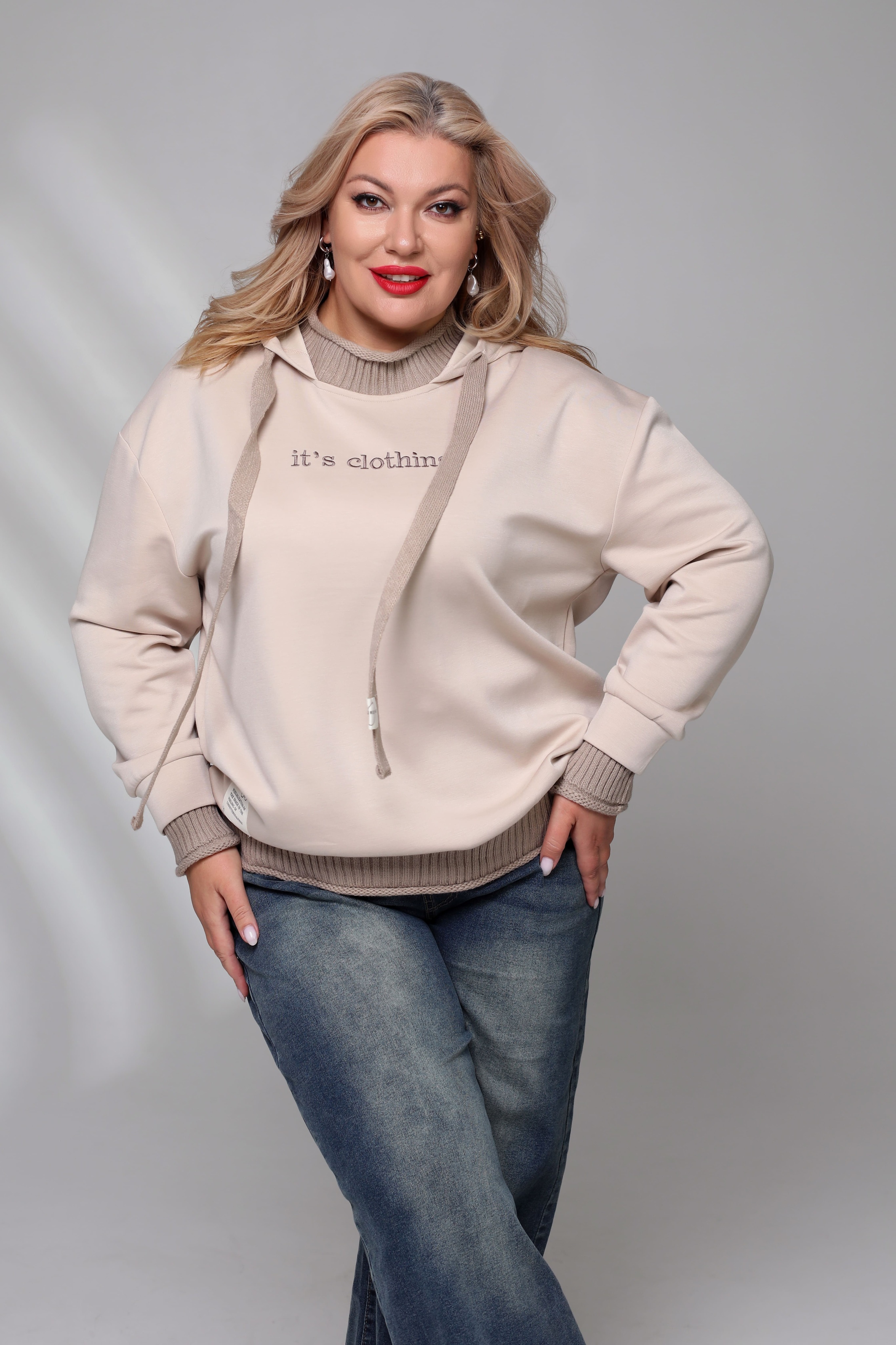 Худи с капюшоном с вязаной отделкой бежевое Параметры модели: Рост 173 см, Размер 54