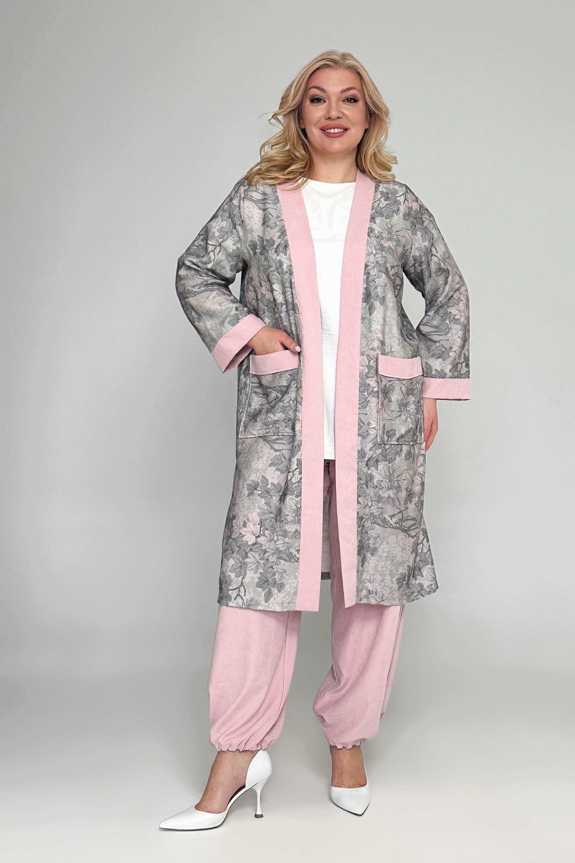 Стильный кардиган выполнен из мягкого материала. роскошный крой модели со свободными рукавами полной длины изящной формы не сковывает движений и позволит чувствовать себя легко. за счет распашного кроя кардиган можно легко накинуть на плечи. актуальный принт добавляет динамичности, а однотонные края освежают образ. объемные карманы по бокам добавляют практичности. такая вещь поможет скрыть мелкие недостатки фигуры, а оригинальный принт позволит сочетать её с различными оттенками базы и позволит вам создать эффектный и стильный образ.