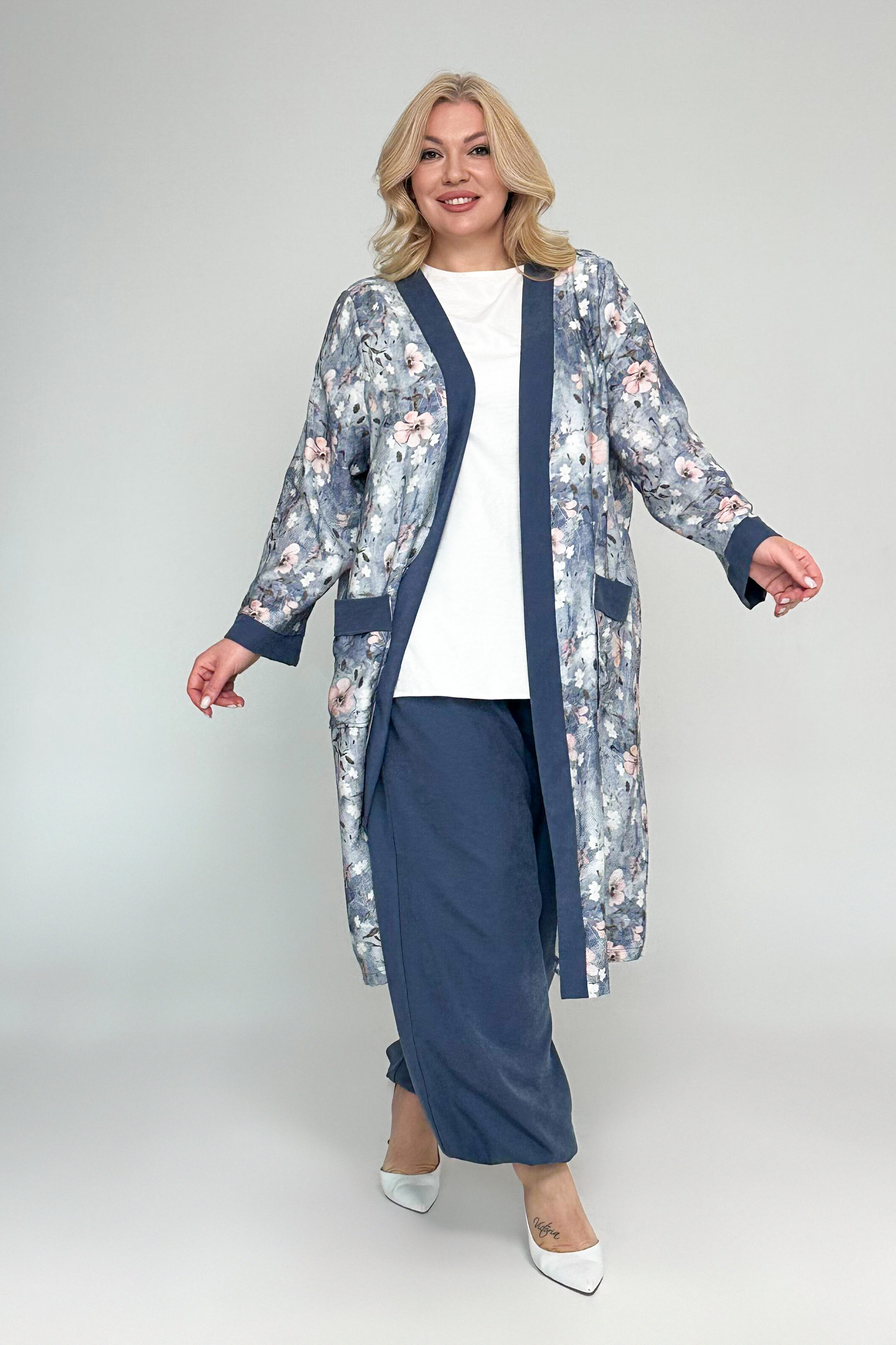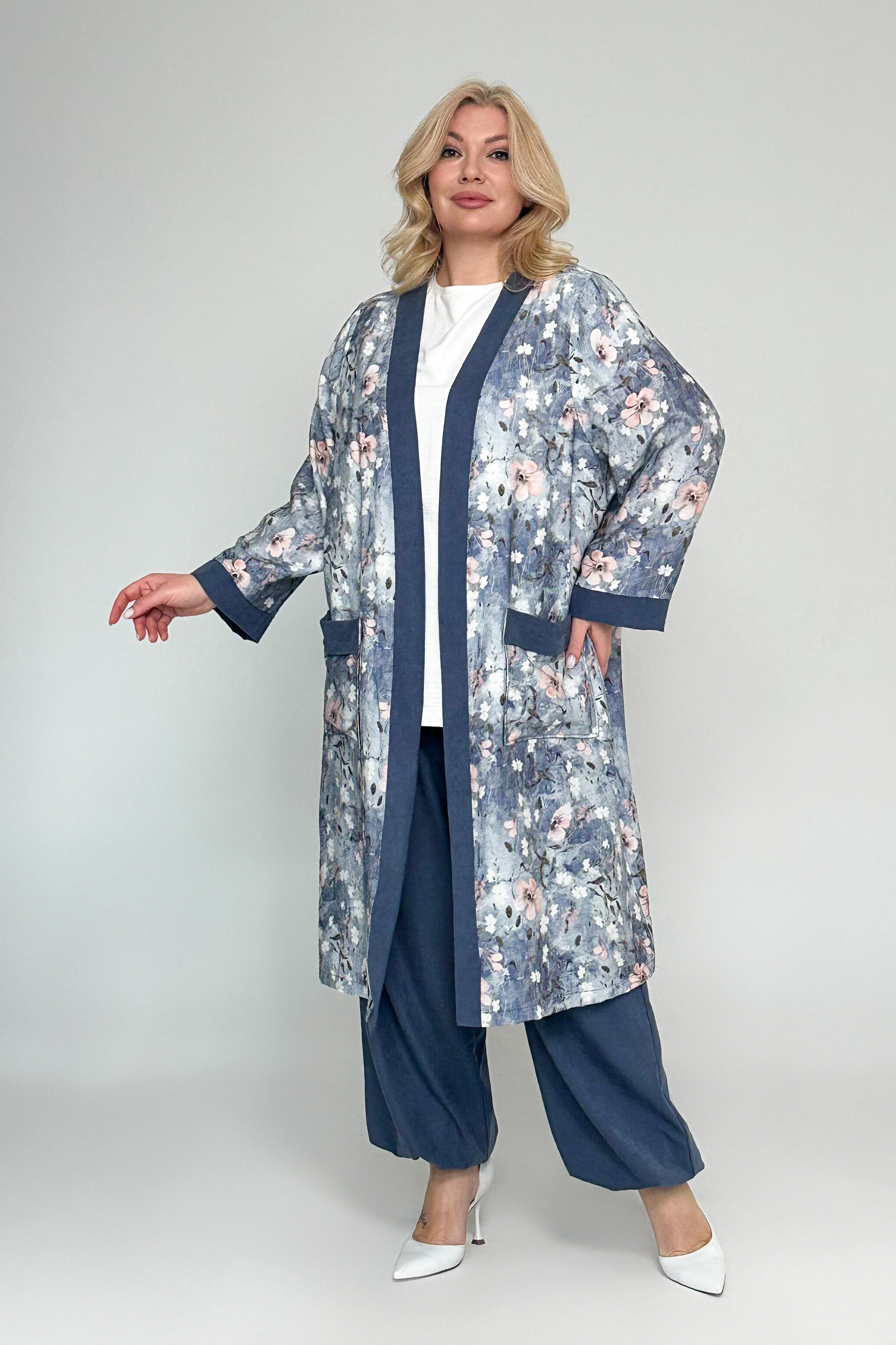 Стильный кардиган выполнен из мягкого материала. роскошный крой модели со свободными рукавами полной длины изящной формы не сковывает движений и позволит чувствовать себя легко. за счет распашного кроя кардиган можно легко накинуть на плечи. актуальный принт добавляет динамичности, а однотонные края освежают образ. объемные карманы по бокам добавляют практичности. такая вещь поможет скрыть мелкие недостатки фигуры, а оригинальный принт позволит сочетать её с различными оттенками базы и позволит вам создать эффектный и стильный образ.