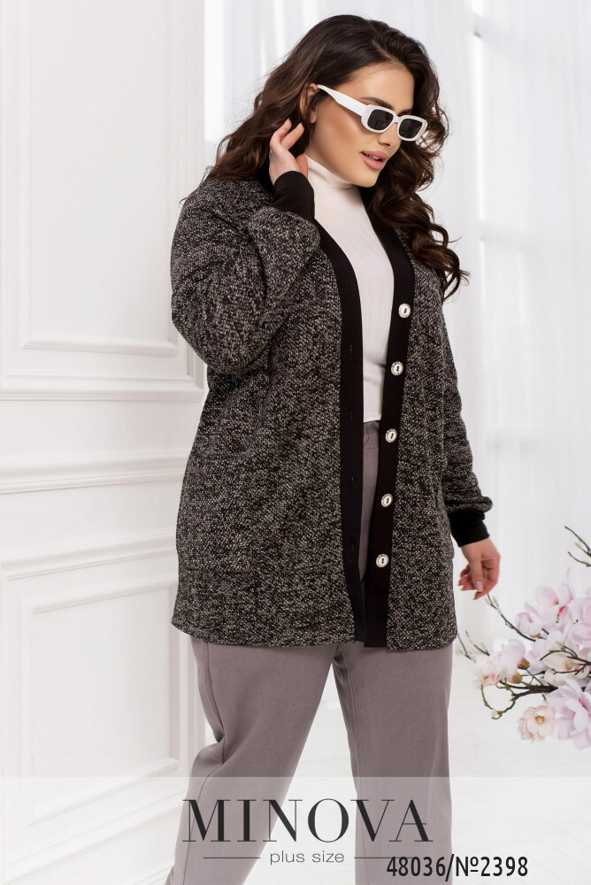 Современный кардиган из мягкой ткани для стильной женщины, который станет основным элементом базовой верхней одежды для осени. изделие имеет окантовку по внутренней части от горловины и к передней части изделия, которое образует планку с функциональными гудзиками. рукава немного приспущенного покроя полной длины с манжетом. благодаря тому, что ткань достаточно плотная, вы сможете комбинировать изделие с более теплыми свитерами и при этом вам будет достаточно комфортно. в более теплый период комбинируем с легкими блузами или джемперами и гольфами. на изделии присутствуют накладные карманы.