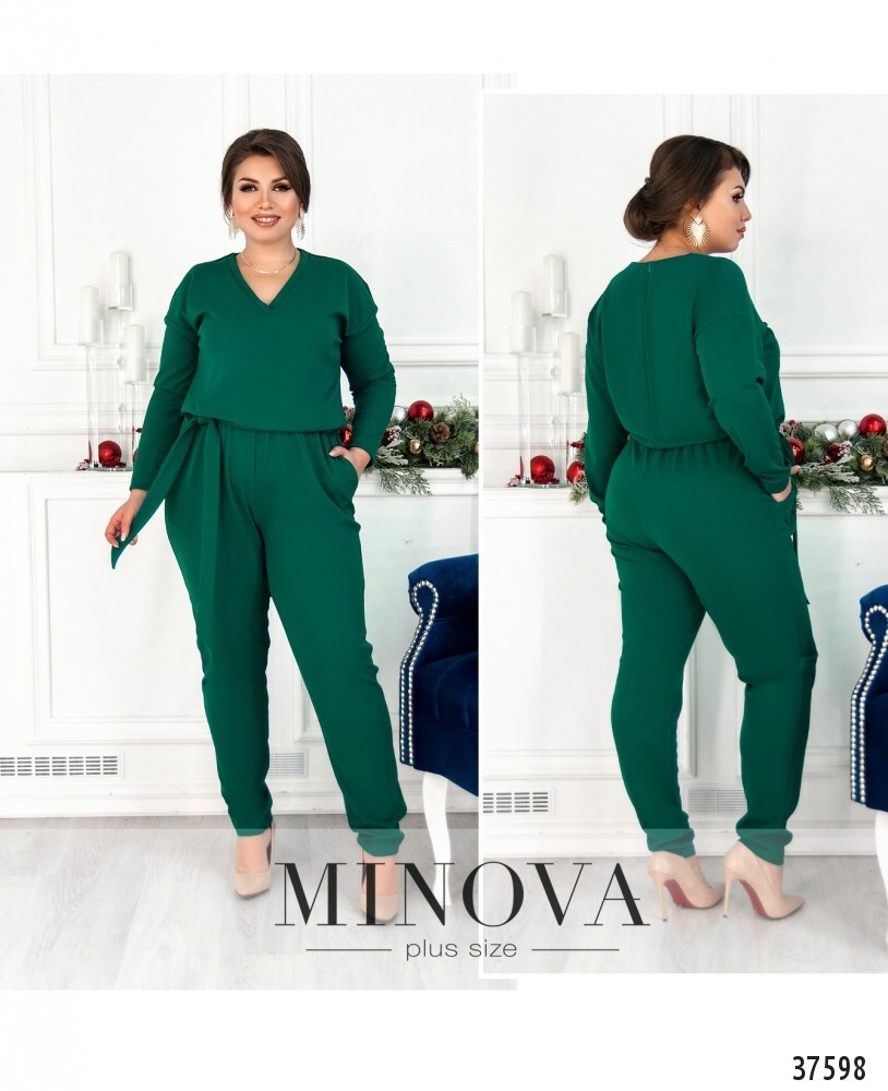 56 р-р: общая длина комбинезона 163см, длина рукава от горловины 72см, обхват рукава 48см, ог - 122см, длина брюк по внешнему шву с учетом пояса 79см, длина брюк комбинезона по внутреннему шву 106см, от - 108см, об - 128см.
