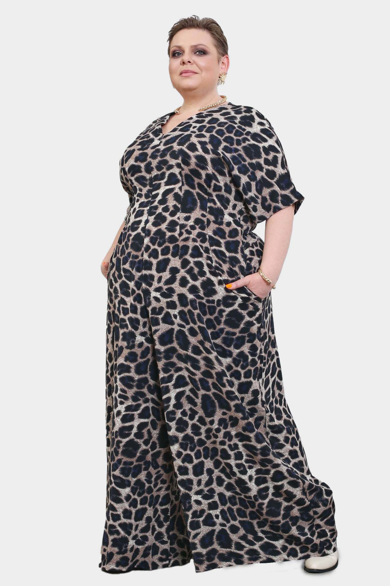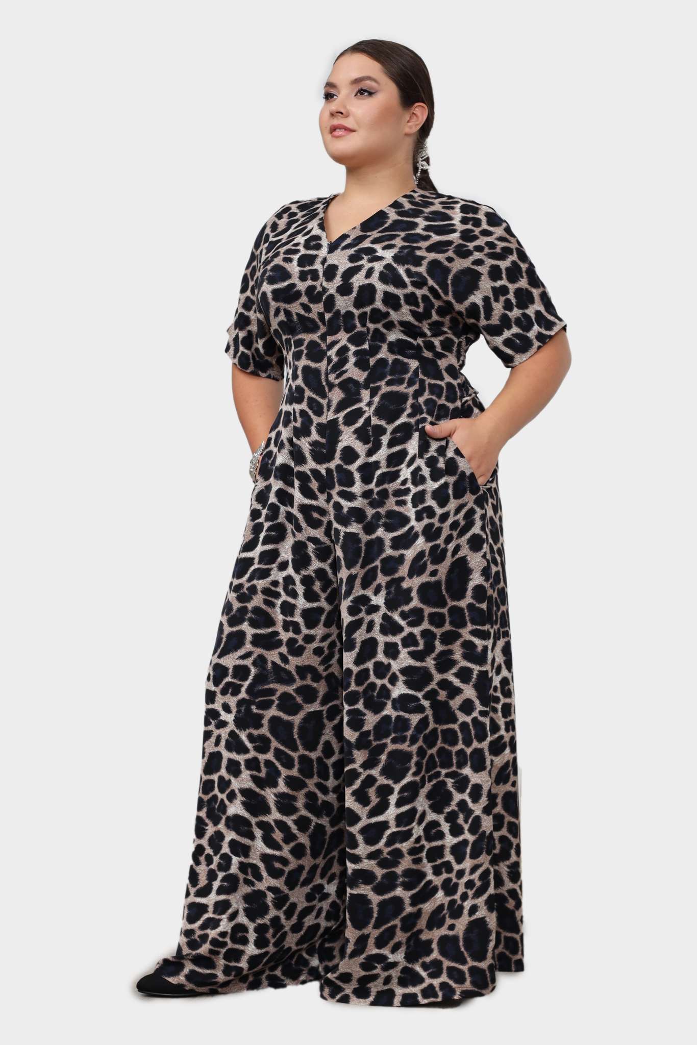 Комбинезон с молнией спереди средний рост "леопард"