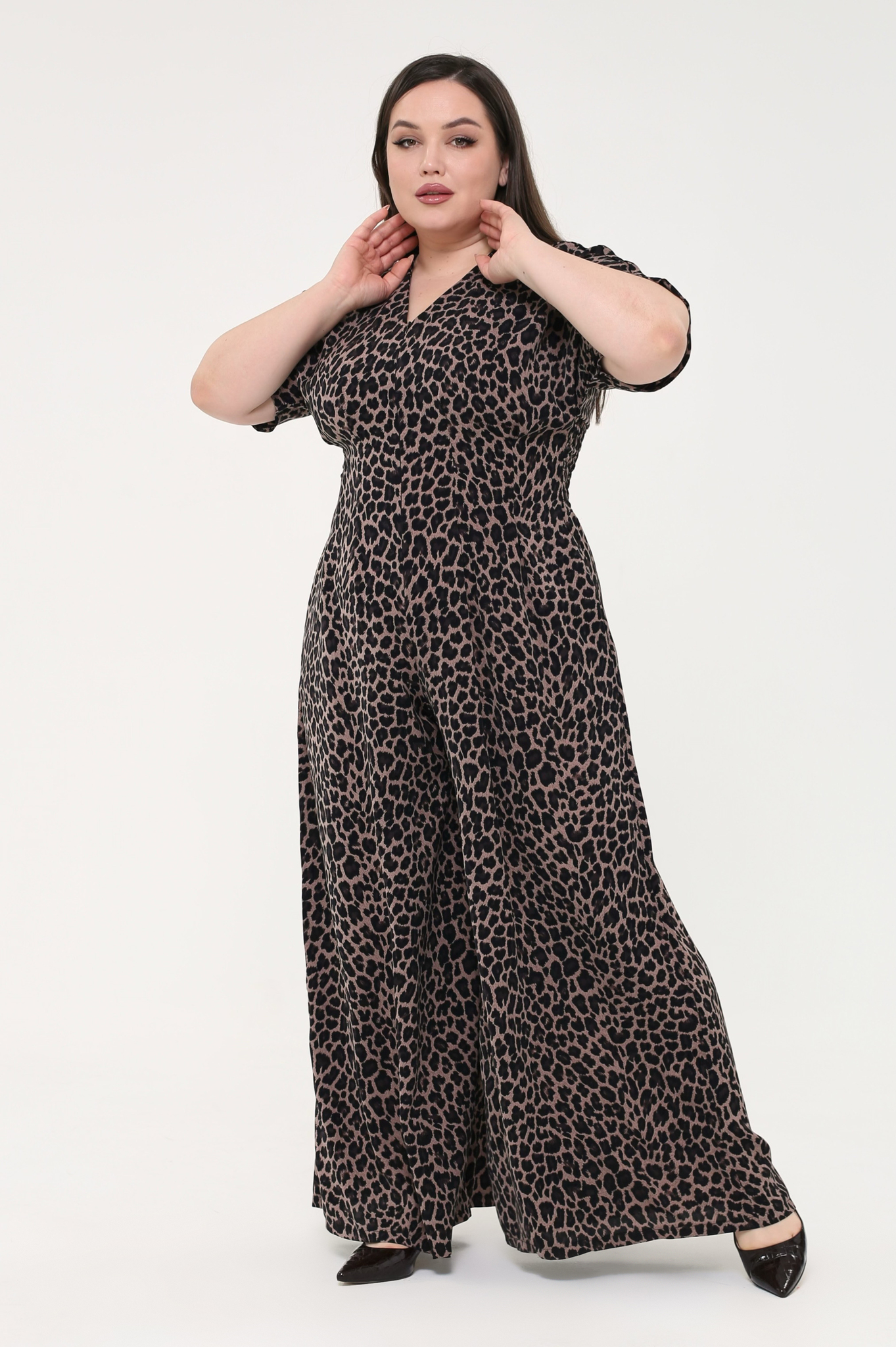 Комбинезон с молнией спереди высокий рост "мелкий леопард"