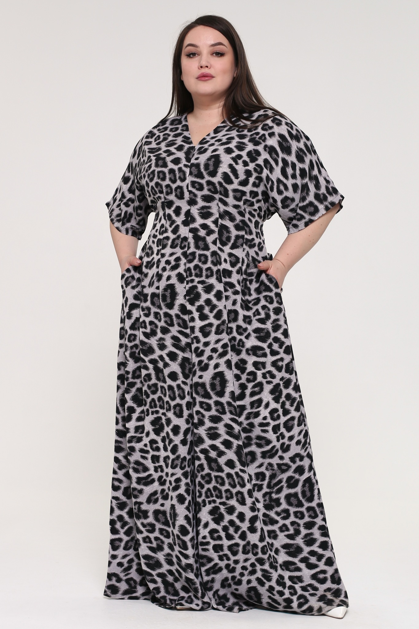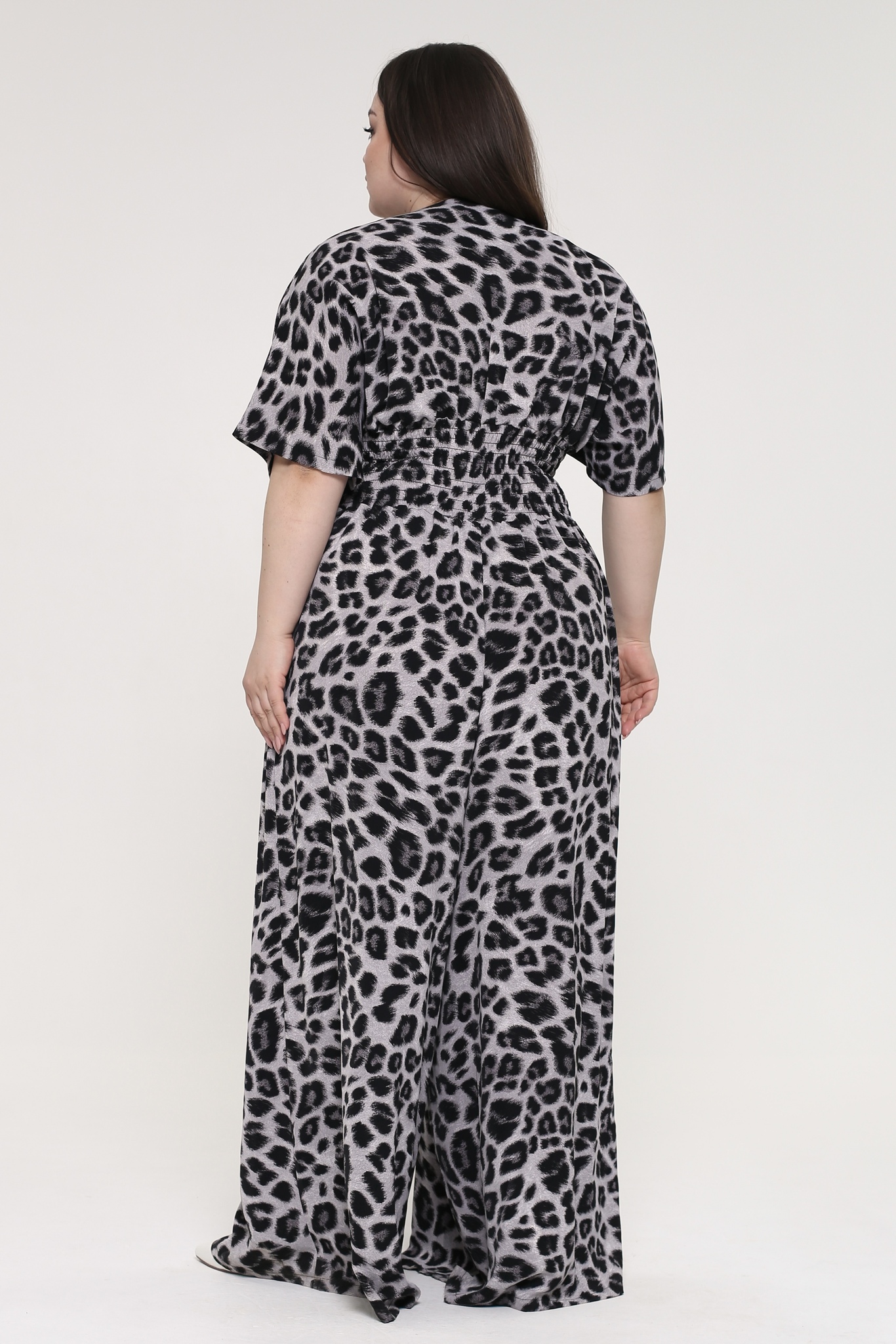 Комбинезон с молнией спереди высокий рост "леопард" серый