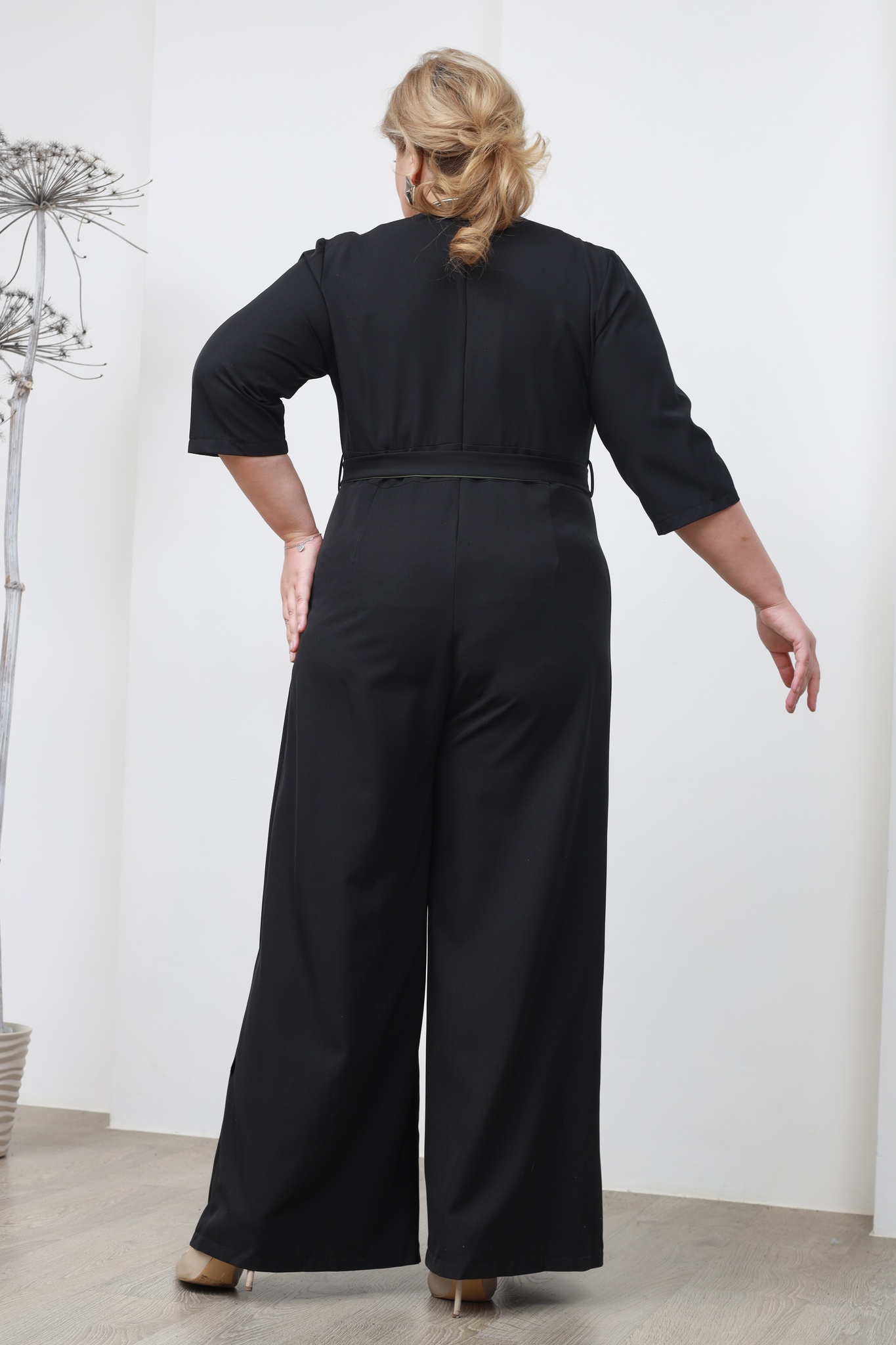 Стильный и очень эффектный комбинезон с запахом - подчеркнет вашу женственность и изящность. модель без подплечников, имеет короткие рукава. прилегающий верх подчеркивает декольте благодаря v-образному вырезу. рельефные вытачки на груди обеспечивают оптимальную посадку по фигуре. линия талии подчеркнута с помощью пояса, который можно завязать в виде банта. имеются шлевки. модель застёгивается по спинке на скрытую тесьму - молнию. прямые брючины свободного кроя с отлётными деталями по переду. контрастные передние половинки, освежают образ, а талиевые вытачки по спинке - для оптимальной посадки по фигуре. гламурный, легкий, выгодно подчеркивающий фигуру, комбинезон сделает вас заметной и выделит из толпы.