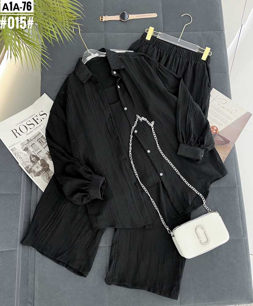 женский костюм тройка рубашка+майка+штаны размер единый 42/48