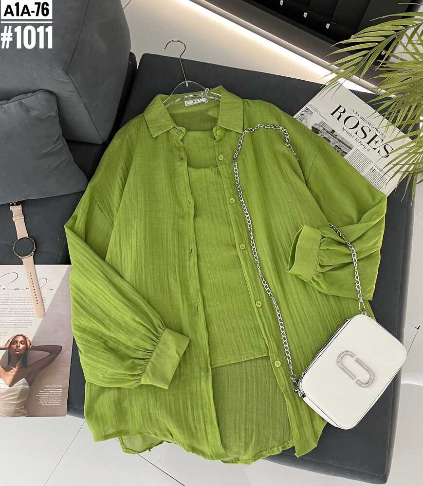женская оверсайз двойка рубашка+майка размер: единый 42/50