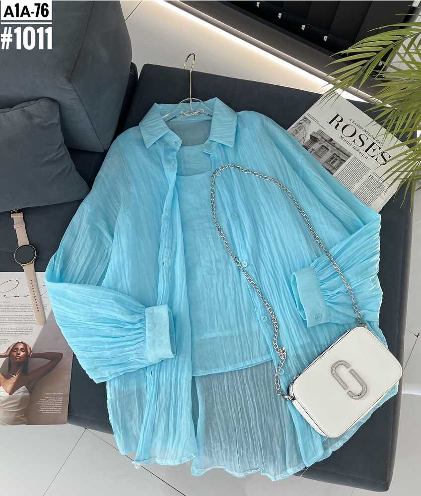 женская оверсайз двойка рубашка+майка размер: единый 42/50
