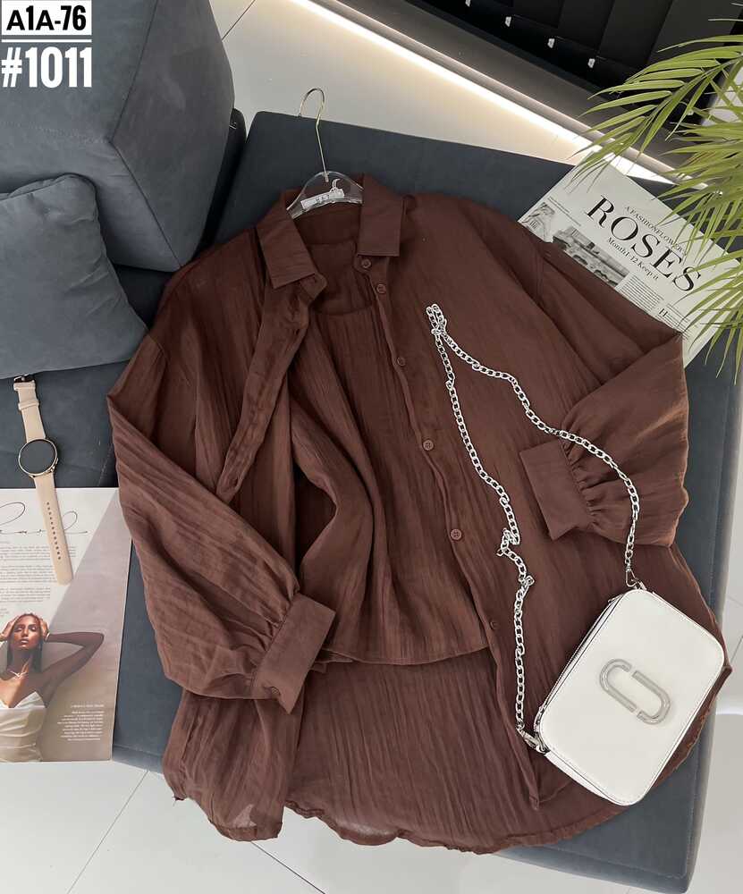 женская оверсайз двойка рубашка+майка размер: единый 42/50