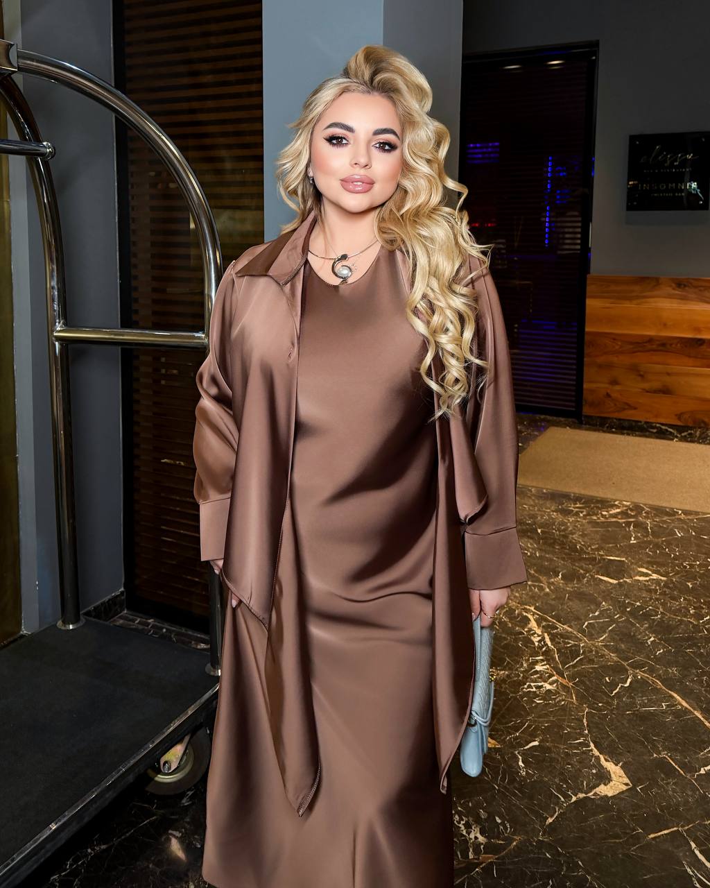 Элегантный ансамбль: платье-комбинация и рубашка из шелка «дабл армани»