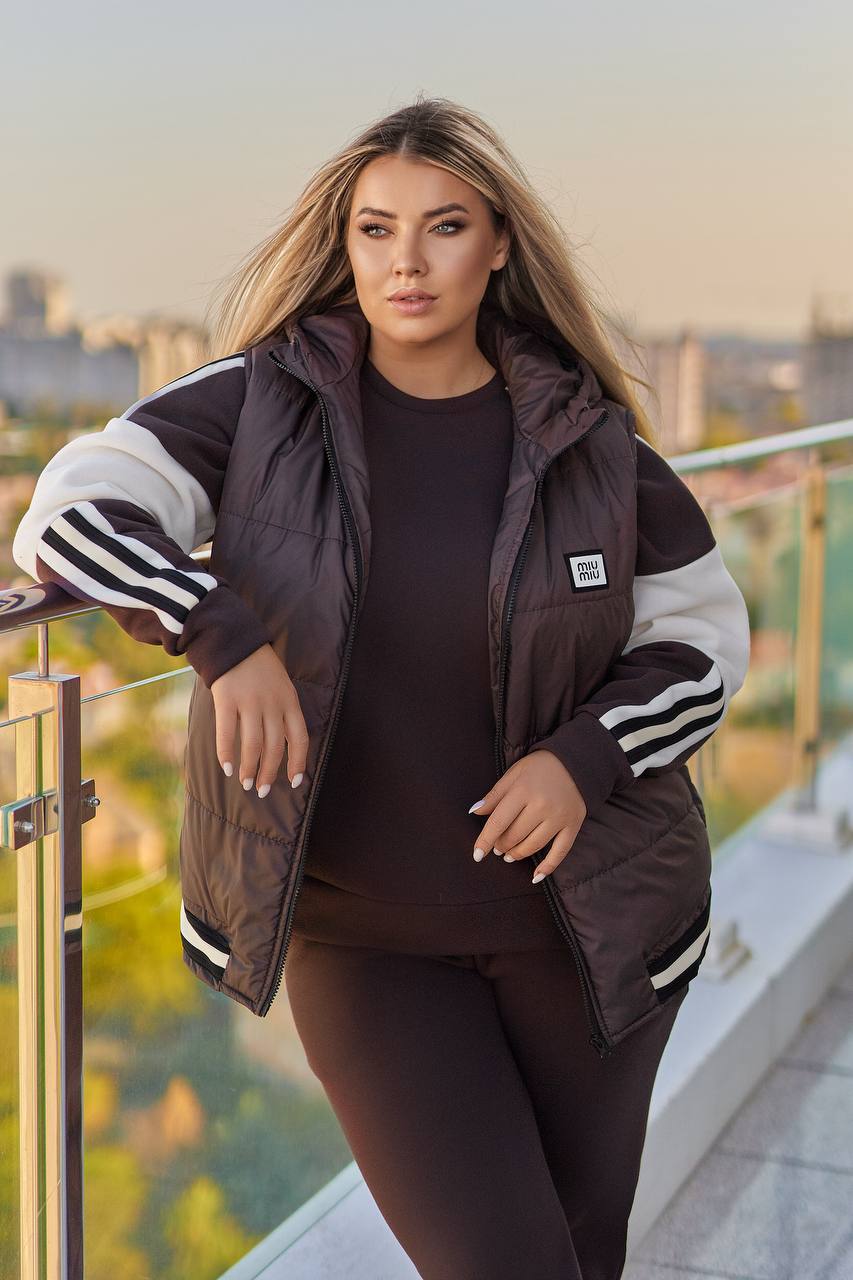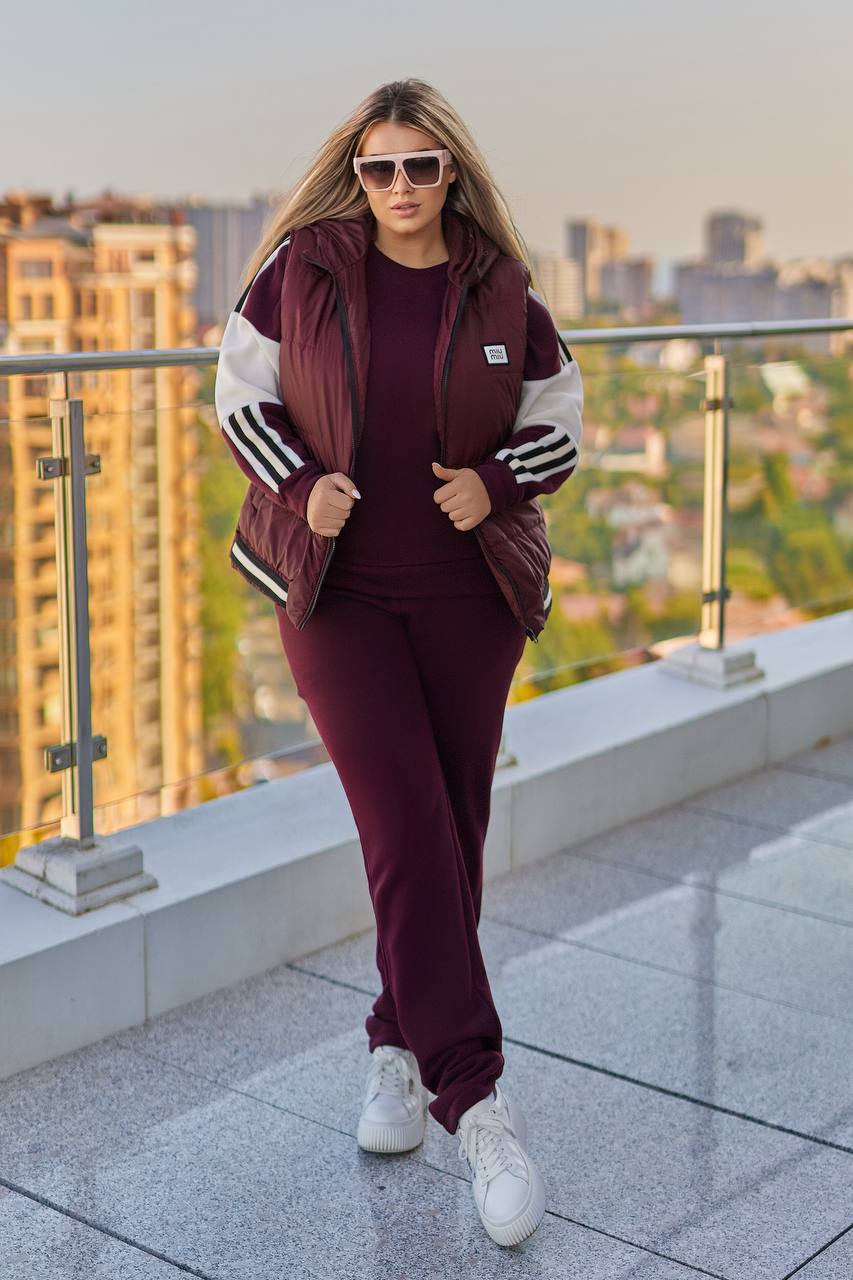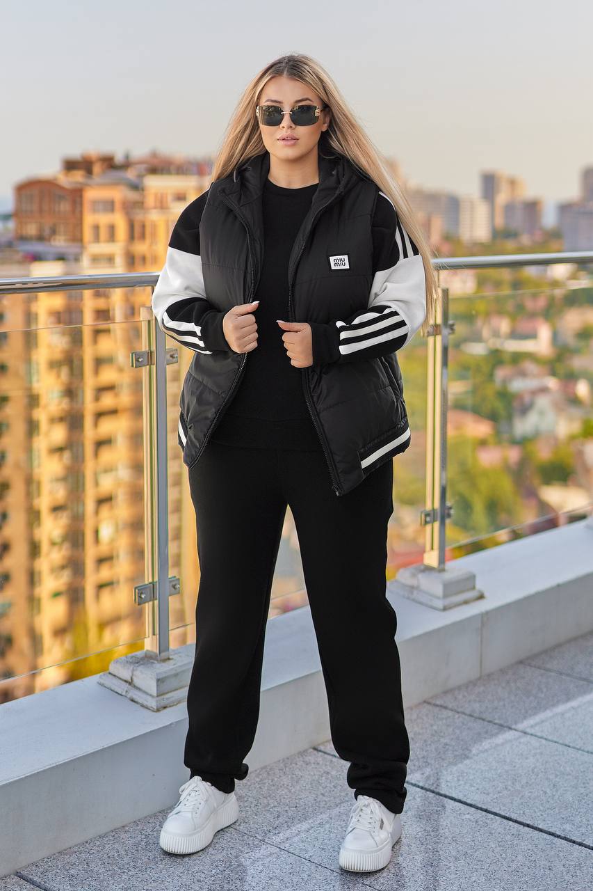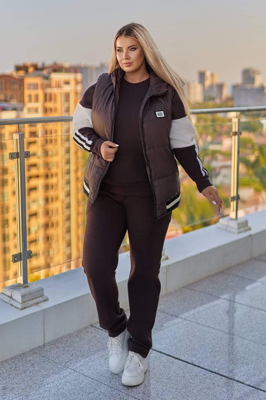 Элегантный, стильный, теплый костюм-тройка - жилет, свитшот и брюки