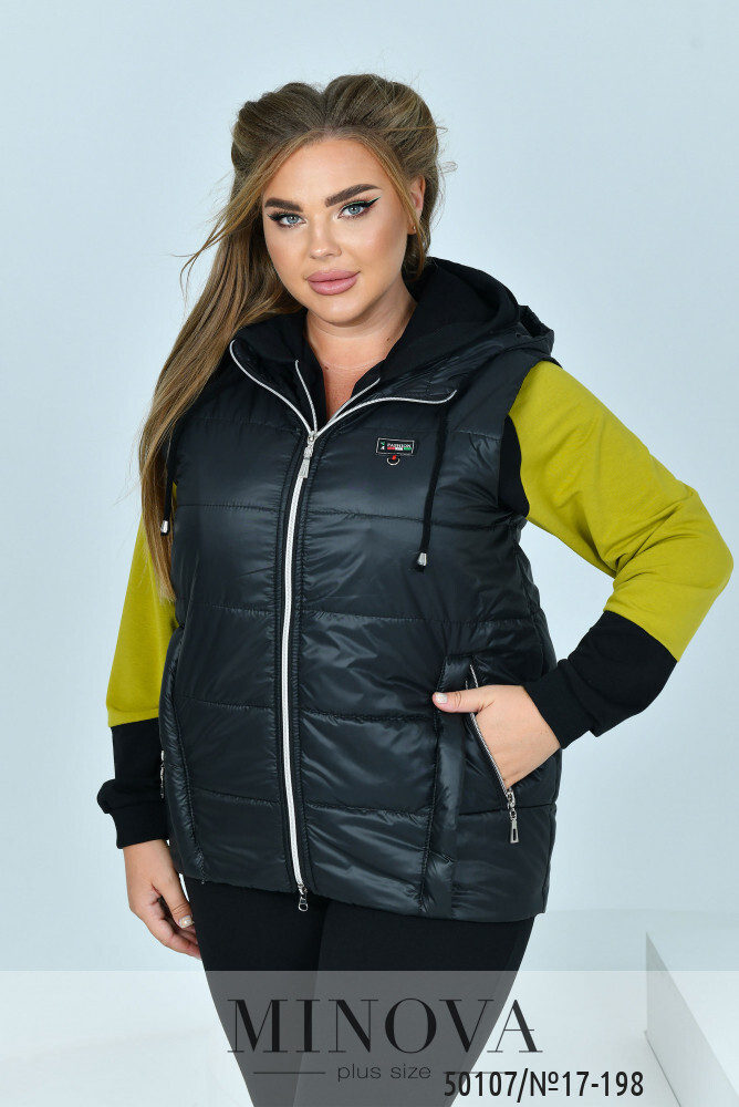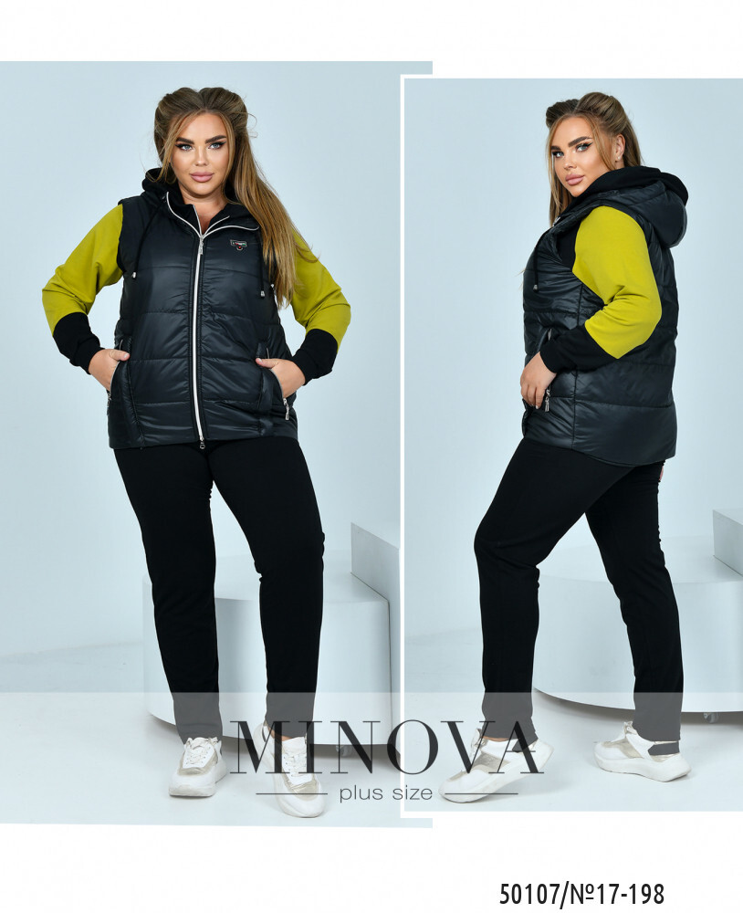 Завершает наш комплект безрукавка. она просрочена, придавая образу изысканности и оригинальности. капюшон со шнурком и карманы с молниями – это не только практичность, но и модный акцент, что дополнит ваш вид.