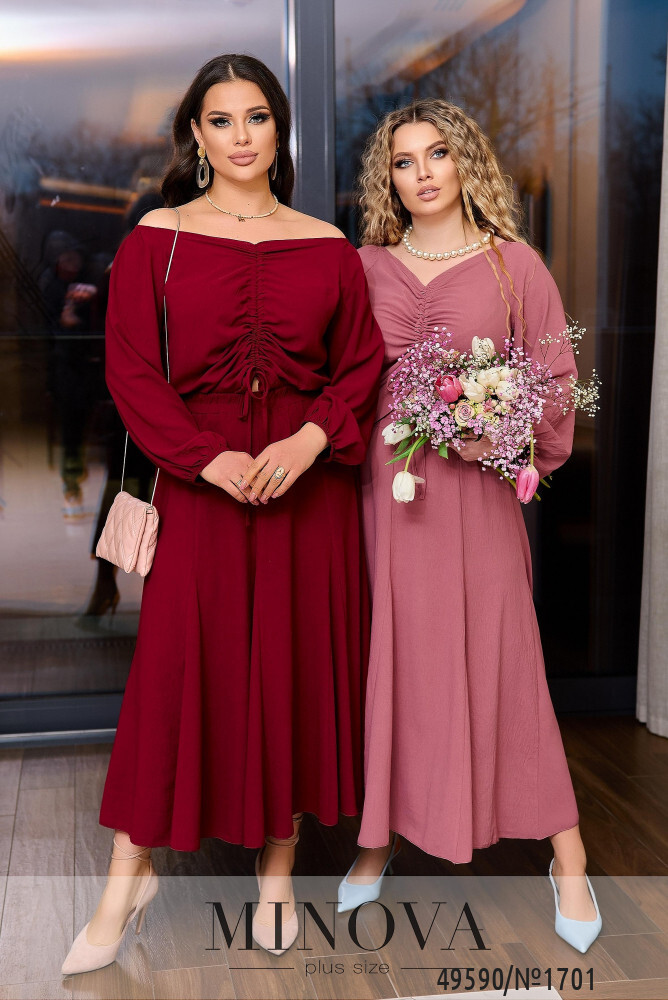 Наш костюм – это нарядный комплект, включающий блузку и юбку. блузка имеет спереди затяжку, позволяющую регулировать ее длину и создавать интересные образы и силуэты. она фиксируется на желаемой высоте с помощью шнурка. этот элемент придает оригинальной блузке и придает индивидуальности вашему образу. блузка на плечах оснащена резинкой, позволяющей вам поднять ее или же опустить при открывшей линию ключиц для создания ощущения легкости. вы можете экспериментировать с различными вариациями ношения блузки, создавая разнообразные образы. Юбка имеет резинку, что обеспечивает удобную посадку и комфорт во время движения. она имеет легкий крой, который придает юбке объем и гармонично подчеркивает вашу фигуру. этот элемент добавляет динамичности к вашему образу. Вы будете выглядеть увлекательно в костюме с оригинальными деталями, которые привлекут внимание окружающих и не оставят вас незамеченным. На модели представлен размер 50-52 Ориентировочные замеры по готовому изделию: Блуза: 50-52 р-р: длина изделия: 55см, обхват рукава 46см, длина рукава от горловины 57см, ог - 104см, от - 96см, об - 110см. 54-56 р-р: длина изделия: 56см, обхват рукава 48см, длина рукава от горловины 57,5см, ог - 110см, от - 104см, об - 118см. 58-60 р-р: длина изделия: 57см, обхват рукава 50см, длина рукава от горловины 58см, ог - 118см, от - 112см, об - 124см. 62-64 р-р: длина изделия: 58см, обхват рукава 52см, длина рукава от горловины 60см, ог - 126см, от - 120см, об - 132см. Юбка: 50-52 р-р: от - 70-94см, об -134см, длина юбки: 88см. 54-56 р-р: от - 78-108см, об -140см, длина юбки: 88см. 58-60 р-р: от - 86-120см, об -150см, длина юбки: 88см. 62-64 р-р: от - 96-128см, об -160см, длина юбки: 88см. Рекомендации по уходу: деликатная стирка *замеры могут отличаться от указанных на +-2см в зависимости от особенностей ткани, техническим Особенностям пошива, степенью усадки ткани **в зависимости от цветопередачи вашего монитора, оттенок изделия может немного отличаться ***в зависимости от партии фурнитура в изделии может меняться