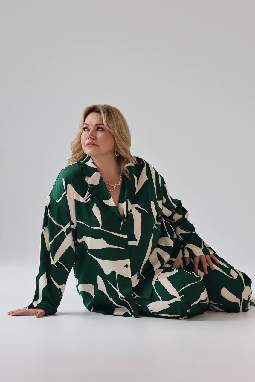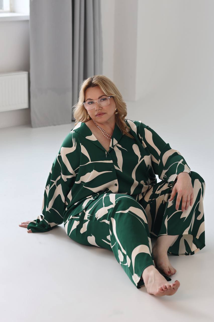 Костюм брючный пижамный "разводы" зеленый